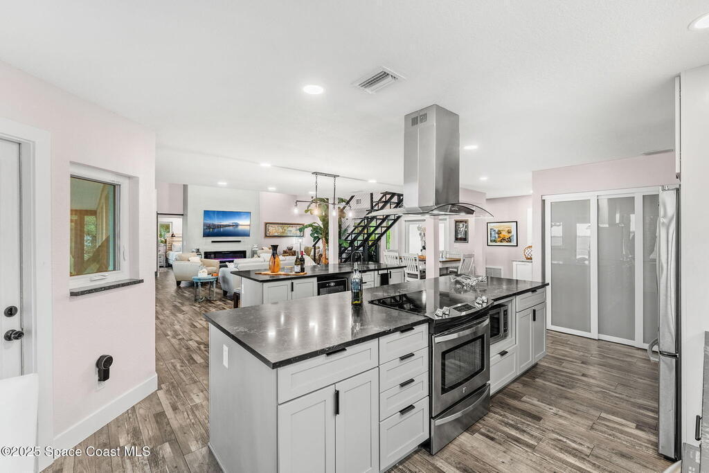 - Equipment/AppliancesConvection Oven, Dishwasher, Disposal, Dryer, Electric Cooktop, Electric Oven, Electric Range, Electric Water Heater, Ice Maker, Microwave, Refrigerator, Washer and Wine Cooler
