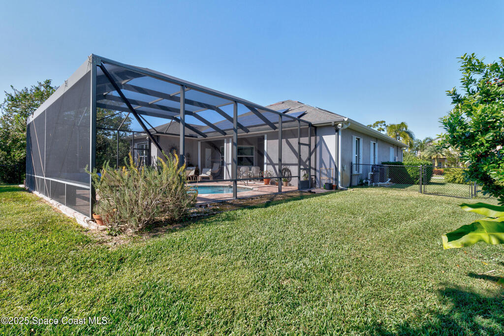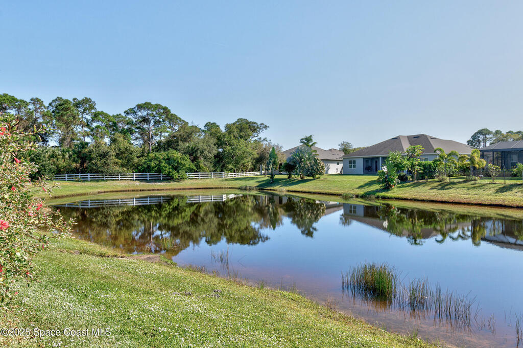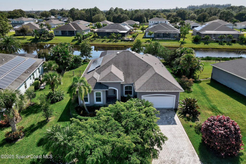Beautifully upgraded LifeStyle Home in gated Huntington Place! This 4-bed, 2.5-bath SunSmart home offers open layout with tray-ceiling great room, granite kitchen w/ island, and a spacious primary suite w/ dual walk-in closets and spa-like bath. Energy-efficient LifeStyle Home w/ solar panels that help keep monthly electric bills low. Enjoy peaceful pond views from your private, fully fenced yard w/ screened heated saltwater pool. Accordion shutters, low HOA, and clubhouse w/ pool and fitness room. Conveniently located near beaches, dining, and shopping -- enjoy the best of Vero Beach living!