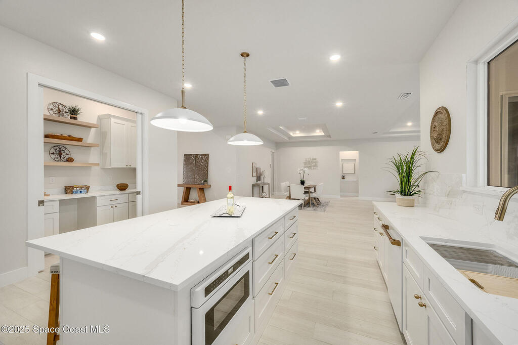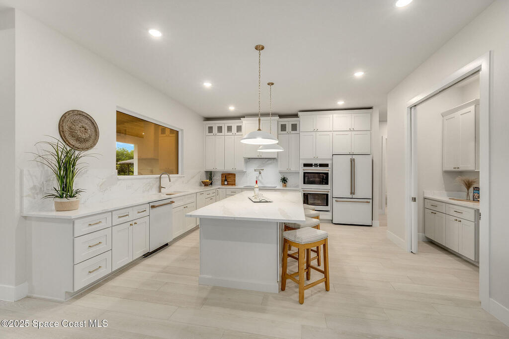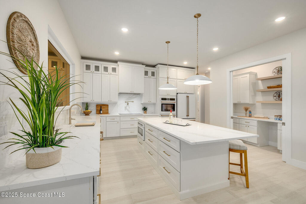 Welcome to this custom-built waterfront beauty in the sought-after South Indian River Isles community. Designed with quality and comfort in mind, this home features impact-resistant windows, a wide-open floor plan, and pristine finishes throughout. The kitchen is a true standout with white shaker cabinetry, champagne hardware, a spacious island, Cooktop with pot filler and built-in oven as well as a convenient butler's pantry offering additional storage and prep space. Large sliders open to the trussed patio, creating seamless indoor-outdoor living. Situated on a canal with direct access to the Indian River, a brand-new seawall gives you a secure foundation to create your ideal waterfront lifestyle--whether that includes a future dock & lift, pool, or custom outdoor oasis. Additional upgrades include spray foam insulation, a metal shingle roof, and conditioned attic storage.This exceptional home blends modern design with coastal living, offering a rare opportunity for new Construction