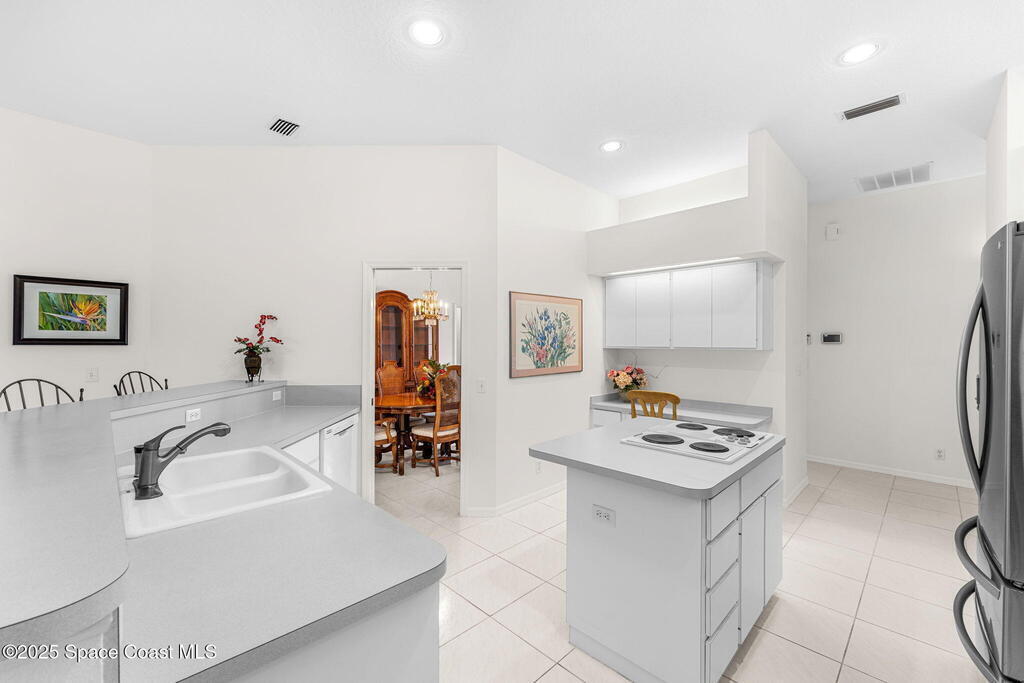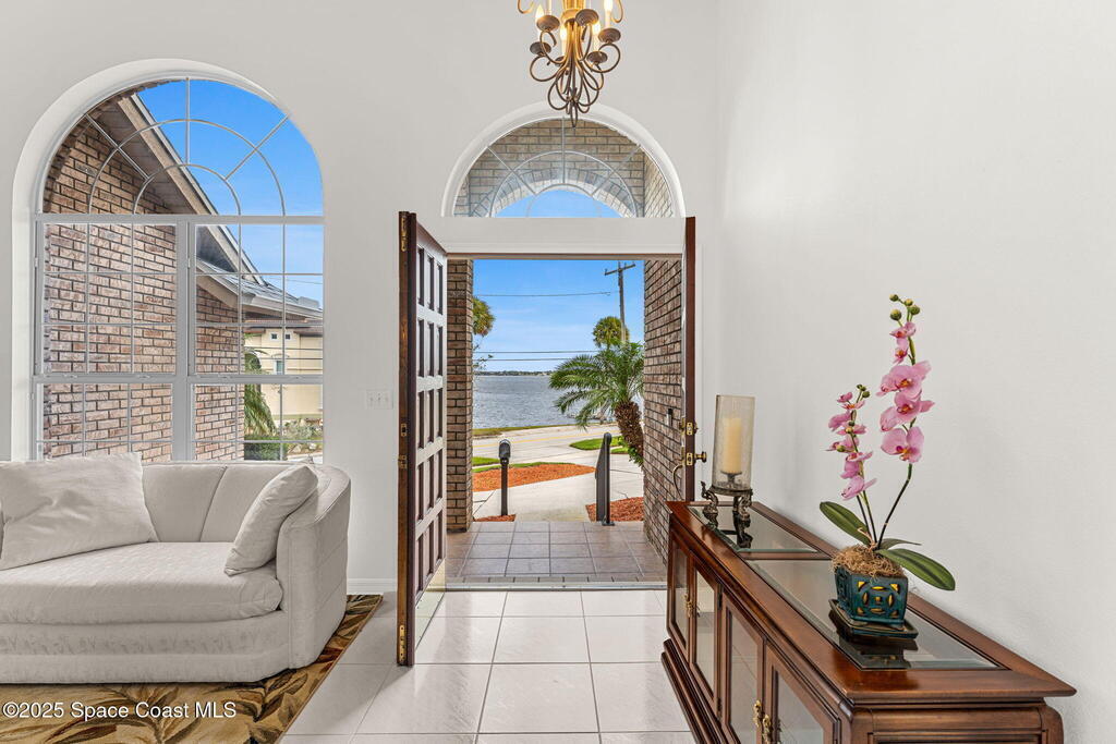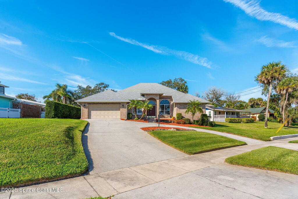 This custom built single-story block home takes advantage of its elevated position on N Indian River Dr, where you can enjoy peaceful views of the Indian River. The air conditioned sun room is one of the best places to enjoy these views, offering a clear northeast look toward the river, the bridge & frequent rocket launches. Owned by the original family since 1996, the home offers 4 bedrooms, 3 baths, 10' ceilings, a split plan, a spacious kitchen w/ extensive counter space that opens to the family room, & a large walk through laundry room accessible from two sides. The circular drive leads to a 2 car garage that includes an EV charging station for convenient at home charging. Updates include a new roof (2023), newer kitchen appliances, fresh interior paint & new carpet. The backyard pergola and garden create a quiet retreat, and Carleton Terrace offers a voluntary association and a park w/ river access close to Cocoa Village, major highways & beaches.
