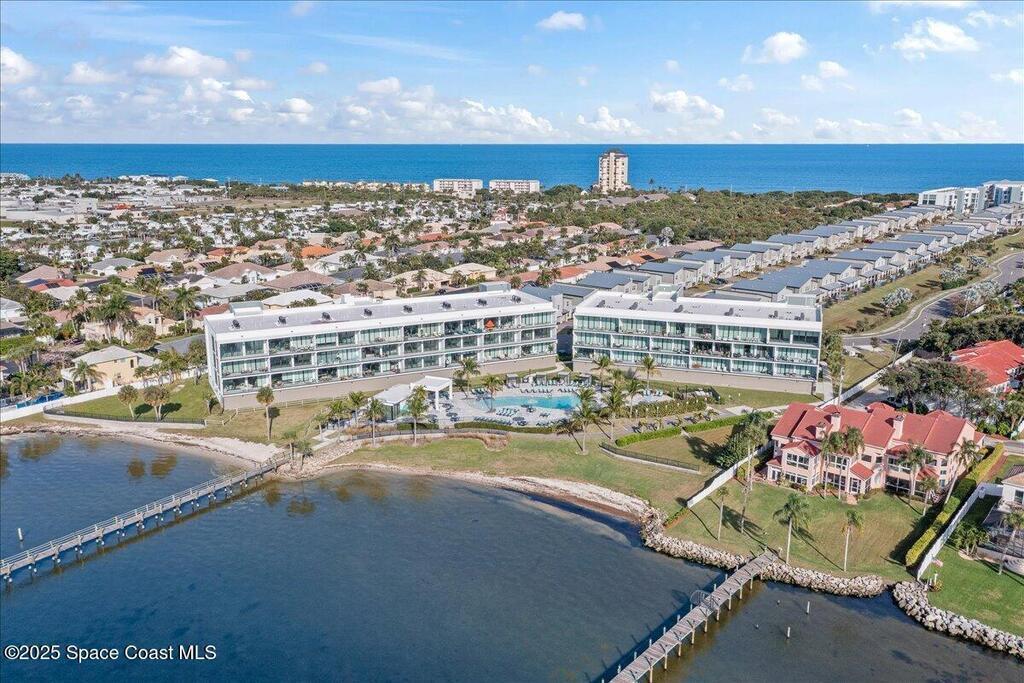 Immerse yourself in Melbourne Beach's premier private resort-style community, spanning from the Indian River Lagoon to the Atlantic Ocean. This meticulously crafted riverfront residence is built with a concrete superstructure, offering exceptional durability paired with tasteful coastal design. The third floor unit features elevated ceiling heights and a seamless open floor plan with three bedrooms, including a riverfront primary suite highlighted by floor-to-ceiling glass. Two luxurious en suites enhance the home's warm, welcoming, and expansive feel. Relax by the riverside pool cabanas or take a short stroll to the beach, where seasonal sea turtle hatchlings make their journey to the ocean. Residents enjoy an impressive array of amenities, including a marina, water sports rentals, and a beachside comfort station. Flexible rental options provide added versatility when not in residence. Experience refined coastal living at Harbor Island Beach Club.