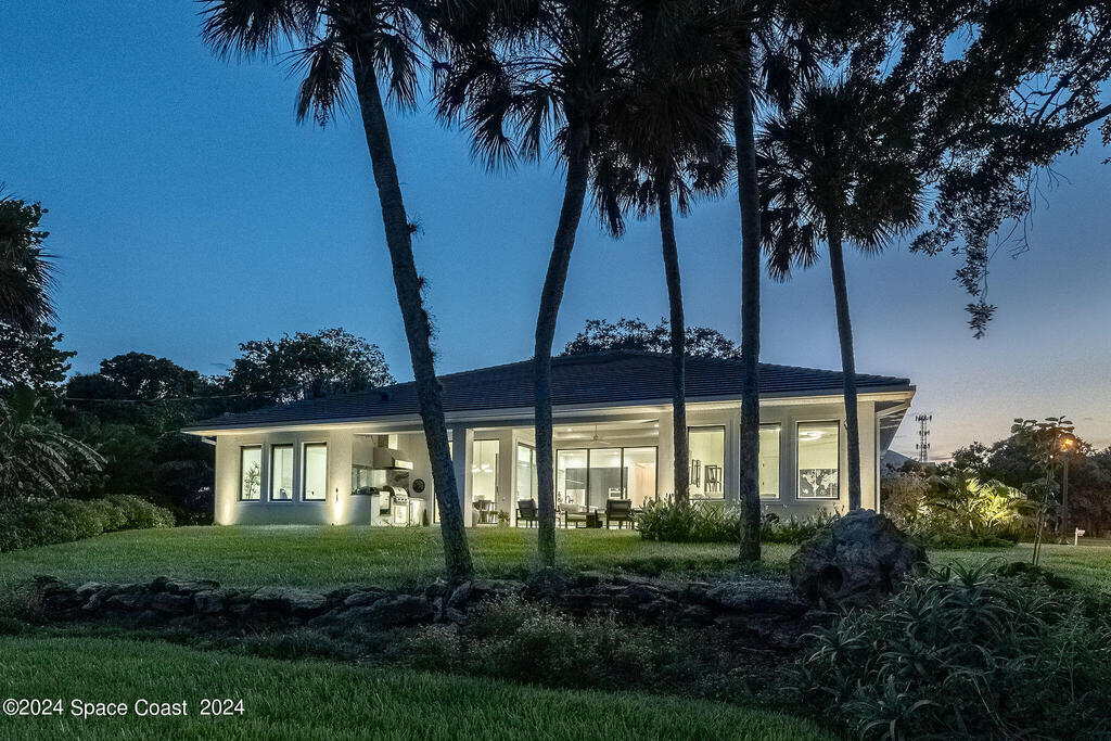 Christopher Burton Custom Riverfront home off Historic Rockledge Drive. Just a golf cart ride to Historic Cocoa Village for dining, art festivals, & concerts; minutes from 1-95 to Orlando & the Theme parks, Viera Avenue shopping, and beaches. Watch rocket launches from the covered patio or the HOA dock. Plenty of room to build your own private dock on the Intracoastal Waterway. Positioned outside of any designated flood risk area, this exquisite property offers both beauty & security. Enjoy direct river views, outdoor kitchen, and an oversized 3-car garage. Features include a whole-house generator, poured concrete block every third row, motorized shades, Wi-Fi throughout, security system, and built-in speakers. Homeowners insurance under 4K/year. Exceptional value, luxury, and location all in one! No detail was overlooked in the construction of this exquisite home.