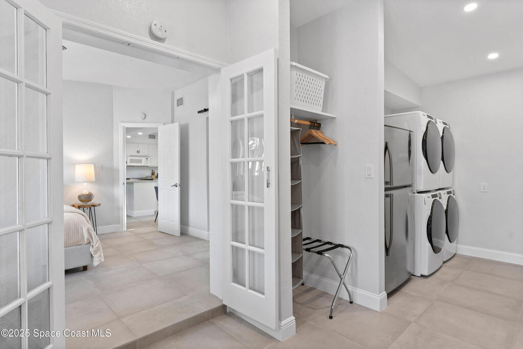 - Equipment/AppliancesDishwasher, Disposal, Dryer, Electric Range, Gas Water Heater, Microwave, Plumbed For Ice Maker, Refrigerator, Tankless Water Heater and Washer/Dryer Stacked