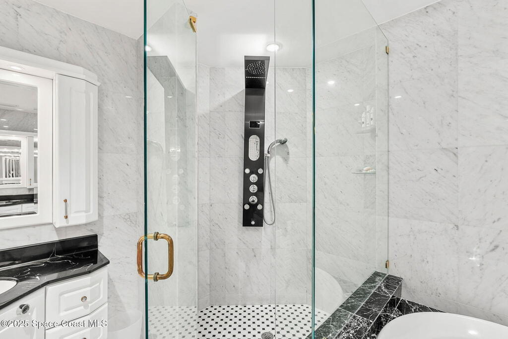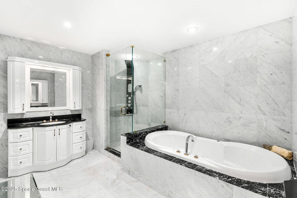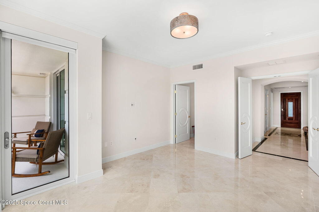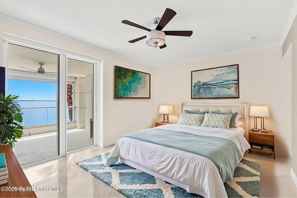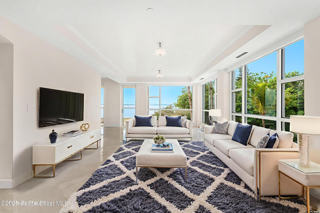 Welcome to your private slice of paradise in Cocoa Beach. This gated waterfront condo blends tranquility & sophistication, just steps from the ocean. A grand 20-ft fountain with 22 LED lights offers a stunning welcome, celebrating holidays in vibrant color. Inside, this 2,500 sq ft riverfront retreat offers 3 beds, 3.5 baths & floor-to-ceiling hurricane-rated glass that frames sweeping Banana River sunsets. Two private balconies, marble & travertine flooring, solid core doors, a reverse osmosis system, Lutron smart blinds, RainSoft water treatment, two jetted spa tubs, & luxury shower panels add comfort & style. The gourmet kitchen showcases granite counters & modern lighting. Community perks include a heated pool, fitness center, private storage, 2 garage spaces, direct river access for paddling or fishing, a whole building back up generator & the beach just across the street. A rare blend of luxury, privacy & location, don't miss your chance--schedule a private tour today!