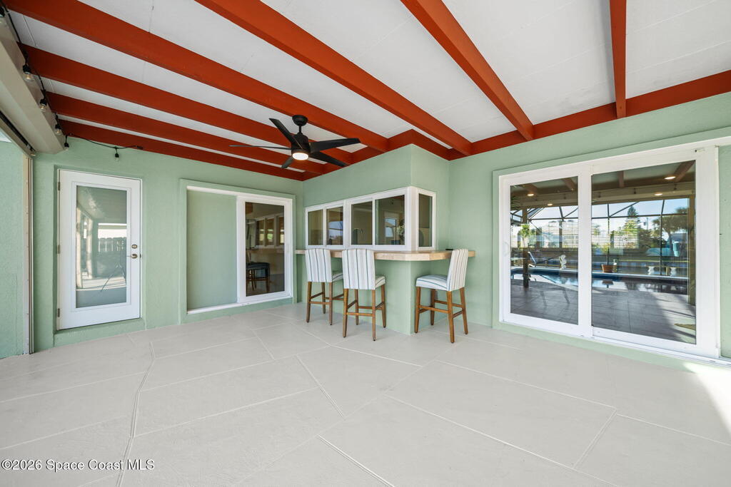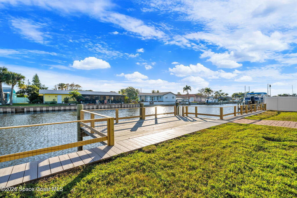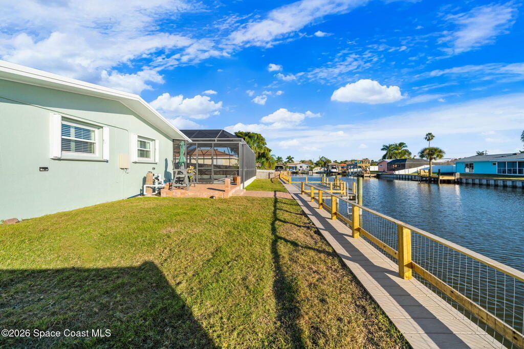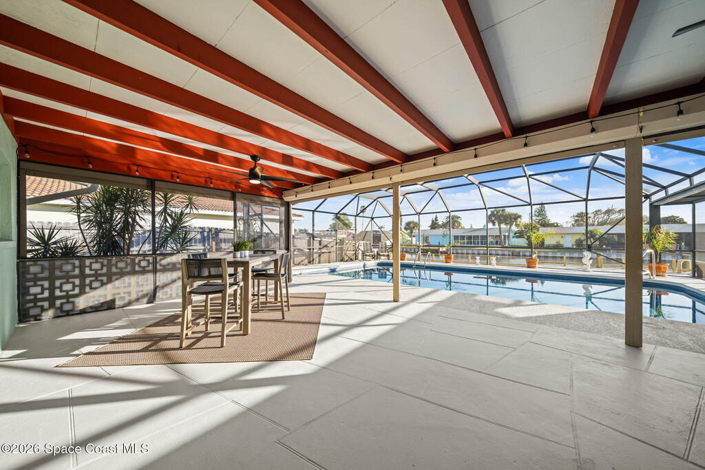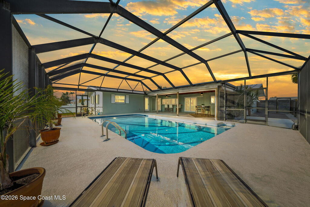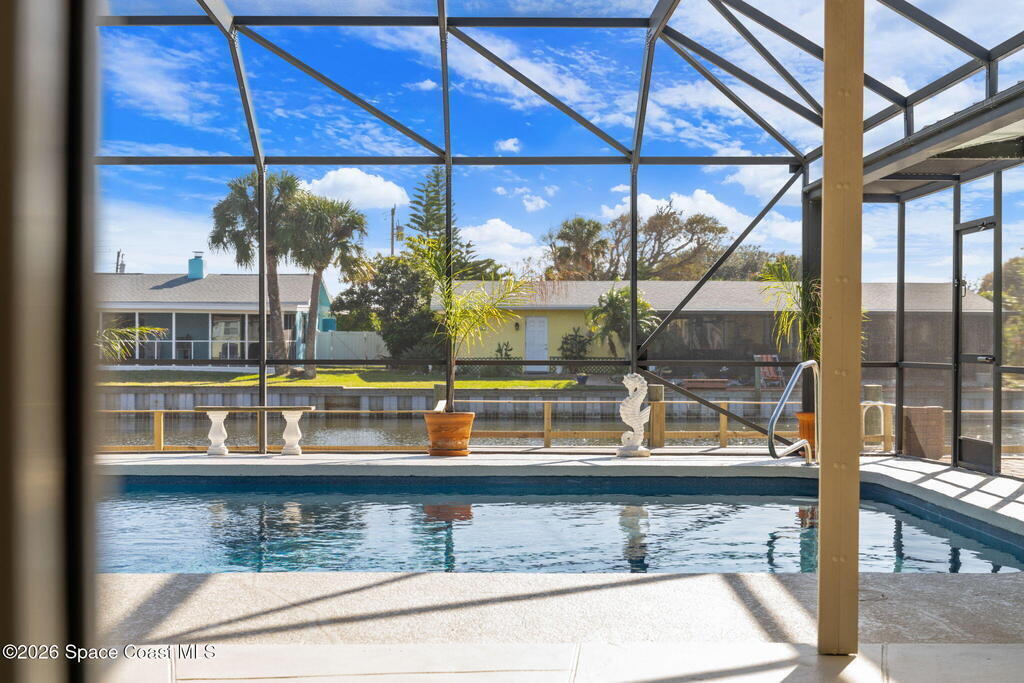 Exceptional canal front living in the heart of Cocoa Beach! This fully renovated waterfront home is bright, welcoming, and completely turnkey, boasting hundreds of thousands in recent improvements. Major upgrades include a 2022 Metal roof, 2022 HVAC system, 2022 tankless water heater, updated electrical, and replacement of all cast-iron plumbing under the home and to the street with PVC plumbing. Impact-rated windows, doors, and sliders throughout along with an impact-rated garage door.Designed for boaters and outdoor enthusiasts, the property features a brand new seawall, a newer dock with an new dock walkway, and a canal that is routinely dredged by the City. The outdoor space is designed for entertaining, featuring a re-surfaced pool and deck, a new screen enclosure, a covered back patio with a tongue-and-groove ceiling and bar seating that opens seamlessly to the kitchen through pass-through windows.Additional upgrades include hurricane shutters, Kevlar hurricane screen
