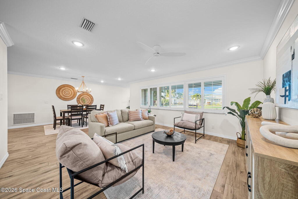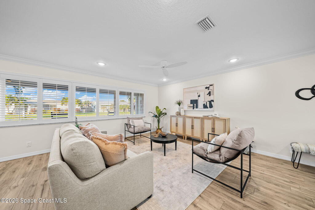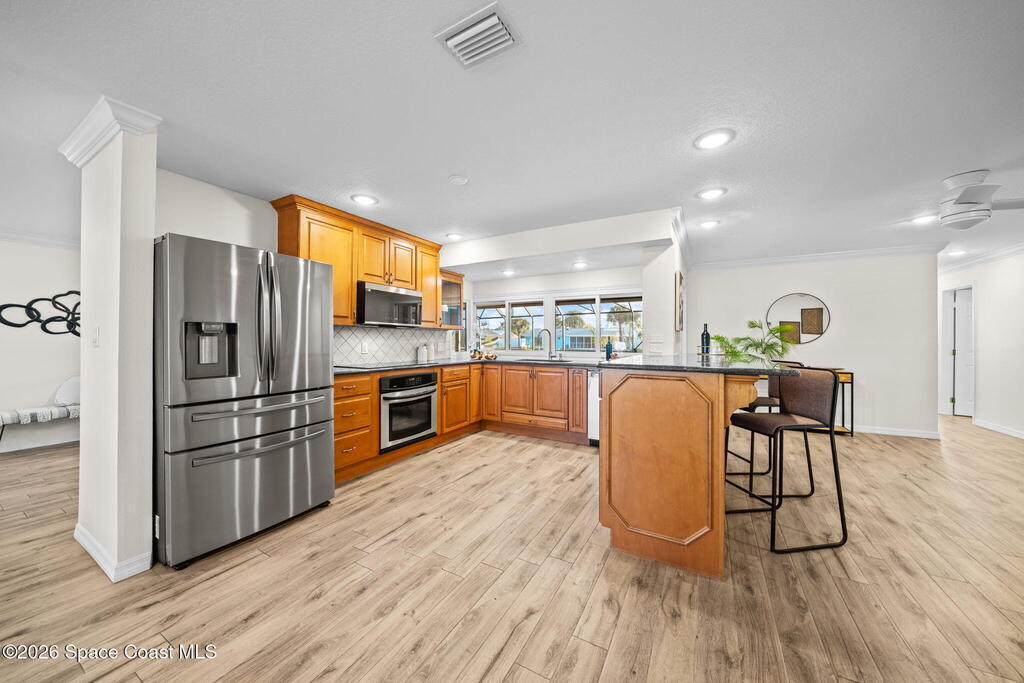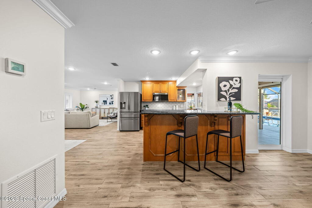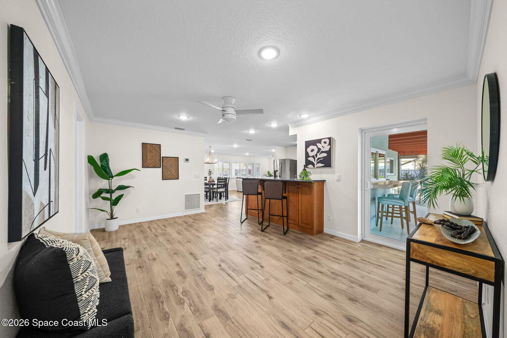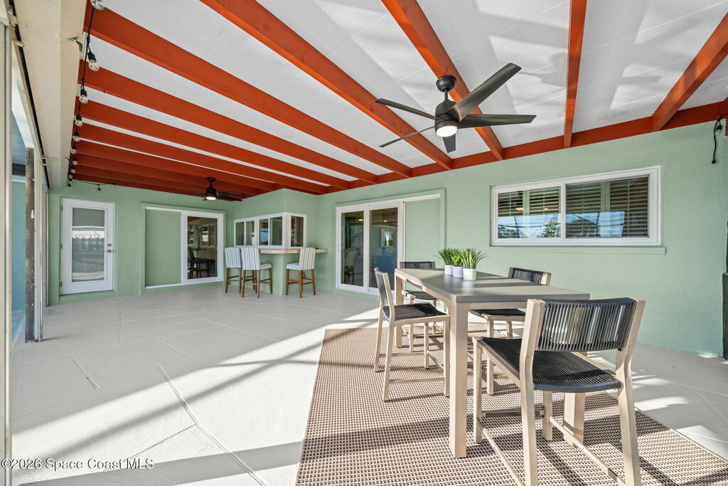 Exceptional canal front living in the heart of Cocoa Beach! This fully renovated waterfront home is bright, welcoming, and completely turnkey, boasting hundreds of thousands in recent improvements. Major upgrades include a 2022 Metal roof, 2022 HVAC system, 2022 tankless water heater, updated electrical, and replacement of all cast-iron plumbing under the home and to the street with PVC plumbing. Impact-rated windows, doors, and sliders throughout along with an impact-rated garage door.Designed for boaters and outdoor enthusiasts, the property features a brand new seawall, a newer dock with an new dock walkway, and a canal that is routinely dredged by the City. The outdoor space is designed for entertaining, featuring a re-surfaced pool and deck, a new screen enclosure, a covered back patio with a tongue-and-groove ceiling and bar seating that opens seamlessly to the kitchen through pass-through windows.Additional upgrades include hurricane shutters, Kevlar hurricane screen