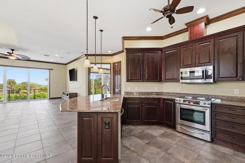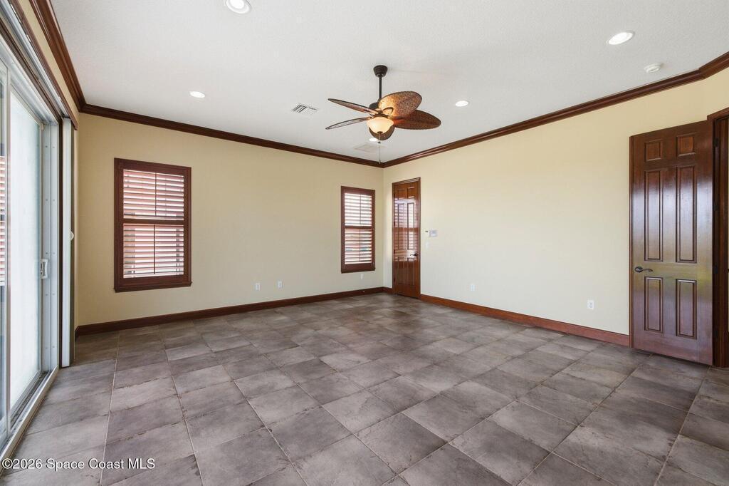 Prepare to unwind in the luxurious neighborhood of Maritime Hammock at Aquarina, the only Melbourne Beach community offering golf, tennis, a boat dock with launch, restaurant, and private beach club access. Your coastal retreat awaits. Situated on a barrier island just steps from the Atlantic Ocean and its sandy beaches, this exquisite home offers breathtaking ocean views from many rooms throughout the residence. Thoughtfully designed to capture the beauty of coastal living, the home provides a rare opportunity to enjoy both comfort and scenery. The gourmet-style kitchen is ideal for entertaining, while the spacious owner's suite features captivating ocean views, a walk-in closet, an elegant designer spa-like bath, and a private balcony overlooking the ocean. Car enthusiasts will appreciate the rare 4-car garage plus an additional 2-car garage, offering exceptional space for vehicles and storage. This stunning home with a private mother-in-law/owner suite sits on a generous 0.39-acre.