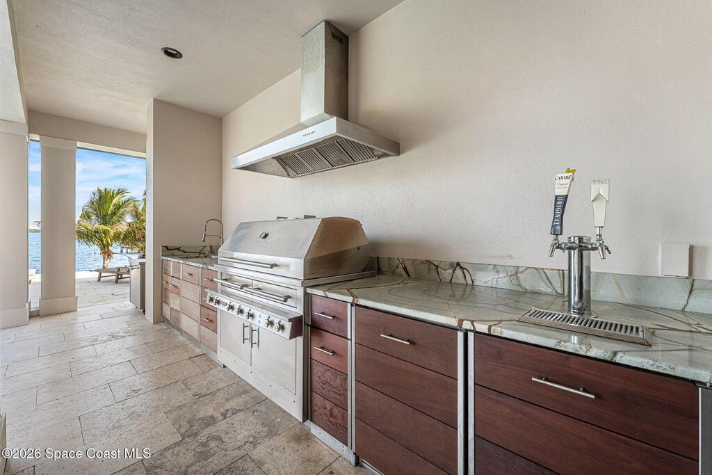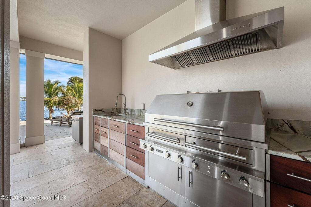 - Exterior FeaturesBalcony, Boat Lift, Dock, Outdoor Kitchen and Outdoor Shower