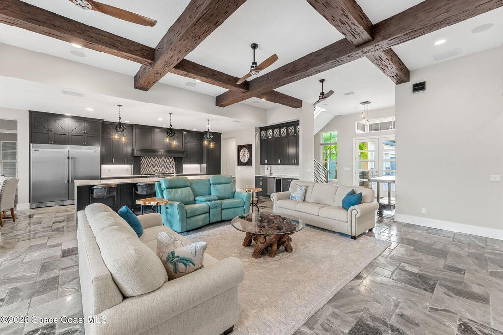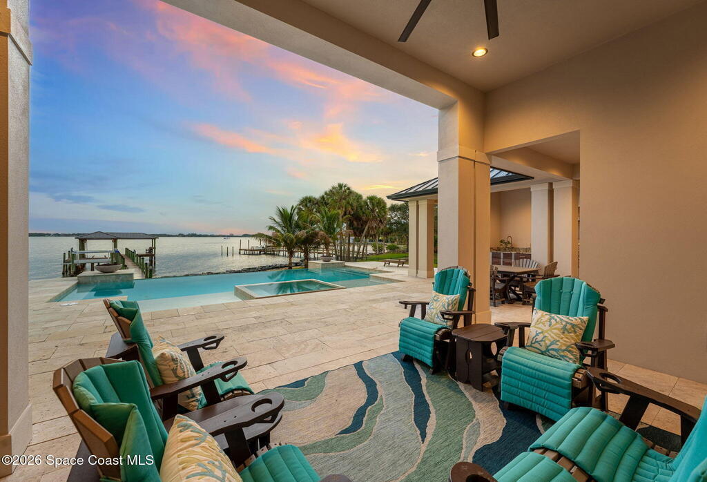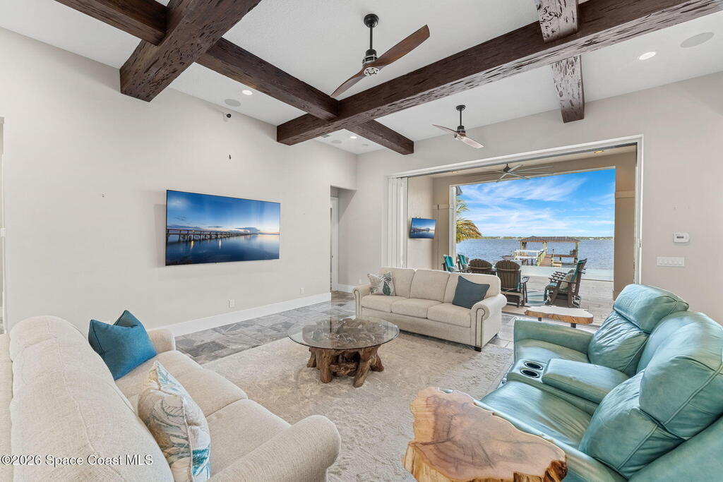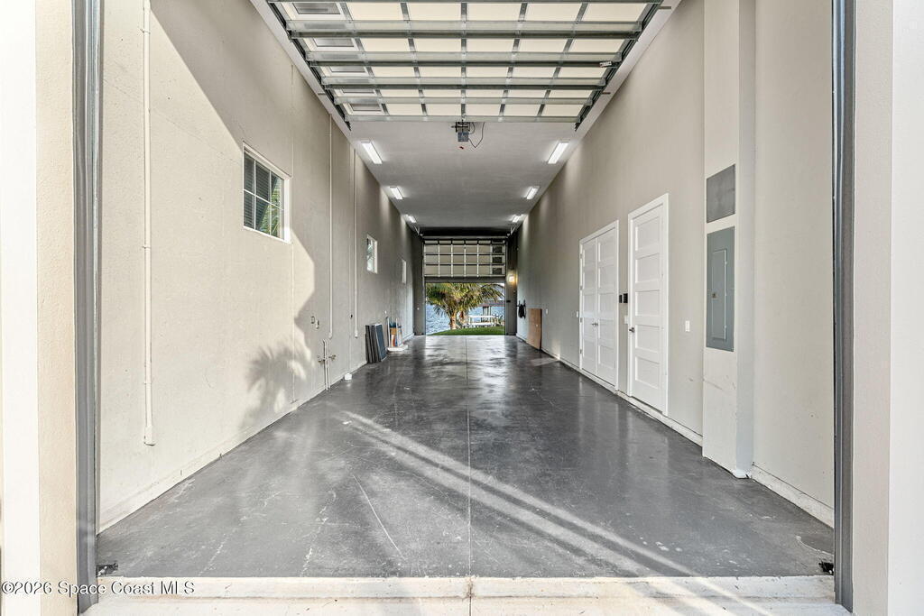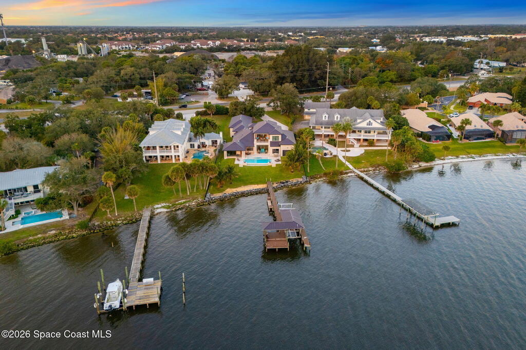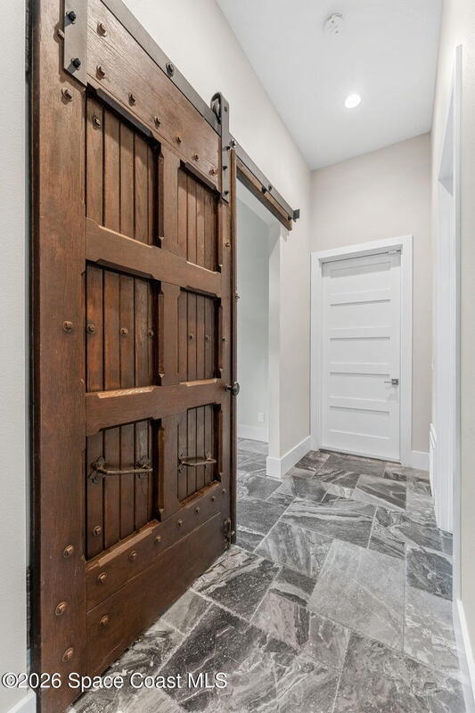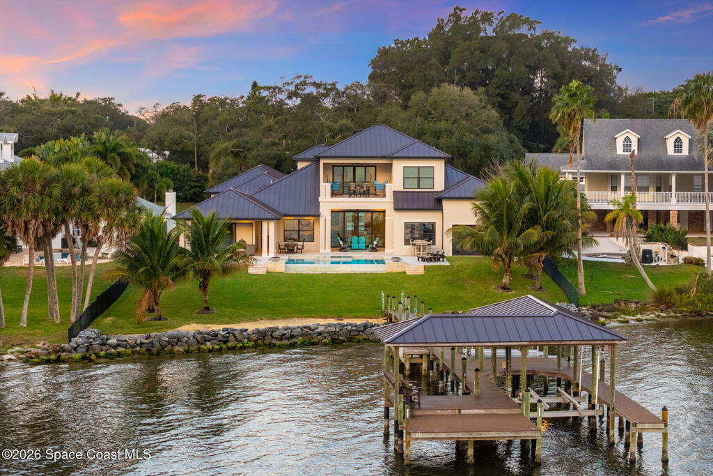 The ultimate private classic car showroom and motorcoach retreat. Stunning custom riverfront home w/ 8-car garage plus 10,000 lb tandem lift for your curated vehicle collection, additional high-clearance, 55 ft RV/boat garage w/ full hookups. A mariner's paradise w/ 110 ft open water frontage, a granite rock shoreline, and direct views of the intracoastal river. Custom dock w/ 2 lifts to accommodate up to a 30 ft boat with shore power. Enhanced solid poured concrete exterior, freshly painted and sealed, 5 bed 4.5 bath home w/ infinity edge saltwater pool and built-in spa, summer kitchen w/ custom Kalamazoo cabinetry and marine grade stainless steel grille. Impact sliding glass pocket doors w/ expansive river views, custom imported marble floors. Primary suite w/ custom walk-in steam shower and a freestanding soaker tub, and a massive walk-in closet leading to the laundry room. Chef's kitchen w/ 15 ft quartz island w/ waterfall edges, but the hidden butler's pantry steals the show.