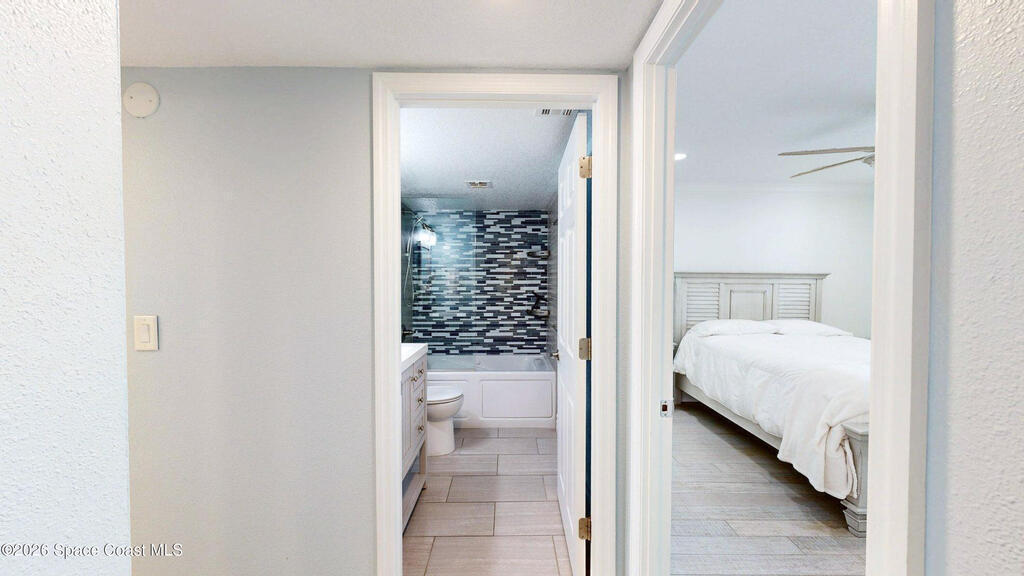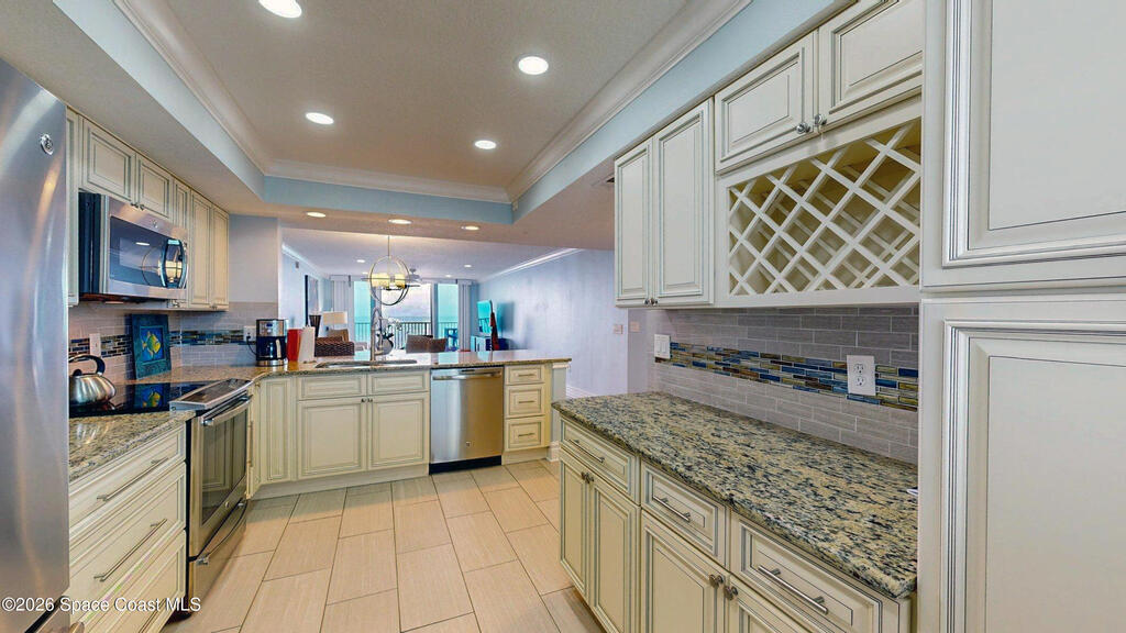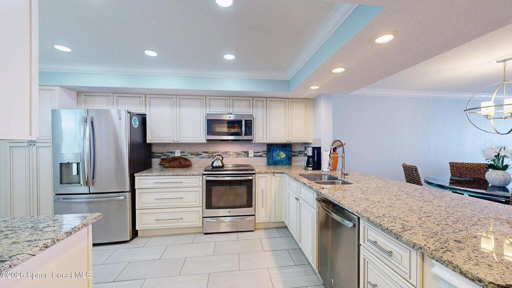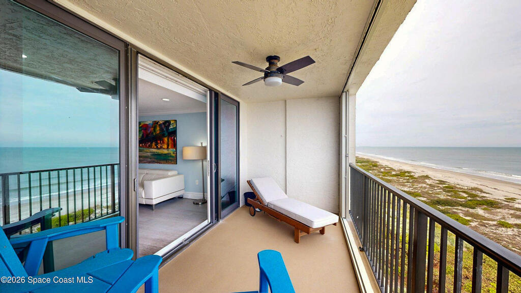 EXPERIENCE SPACE COAST LUXURY IN THIS DIRECT OCEANFRONT TOP-FLOOR PENTHOUSE wPerched on Florida's stunning Space Coast, this direct oceanfront, top-floor penthouse offers panoramic views of the Atlantic Ocean and a deBanana River. Fully renovated, the residence combines coastal elegance with modern sophistication for a truly elevated lifestyle.The interior features distressed bamboo flooring, sand-toned plank tile, and a fully upgraded kitchen and baths with premium finishes. Additional highlights include new impact windows and sliders, induction cooktop, stainless steel appliances, plantation shutters, tinted reflective glass, a spa-inspired jetted tub with instant hot water, and a tankless hot water heater--every detail thoughtfully designed.Relax on your private balcony to enjoy sunrises over the Atlantic, sunsets over the Banana River, and front-row views of SpaceX rocket launches--all from the comfort of home.This pet-friendly community allows two dogs with no size or weigh