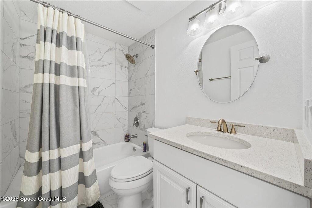 Welcome to your Banana River sanctuary! This beautifully updated 3-bedroom, 2-bath waterfront condo at Colonial House offers 1,632 sq ft of coastal living with front-row seats to rocket launches and wildlife. Watch dolphins and manatees glide by from your private screened balcony overlooking the navigable canal to the Banana River. Inside, you'll find a bright open floor plan with luxury vinyl flooring throughout, a chef's kitchen with quartz countertops and stainless appliances, elegant shiplap accents, modern barn doors, and two completely renovated bathrooms with marble-look tile and custom vanities. The primary suite boasts a spa-inspired ensuite with dual vanities. Impact-rated windows and sliders provide peace of mind and energy efficiency. Enjoy resort-style amenities including community pool, private boat docks with slip availability, fishing pier, and kayak storage. Your private 1-car garage plus ample guest parking complete this waterfront retreat. Perfect for full-time