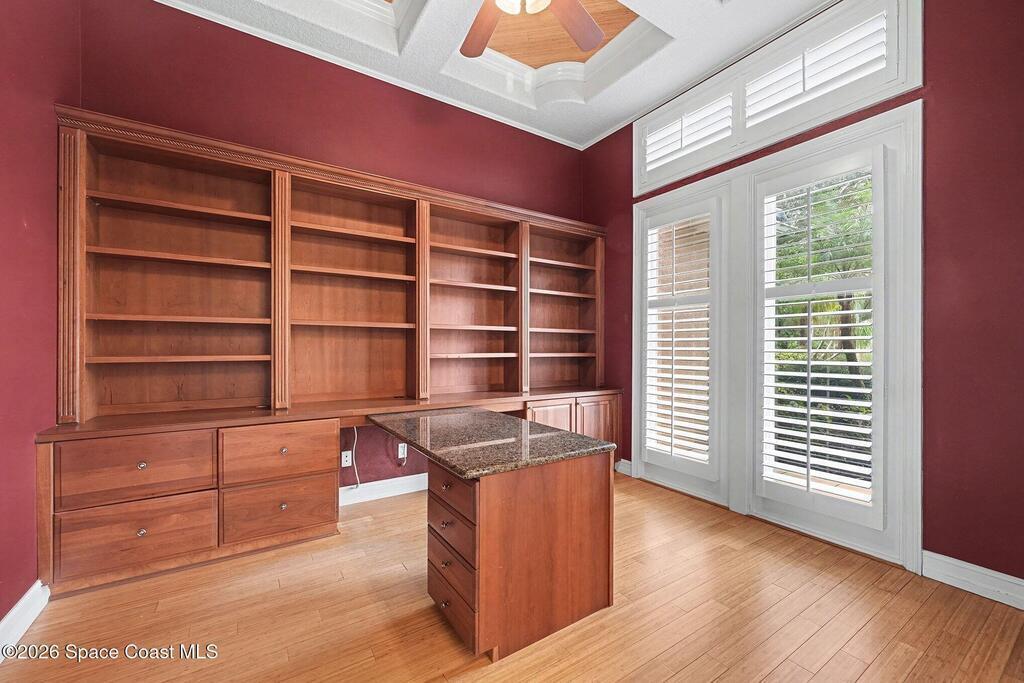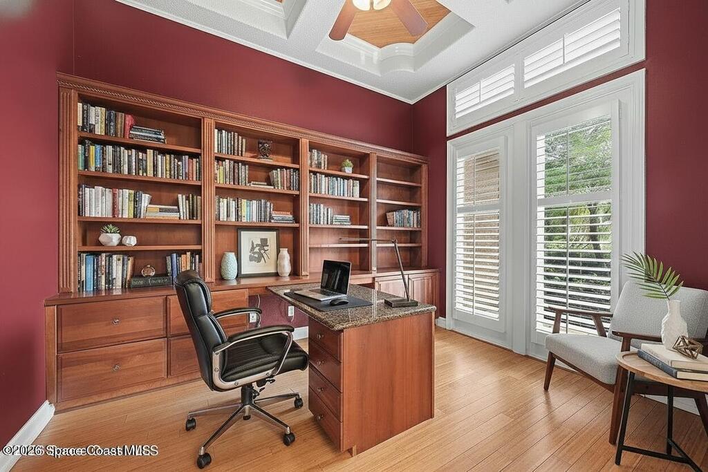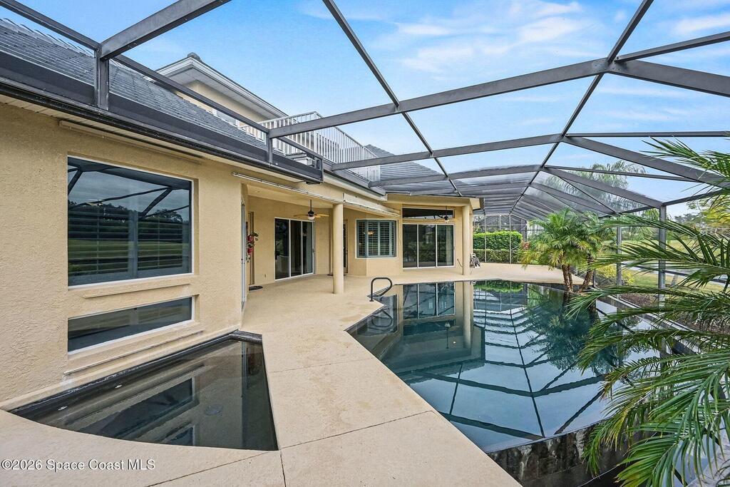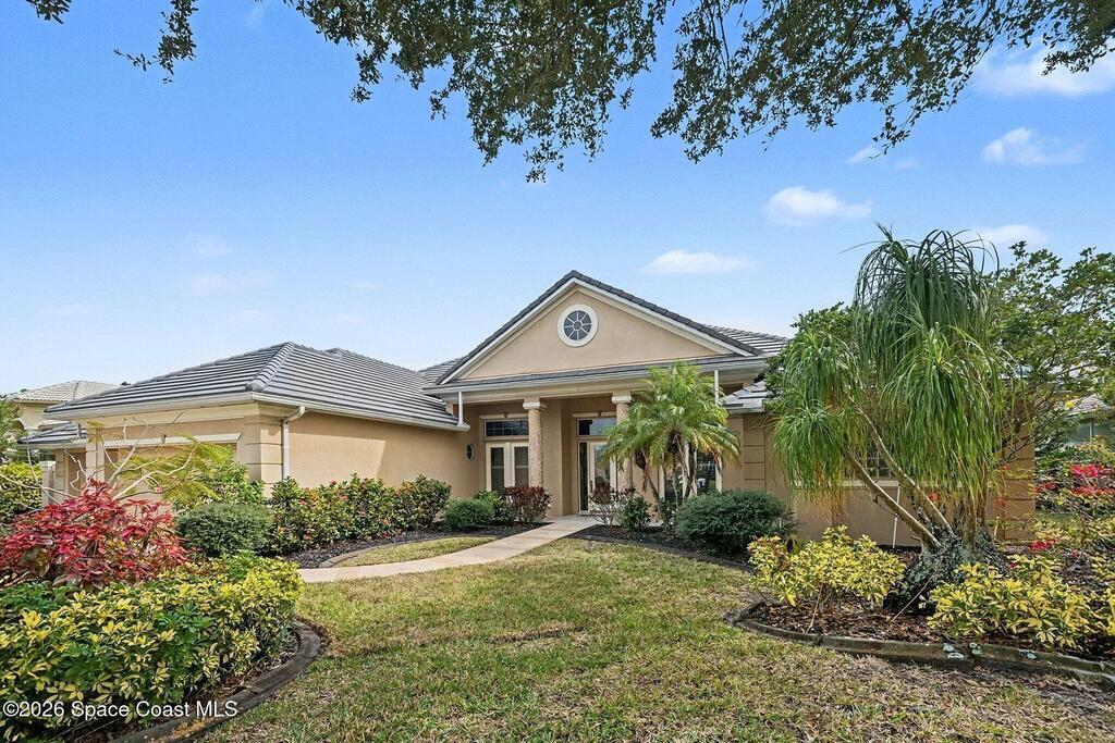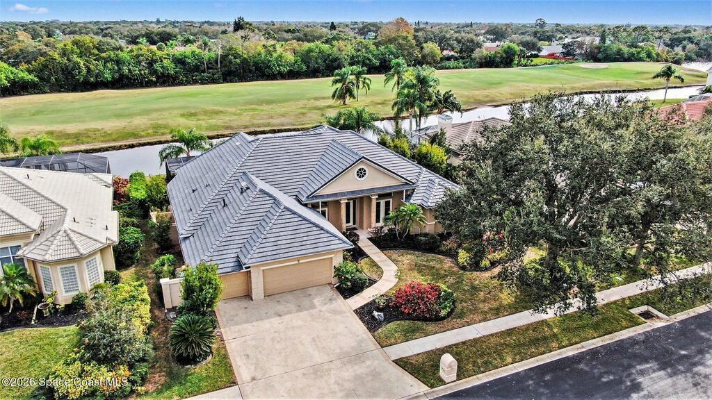 Welcome to Chatsworth, an exclusive community nestled at the center of Baytree. This residence boasts features found only in high-quality custom homes. Floor plan is both practical & versatile, well-suited to accommodate today's dynamic lifestyles. There are three dedicated bedrooms plus a bonus room--ideal as a potential bedroom, guest suite, game room, or theater--as well as a stunning custom office. The gourmet kitchen features a premium gas cooktop and hood, ample storage, and a prime location that flows seamlessly into the family room and breakfast nook. Experience exceptional outdoor living with a spectacular pool overlooking both water and the golf course. The screened lanai includes a spacious covered area for relaxation. Additional highlights include BRAND NEW TILE ROOF, generous storage throughout, an oversized laundry room and a large three-car garage outfitted with custom storage solutions. Feel safe & secure with the guarded entry all in the heart of Brevard County!
