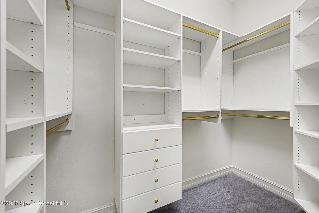- Interior FeaturesBreakfast Bar, Built-in Features, Ceiling Fan(s), Entrance Foyer, His and Hers Closets, Kitchen Island, Primary Bathroom -Tub with Separate Shower, Primary Downstairs, Split Bedrooms and Walk-In Closet(s)