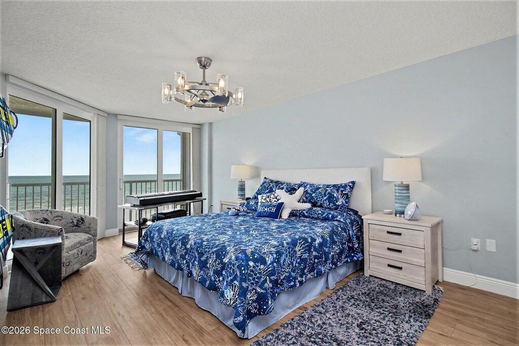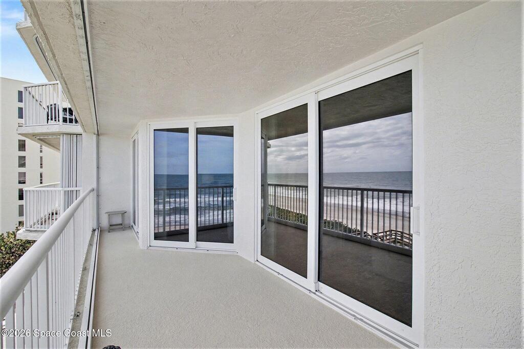 Gardenia Condos are considered one of the most prestigious and private luxury condos in Indian Harbour Beach. It is a boutique-style complex with only 24 total units, ensuring a quiet atmosphere with only 3 residences per floor! Floor-to-ceiling glass sliders in the living area and primary suite open to an expansive oceanfront balcony approximately 45 feet wide, providing views of the ocean and rocket launches from the Cape. This spacious 4th floor unit was completely remodeled in 2023, offering 3 bedrooms plus a flex room or office, new impact sliders, new flooring, a beautifully updated kitchen with granite countertops, stainless appliances, an upright freezer, and wine fridge. Both bathrooms elegantly renovated, with the primary suite offering separate walk-in closets, dual vanities, a soaking tub and shower. Recent building improvements include a new roof (2023), brand-new paver parking lot, completed SIRS, and no pending assessments. Secure garage, secure lobby with atrium,