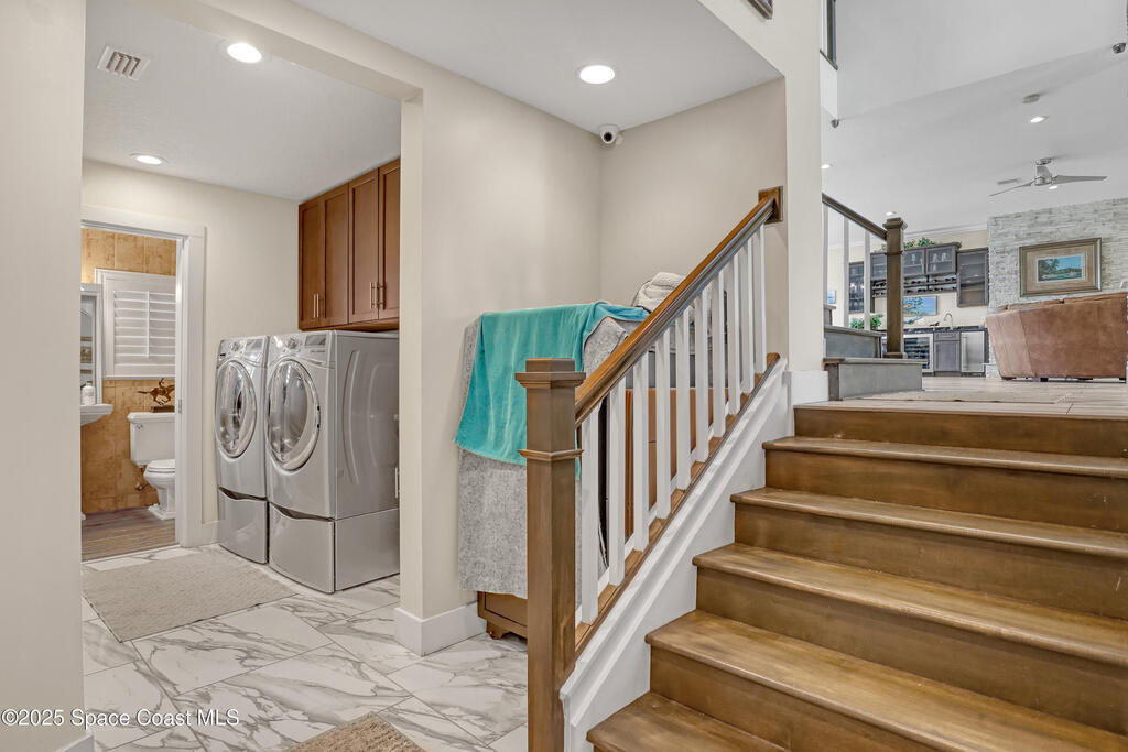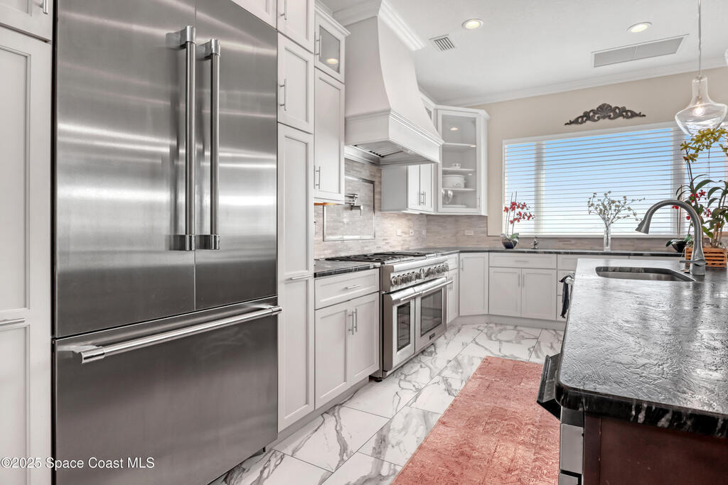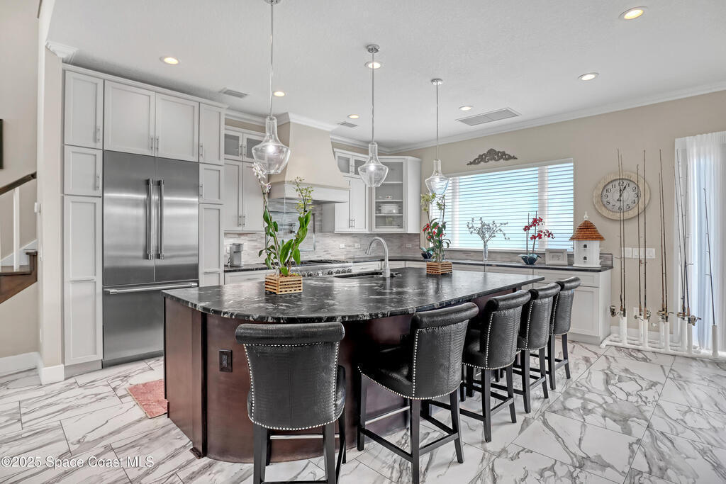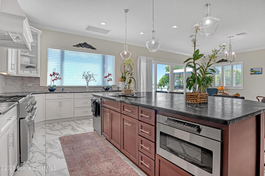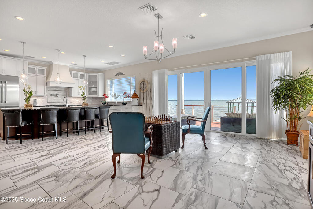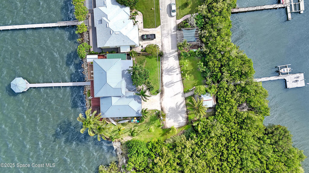 One-of-a-kind Peninsula Waterfront Estate on Two Premium Lots.Welcome to a rare peninsula-tip estate on coveted Milford Point Drive in Merritt Island.Fully renovated in 2017, this 4,000+ sq. ft. residence combines classic coastal elegance w/modern upgrades.RECENTLY APPRAISED AT 2.4 MILLION! The property boasts direct river access, deep-water dockage,frontage on two waterways, one lot facing the open river and a second on a protected canal. Step inside to an open-concept plan filled w/ natural light:5 Bedrooms,4 Baths,Include 3 Master Suites/In law Suite & Office.Property has amazing AIRBNB Potential! Impact-rated (hurricane-protected)doors & windows w/ plantation shutters frame water views from nearly every room.The entertainer's kitchen opens to the main living area & features Thermador double ovens w/ 6 gas burners,as well as generous prep/storage space.Two premium lots one on the open river,one on the quiet canal,12,500-lb boat lift and dock on Deep Water Pelican Creek