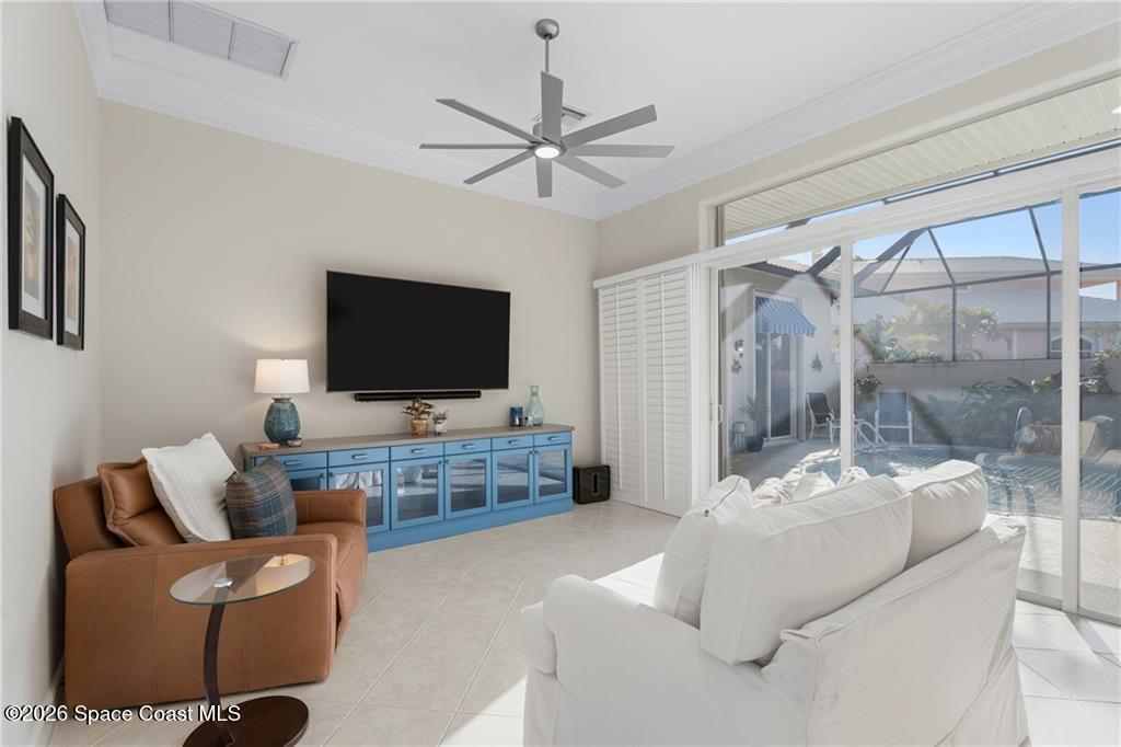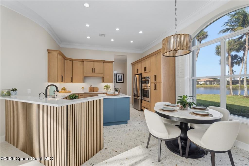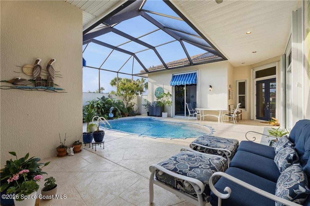 What you've been waiting for! Exceptional waterfront property completely remodeled & reimagined with special separate in-law cabana house. Alluring, expansive water views (167' along back). Artistically detailed 4BD/4BA including exceptional millwork/crown moldings throughout, custom built-ins, plantation shutters, electric window blinds, pop-up phone charger, screened porch, & VIEWS! Solar panels on roof, heated salt water pool with fountain, outdoor shower, oversized lot. Granted beach & lagoon dock access, tennis/pickleball courts, fitness ctr, 2 clubhouses with pools. A home for everyone!