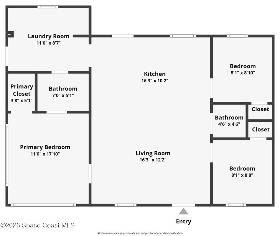- RoomsBathroom 2, Bedroom 2, Bedroom 3, Kitchen, Laundry, Living Room, Primary Bathroom and Primary Bedroom