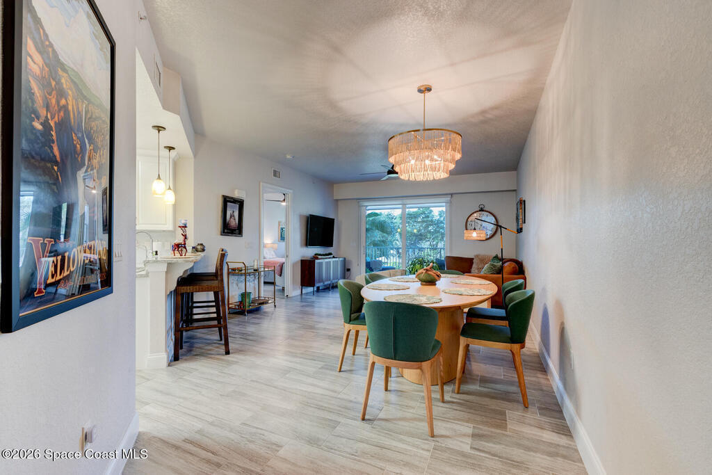 Experience one of the best values in Riverwalk at Coronado in this 2020-built waterfront residence that lives just like new, offering a refined coastal lifestyle enhanced by serene, calming water views from both the primary bedroom and the private balcony. Elevated three floors above sea level, this two bedroom, two bathroom residence combines modern construction with thoughtful upgrades and a peaceful setting overlooking the wide stretch of Smyrna Creek, and the tranquil backdrop of passing boats, wildlife, and evening sky reflections that make this location so special. Inside, the entire unit has been finished with beautiful wood grain tile flooring, including both bedrooms and the balcony, creating a seamless, low maintenance living environment that is ideal for full time or seasonal enjoyment
