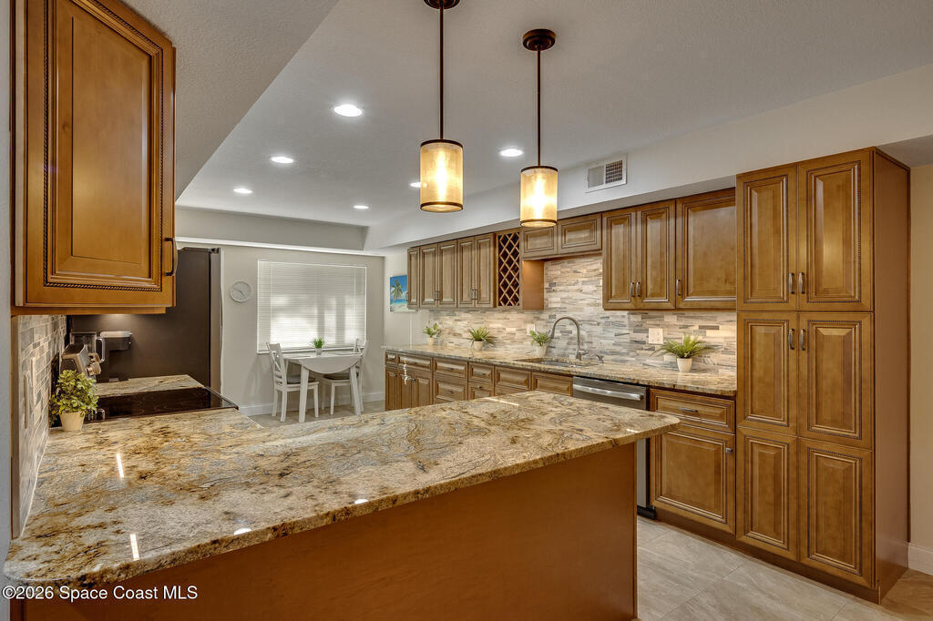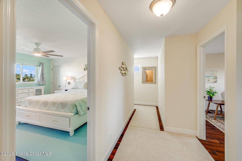 Completely remodeled and truly move-in ready, this beautifully updated townhome is located just one block from the beach in a highly sought-after community. Offering 3 bedrooms and 2.5 baths, the home welcomes you with attractive landscaping and a warm, cohesive palette of cabinetry, tile, paint, granite, and hardwood flooring. Thoughtful upgrades throughout reflect attention to detail at every turn. The second-floor laundry adds convenience, while the spacious primary suite features a private walkout balcony, perfect for enjoying morning coffee or evening sunsets. Abundant natural light fills the home, complemented by impact windows and impact-rated doors that enhance energy efficiency, provide exceptional sound reduction, and may help lower home insurance costs. Updated lighting with dimmers and freshly painted neutral interiors add to the move-in-ready appeal. The fenced backyard offers privacy and outdoor enjoyment. Ideal as a full-time residence, part-time retreat, or investment