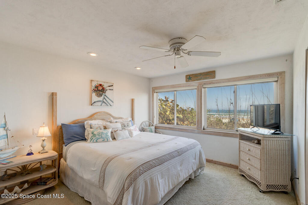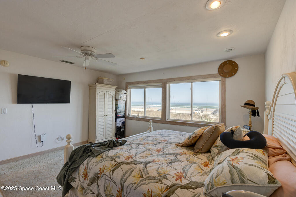Oceanfront, ocean views, ocean access. Welcome to an extraordinary opportunity to own a true gem in the heart of New Smyrna Beach's most exclusive and sought-after area, the Oceanfront Boardwalk. This stunning residence is more than just a home; it's a lifestyle. Perched directly on the sand with unparalleled views of the Atlantic Ocean, this property invites you to step off your back deck and sink your toes into the beach, making every day a seaside escape. This exceptional coastal retreat boasts three spacious bedrooms and three full bathrooms, with two of the bedrooms designed as luxurious master suites, each offering its own breathtaking ocean views completing your private retreat. Built on pilon construction with impact-rated windows, this home is designed for both durability and peace of mind. This home is as modern as it is charming.