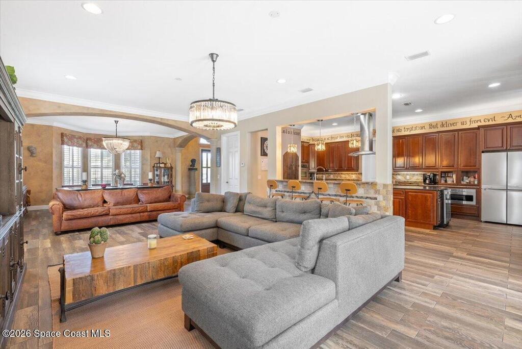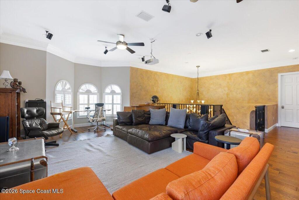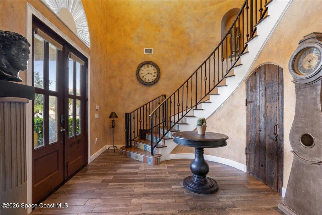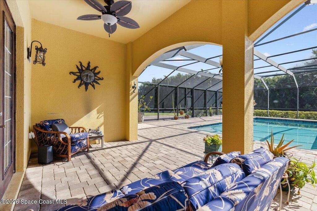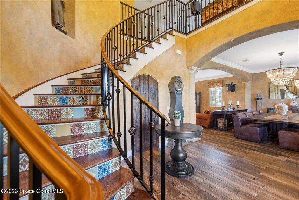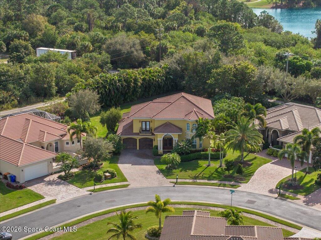 Stunning Mediterranean-style home in a gated Vero Beach community offering 3,599 sq ft of move-in ready living space. This spacious 4-bedroom, 3.5-bath residence features a desirable primary suite on the main level and an expansive upstairs living area ideal for entertaining or flexible living. Situated on a large lot, the home showcases a huge screened pool and enclosure, creating a private outdoor retreat perfect for Florida living. Thoughtfully designed with generous living areas and classic architectural details, this home delivers space, style, and comfort in a secure, sought-after setting.