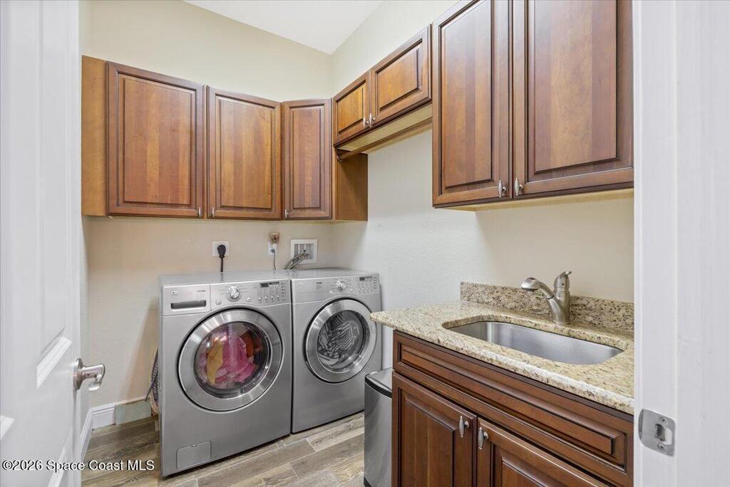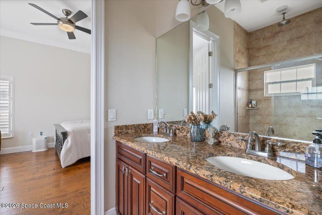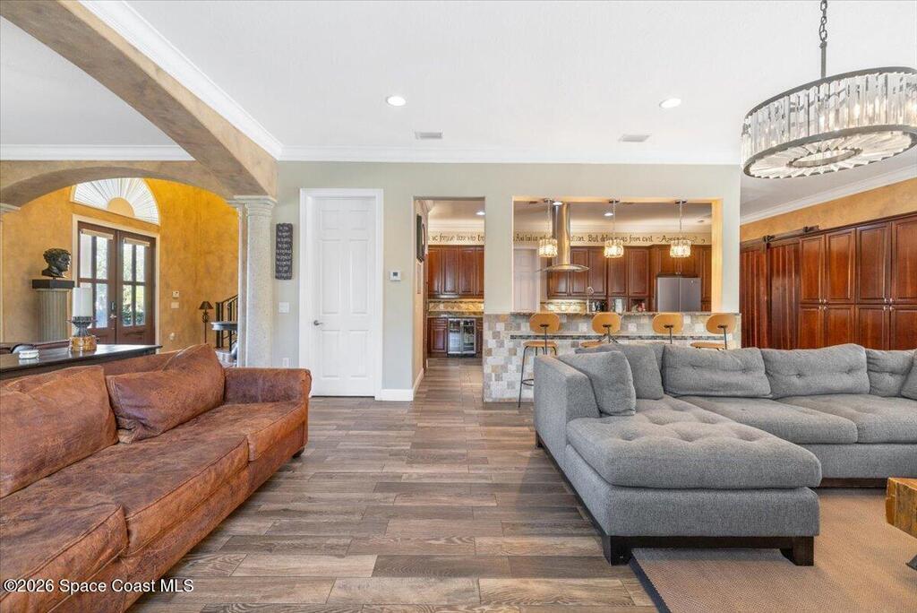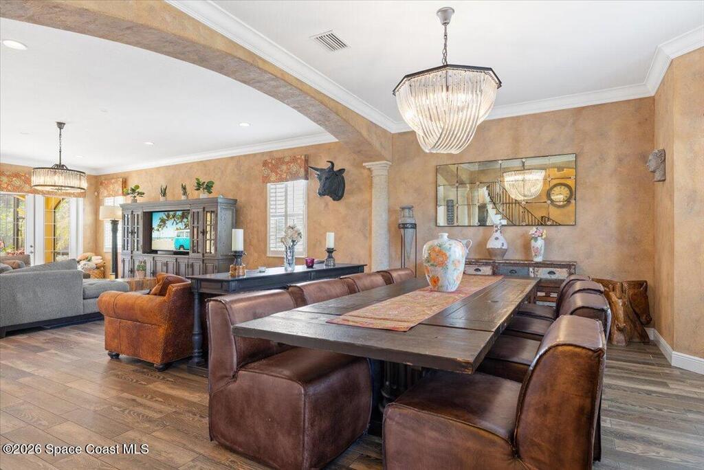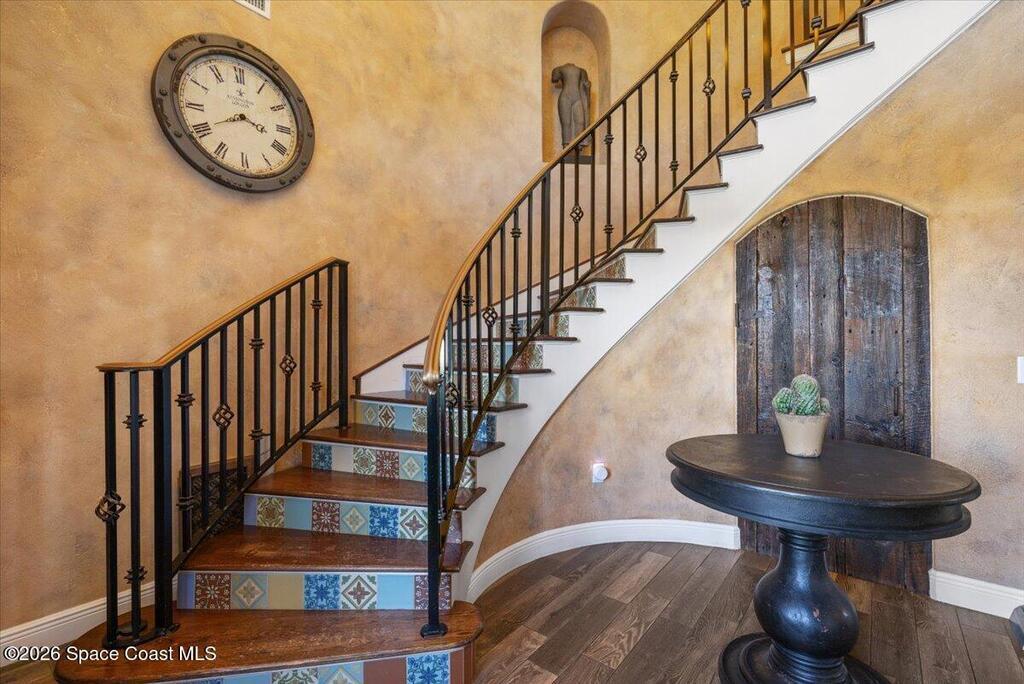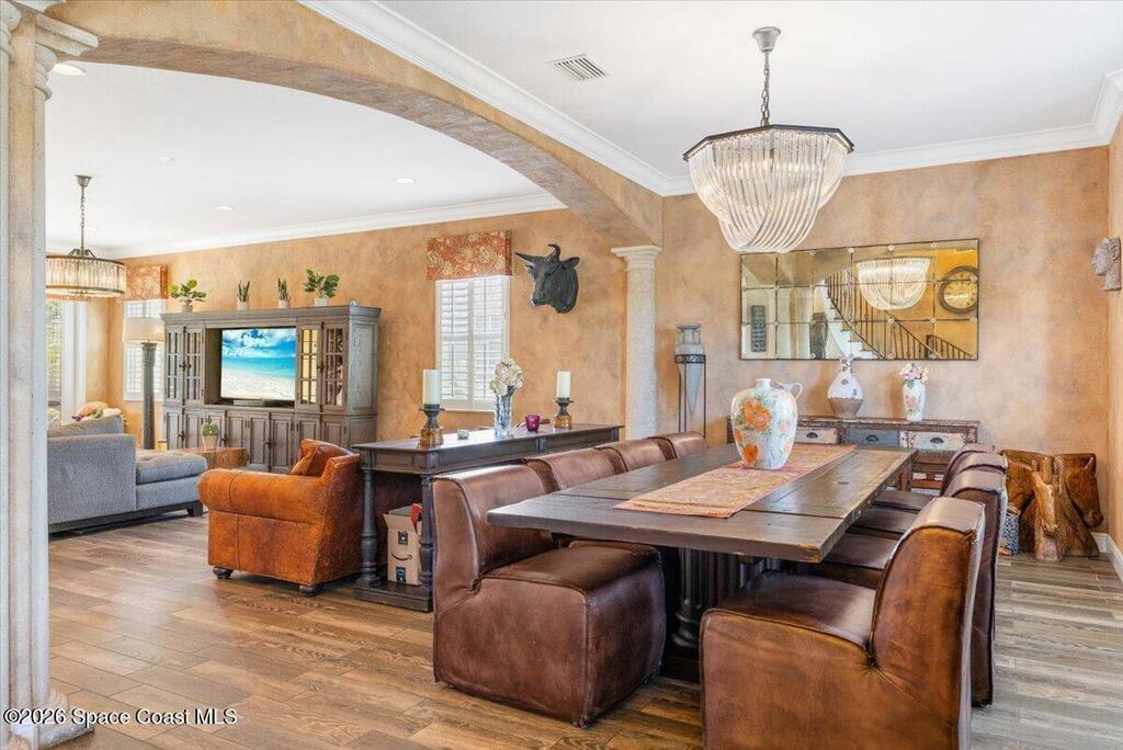 Stunning Mediterranean-style home in a gated Vero Beach community offering 3,599 sq ft of move-in ready living space. This spacious 4-bedroom, 3.5-bath residence features a desirable primary suite on the main level and an expansive upstairs living area ideal for entertaining or flexible living. Situated on a large lot, the home showcases a huge screened pool and enclosure, creating a private outdoor retreat perfect for Florida living. Thoughtfully designed with generous living areas and classic architectural details, this home delivers space, style, and comfort in a secure, sought-after setting.