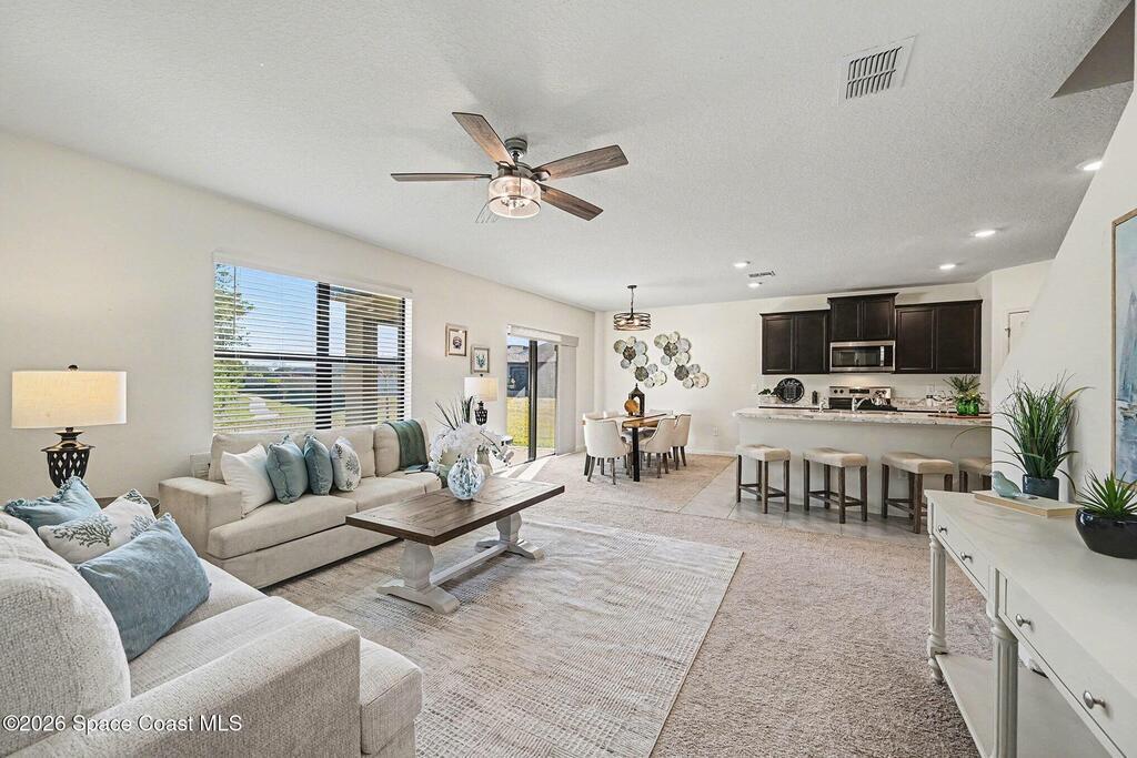 Welcome HOME to this ROOMY five bedroom three bath two story beauty designed for both every day living and entertaining! Plenty of space for everyone, this home offers flexible living areas and a layout that fit's today's lifestyle! Versatile floor plan with den/office, spacious kitchen, living room area, full bathroom and bedroom downstairs. Huge primary bedroom with en-suite bathroom & his & hers closets, third, fourth and fifth bedrooms, third full bath, laundry room with full size washer & dryer and family room area all located upstairs. Enjoy community amenities perfect for an active Florida life such as sparkling community pool, playground area with pavilion and barbeque, jogging trail and scenic fishing dock! A wonderful opportunity to experience space, comfort and community all in one place!