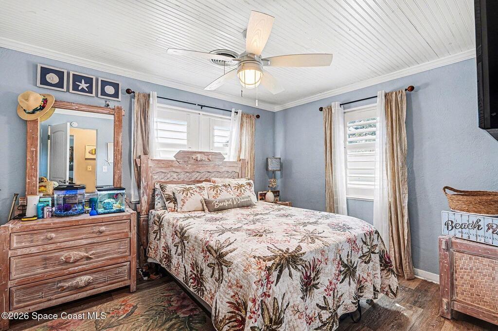 Welcome to Shores Acres--an inviting, updated 2-bedroom, 1-bath solid block beach cottage with a bonus room, perfectly positioned on a corner lot in a sought-after location. This charming home features a remodeled kitchen with white cabinetry, stainless steel countertops and appliances, a double oven, beadboard ceiling, and luxury vinyl plank flooring. Interior updates include crown molding, updated lighting, and a renovated bathroom with new shower, vanity, and toilet. MAJOR UPGRADES OFFER PEACE OF MIND WITH A NEW ROOF AND WATER HEATER (2023), HVAC (2020), HURRICANE-RATED WINDOWS AND SHUTTERS (2020), AND GUTTERS. The bonus room provides flexible space for guests, a home office, or hobbies. Enjoy a fenced yard, attached garage, and proximity to the Halifax River, parks, Main Street, shopping, golf, boating, Speedway, airport, and beaches. A perfect blend of charm, updates, and location!