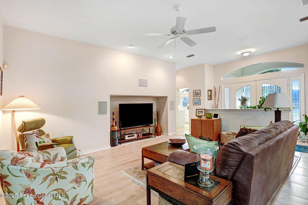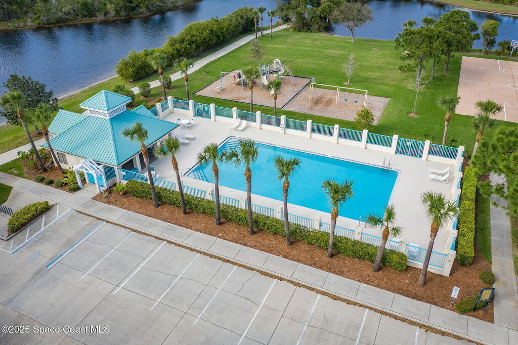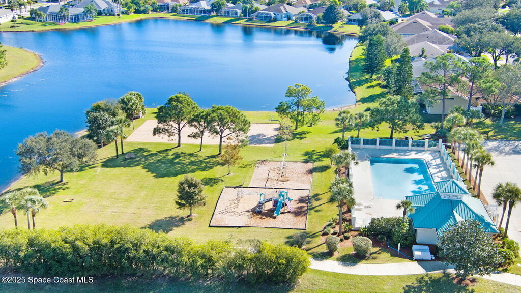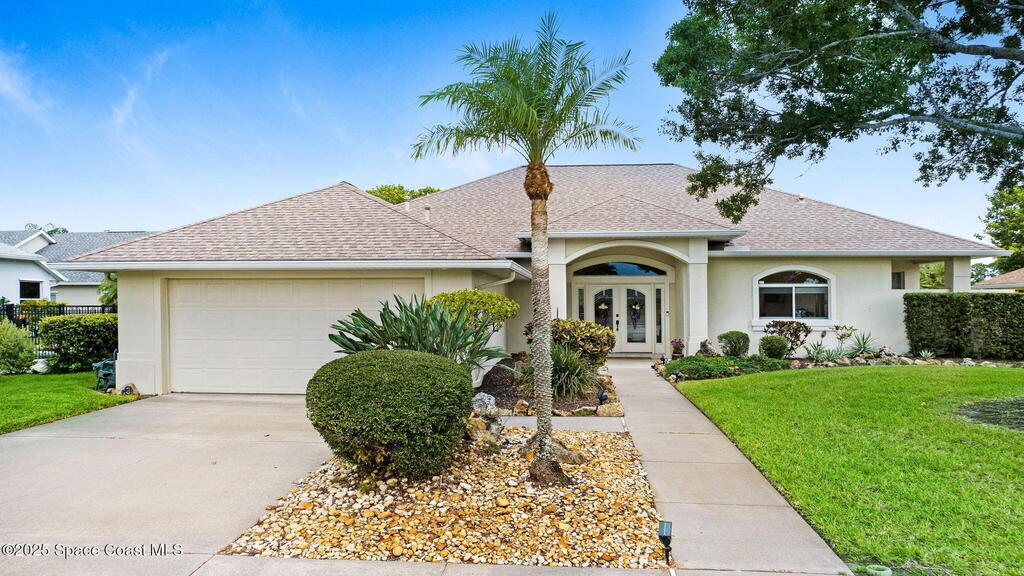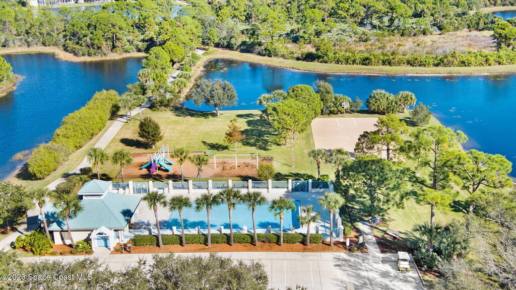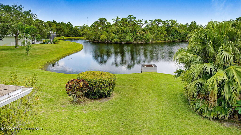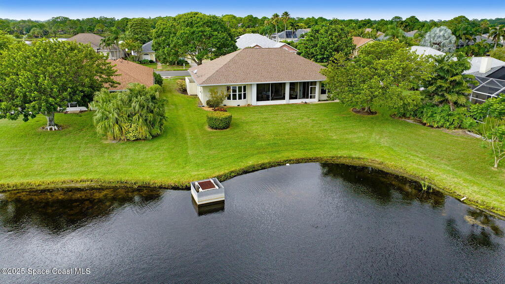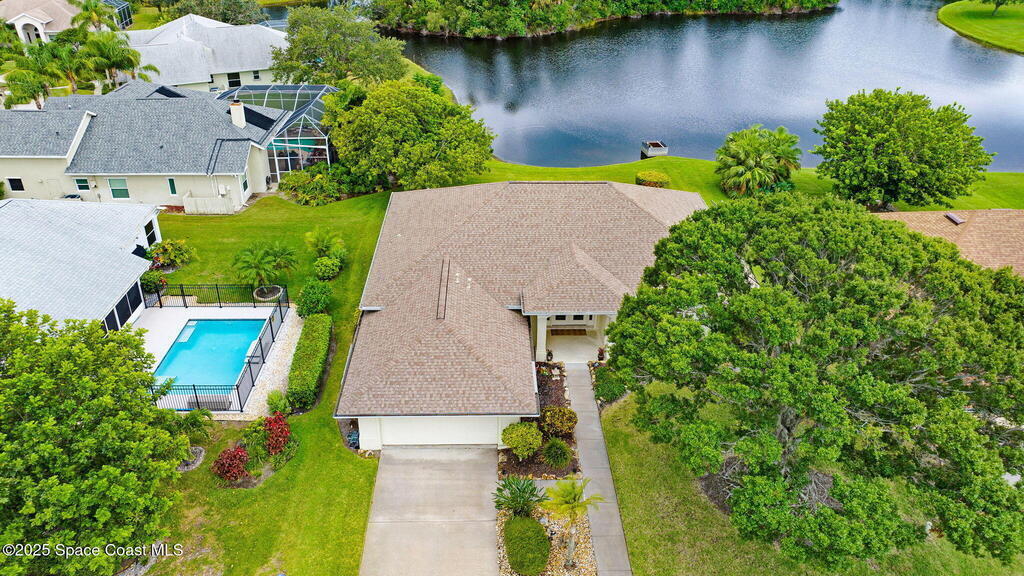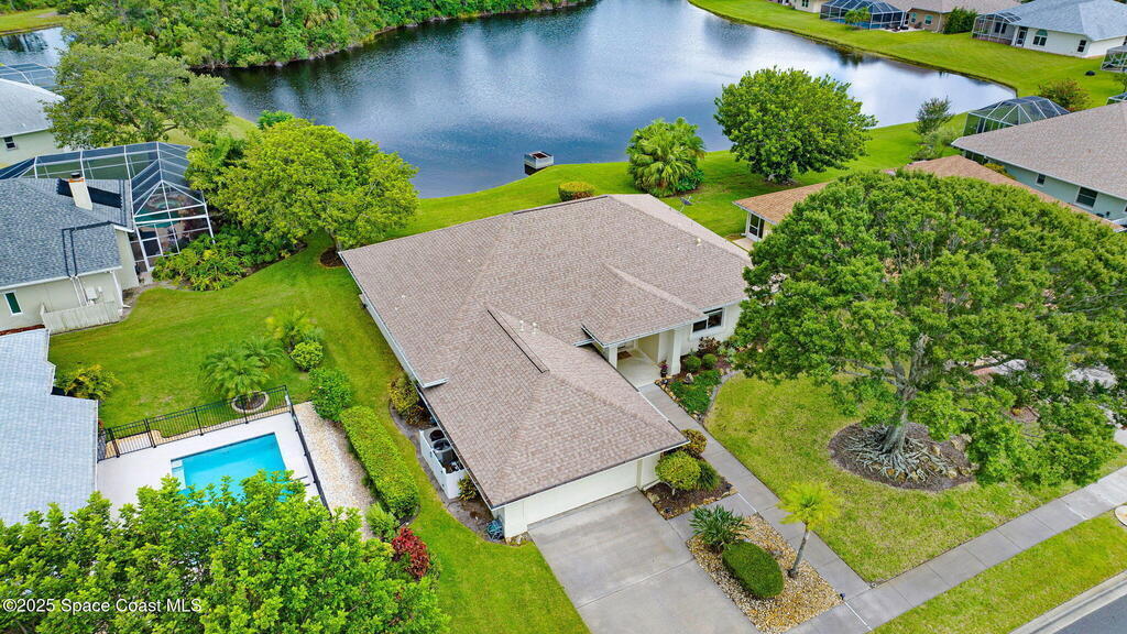 Captivating Tropical Lake & Preserve Views, with Mature Trees located in the highly rated Viera school system. This Custom Built 3 Bedroom; 2 Bath home with original plans available. offers endless possibilities. Features high ceilings, generous storage, stainless-steel kitchen appliances and a removable banquette dining area. A second (walk-in) pantry is conveniently located off the drop zone near the garage. The great room offers new luxury vinyl plank flooring, while the primary suite includes battery-operated draperies, dual vanities, dual closets, a water closet with attached laundry with built in craft area, and access to a private meditation area. Bedroom 3/Den features double doors and a spacious walk-in closet. Upgrades include impact windows (master bay & office), a new storm shutter on the screened patio, and a central vacuum system. Enjoy community amenities-pool, park, basketball court, & walking trails--all minutes from I-95, dining, shopping and the beach!