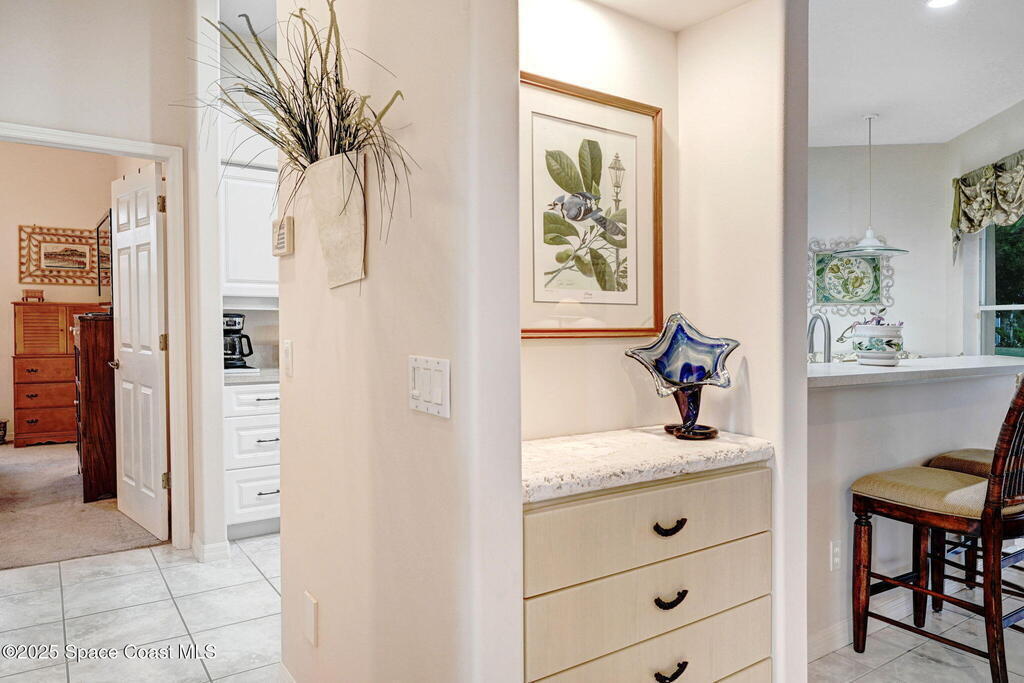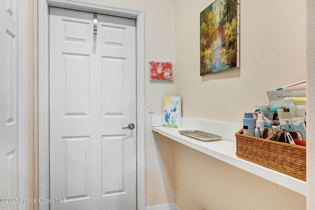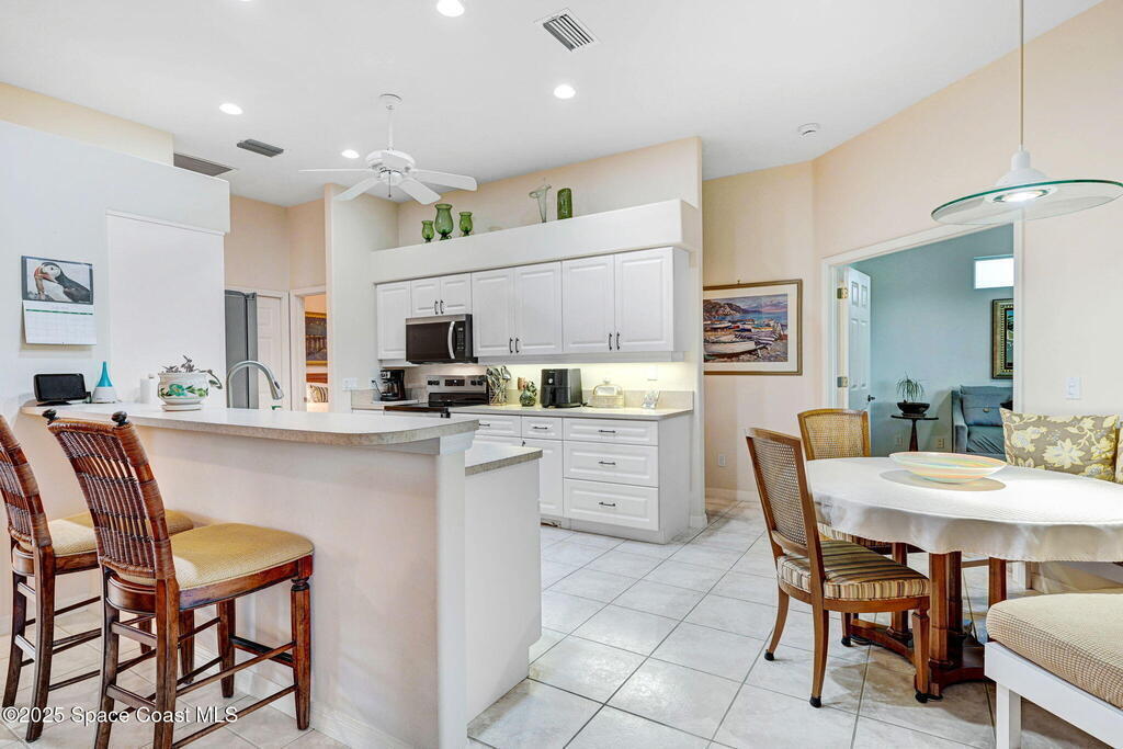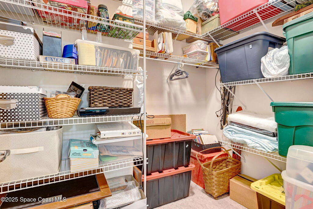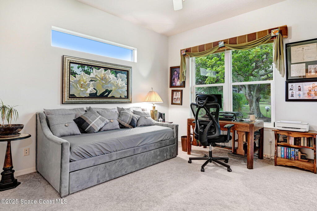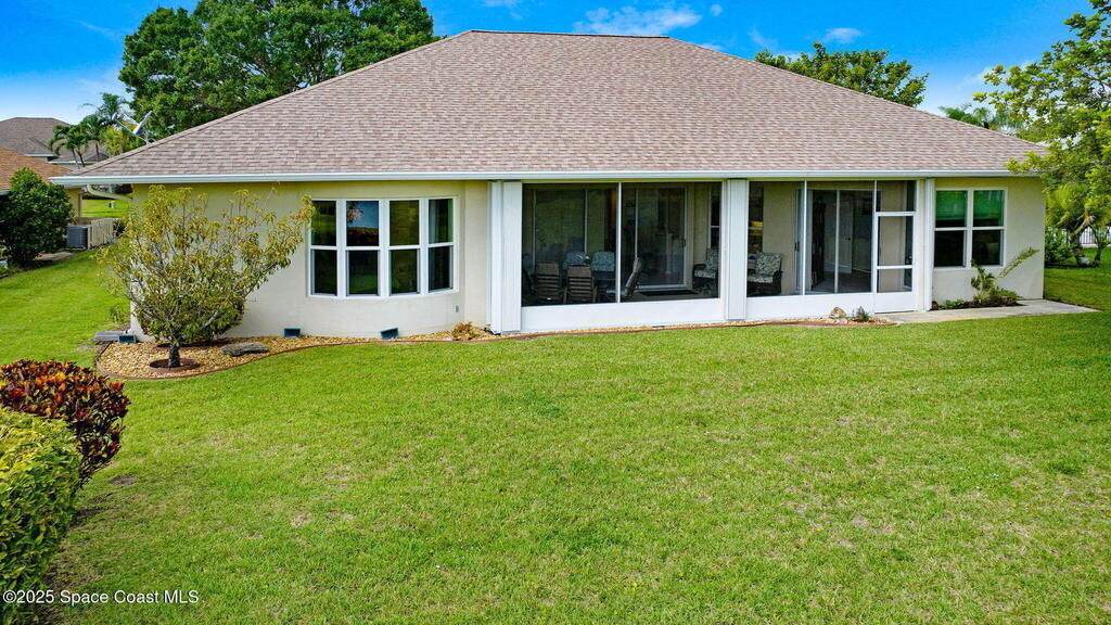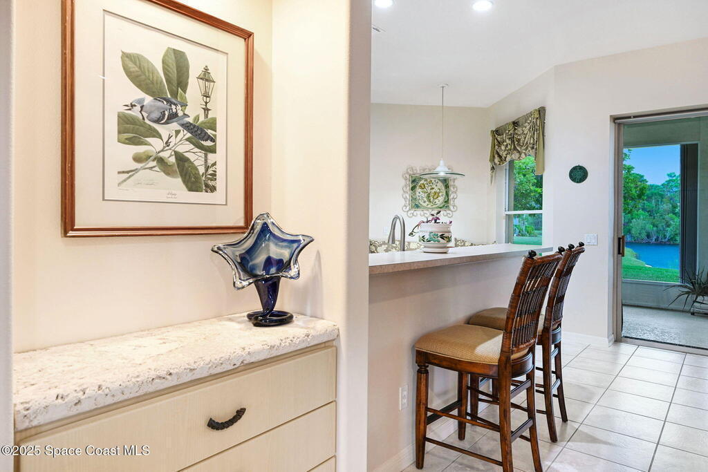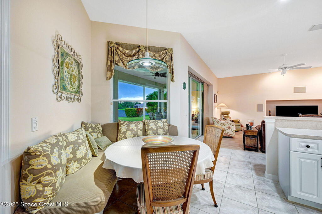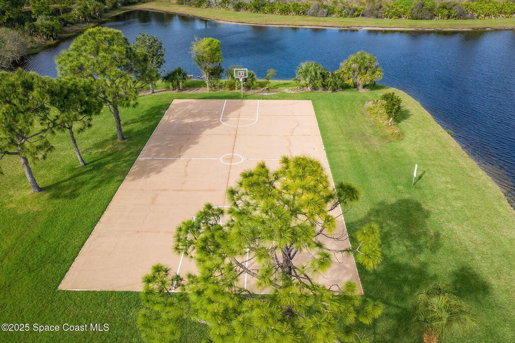 Captivating Tropical Lake & Preserve Views, with Mature Trees located in the highly rated Viera school system. This Custom Built 3 Bedroom; 2 Bath home with original plans available. offers endless possibilities. Features high ceilings, generous storage, stainless-steel kitchen appliances and a removable banquette dining area. A second (walk-in) pantry is conveniently located off the drop zone near the garage. The great room offers new luxury vinyl plank flooring, while the primary suite includes battery-operated draperies, dual vanities, dual closets, a water closet with attached laundry with built in craft area, and access to a private meditation area. Bedroom 3/Den features double doors and a spacious walk-in closet. Upgrades include impact windows (master bay & office), a new storm shutter on the screened patio, and a central vacuum system. Enjoy community amenities-pool, park, basketball court, & walking trails--all minutes from I-95, dining, shopping and the beach!