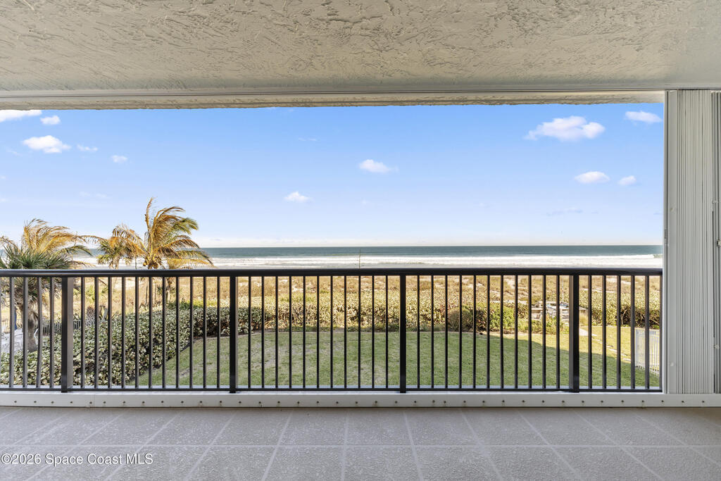 Oceanfront paradise! This 3 bedroom 2 bath condo is one of only 26 units located directly on the oceanfront. Located on the Northeast corner it shares only one neighbor and unobstructed views of the beach and oceanfront. Upgrades include windows, painting, tile flooring and engineered hardwood, kitchen, and more! All units have one garage space with small storage area. The master has direct access to the balcony for coffee and sunrises! There is also a back balcony connected to the two guest bedrooms which has views of the Indian River Lagoon. The front entry way has a gorgeous frame tray ceiling. Kitchen has stainless steel appliances and movable granite island. Hurricane Shutters installed in 2022. The Condo has access to community pool, rec room, and beach access. Minutes to many restaurants and famous downtown Cocoa Beach. Come see what could be your oceanfront getaway!