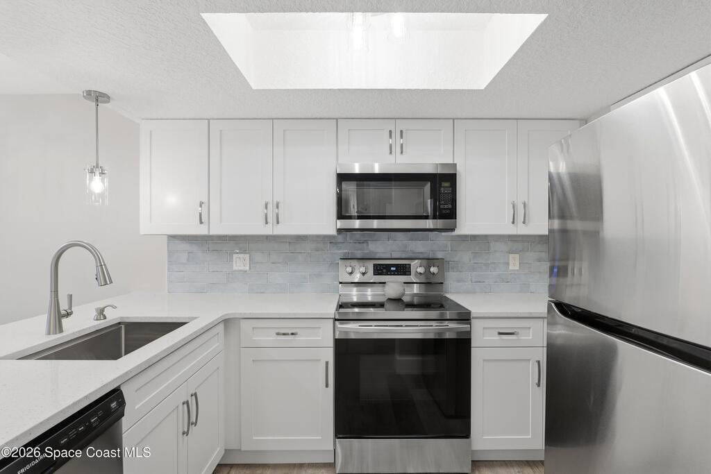 This stunning remodel is truly to perfection, showcasing amazing updates throughout! There is so much attention to detail, including quartz countertops in the kitchen and bathrooms. New fixtures and hardware have been installed throughout the space, along with new doors and tile that resembles wood. The home features new light fixtures and fans, and there's a barn door providing access to the brand new washer and dryer. Additionally, the new refrigerator, oven, and dishwasher enhance the kitchen's functionality. All the walls have been resurfaced and freshly painted. The surrounding area boasts a nearby park and the new Veterans Amphitheater, along with numerous walking paths.