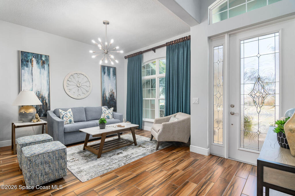 Immaculate home just 9 min. from the beach, close to shops, restaurants, grocery stores & A-rated schools. Designed for comfort & entertaining, this open-plan home features an exceptional outdoor living space with a summer kitchen, including a grill & gas burners, plus a gorgeous swimming pool with a waterfall & shallow entry, ideal for kids or in-pool seating. Fully fenced yard w/ two gates & outdoor TV. Inside, enjoy high ceilings & wood-look tile throughout, paired w/ white cabinets & granite counters. The kitchen is a standout w/ SS appliances, wall microwave & oven, vent hood, supersized island & casual dining area overlooking the large lanai. Additional upgrades include extended driveway, epoxy-painted garage, cabinets in the laundry room, tankless gas water heater, AC w/ UV light & overflow safety system, security camera system & solar panels to be paid in full at closing. Owner averages only $50/month electric bill. Loaded w/ upgrades & thoughtfully designed for Florida living