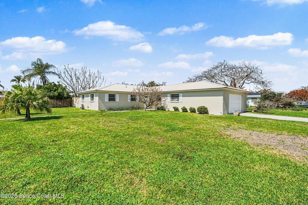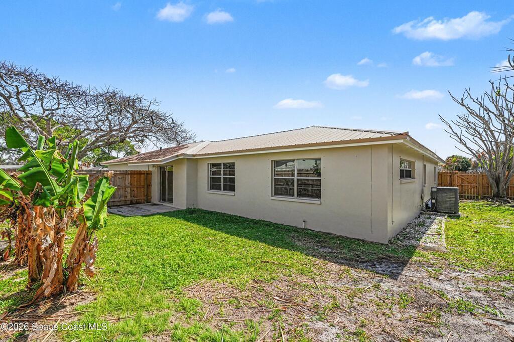 Bright, clean, and move-in ready, this 1,600+ square foot 3 bedroom, 2 bath beachside home is perfectly situated on a corner lot in a quiet neighborhood. Thoughtfully maintained, the home features a durable metal roof (2007), HVAC replaced in 2019, and fresh interior paint throughout including walls, doors, ceilings, and trim. The custom kitchen offers all-wood cabinetry and recently updated stainless steel appliances, ideal for everyday living and entertaining. Ceramic tile and wood-look LVP flooring provide both style and easy care. Enjoy peace of mind with an impact-rated front door and garage door, plus storm shutters for remaining windows and doors. Outdoor features include sprinklers with a new pump (2025), an artesian well with new pump (2025), and a private fenced backyard with lush tropical landscaping and a new fence--perfect for relaxing or entertaining. A true beachside gem ready for immediate enjoyment. 🌴