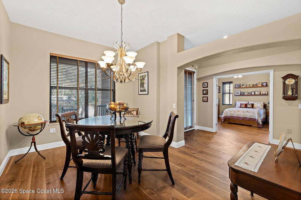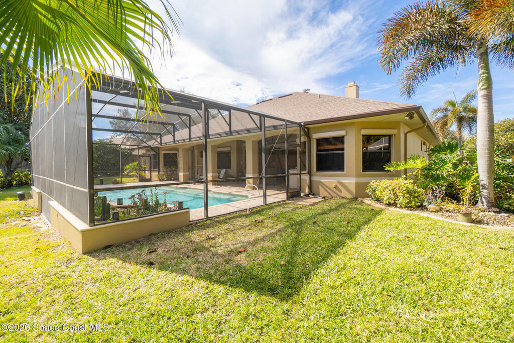 Welcome to luxury living in the heart of Merritt Island at The Plantation! This stunning 3-Bed/3-Bath home on an expansive lot showcases an open floor plan with elegant formal living and dining rooms. The chef's kitchen boasts hardwood cabinets, a center island with range, a generous breakfast bar, and a walk-in pantry. Through pocket sliding glass doors, enter your resort-style backyard featuring an outdoor summer kitchen, paver patio, and screen-enclosed solar-heated infinity pool with serene lake views. The spa-like primary ensuite bath features a lighted whirlpool bath, dual vanities, and his-and-hers walk-in showers. Highlights include built-in features, lighted & tiered ceilings, a gas fireplace, storm shutters, fresh paint inside and out, an expansive laundry room, and an oversized 3-car garage. The circular paver driveway welcomes you to this tree-lined sanctuary with lush tropical landscaping. Don't miss your chance to own this stunning lakefront beauty!