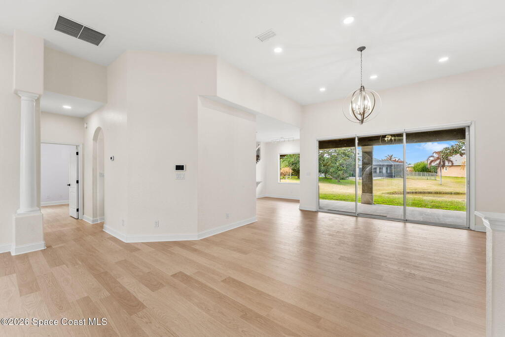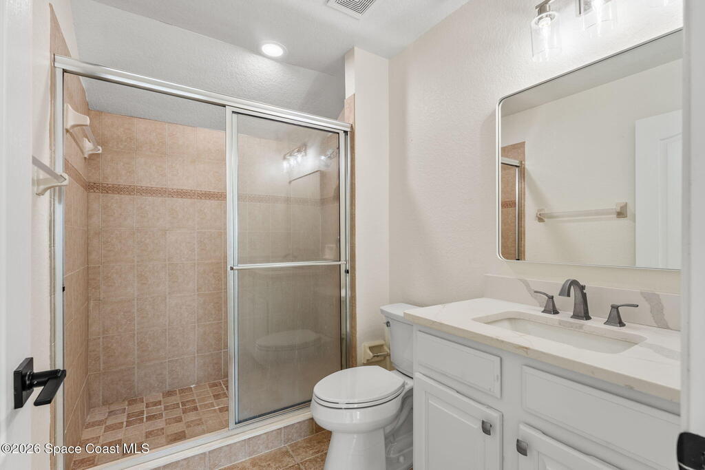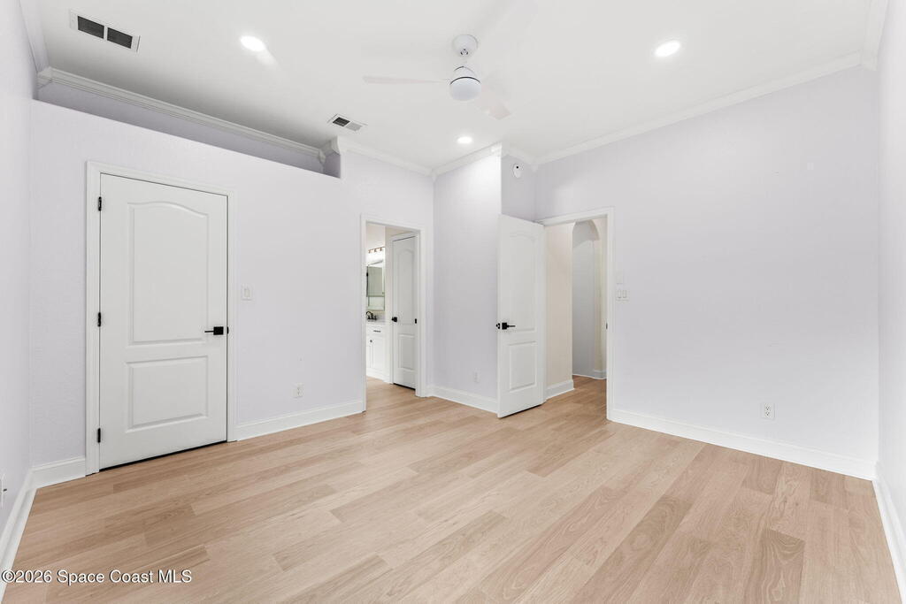 Bring an offer! Renovated in Ravencliffe at West Viera, this gated lakefront residence offers 2,913 sq ft of refined living with 5 bedrooms, 3 baths, & a flexible split floor plan designed for multi-generational living. The fifth bedroom can easily serve as a private office, den, or additional guest room to fit your needs. Primary suites on both levels provide privacy and versatility, with four bedrooms & two full baths on the main floor, while upstairs features a private retreat with its own bedroom, bath, and living area--ideal for guests or in-laws. The redesigned kitchen showcases custom cabinetry, quartz countertops, and premium appliances, flowing into a bright breakfast nook framed by panoramic lake views and a spacious backyard with room for a future pool. The guest bathroom has been beautifully remodeled, and the home features a blend of laminate, tile, and carpet flooring throughout. Additional upgrades include energy-efficient windows w/ automatic blinds, dual 2024 A/C units