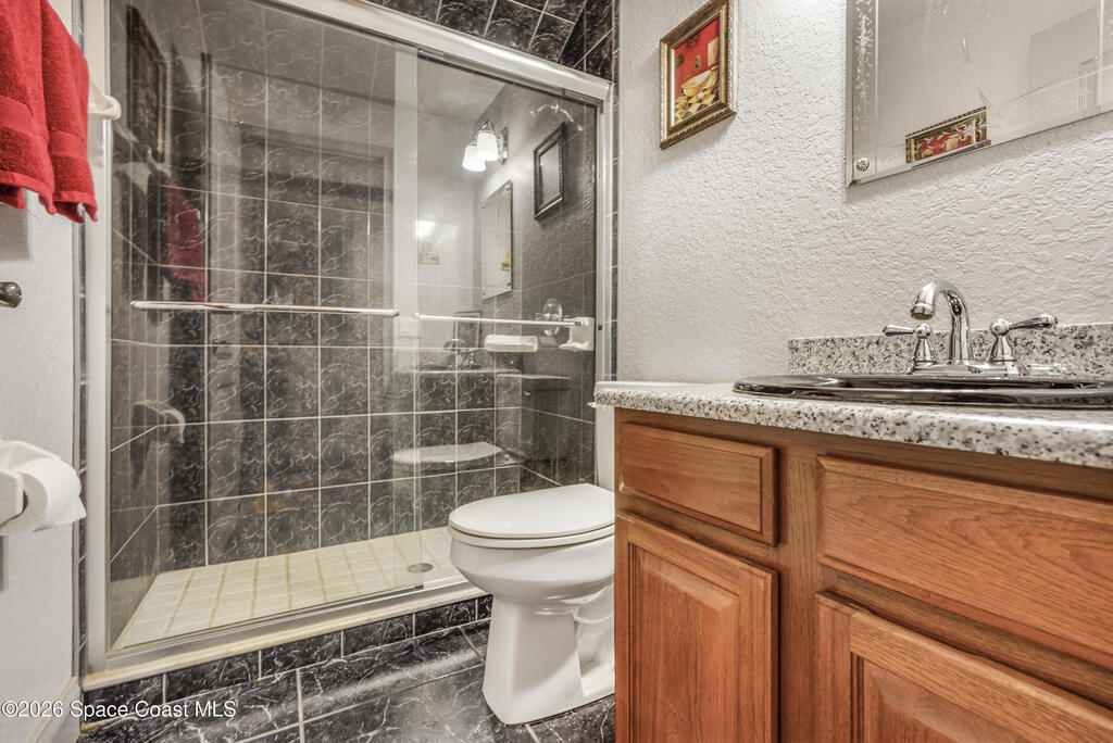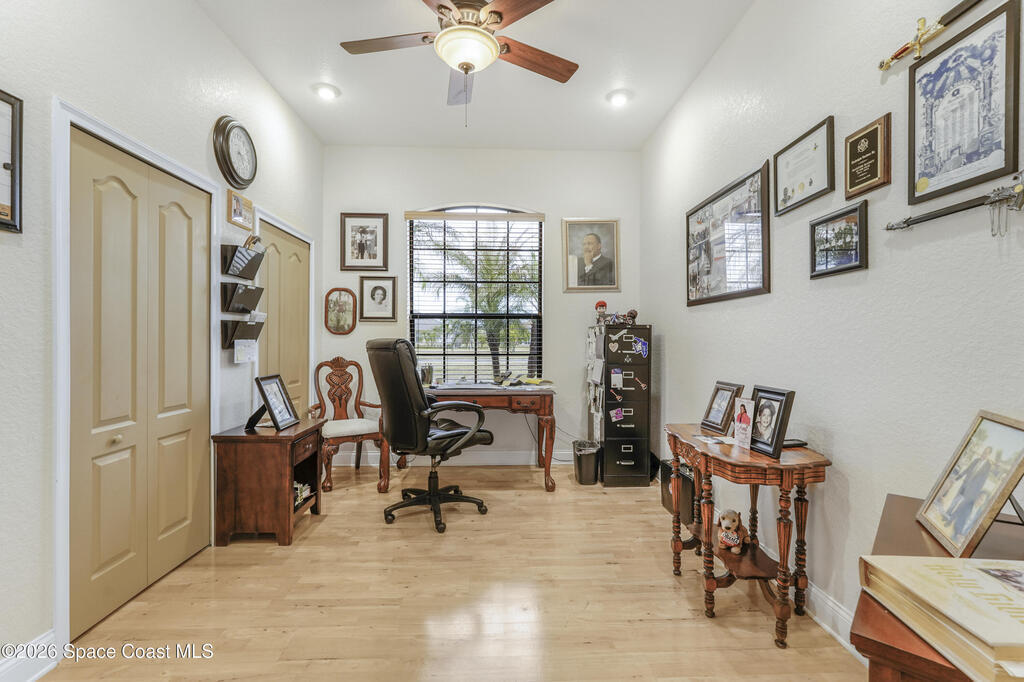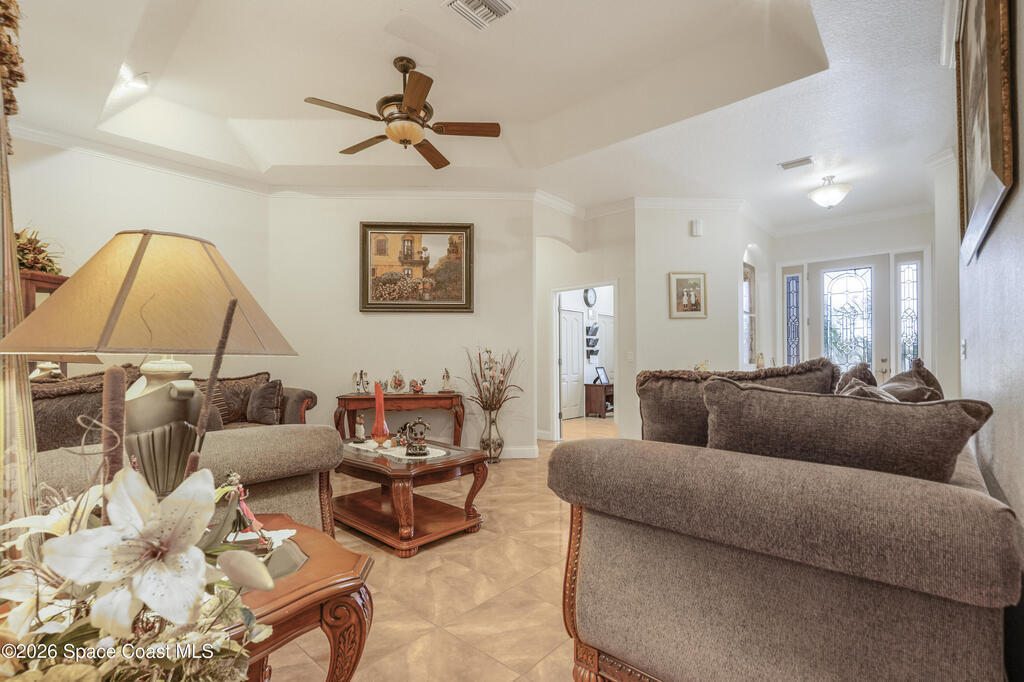 Situated on a full acre in the gated community of Rockledge Acres Estates, this 5-bedroom, 3-bathroom home offers space, privacy, and long-term pride of ownership, with only one owner in over 20 years.The home features tile flooring throughout the main living areas and wood flooring in the guest bedrooms and primary suite. A spacious kitchen opens to a separate dining area, ideal for holiday gatherings and entertaining. An upstairs loft with its own bathroom and closet provides flexible space for an entertainment room, guest suite, or home office.The primary suite includes his-and-her walk-in closets, dual tiled showers, and a jetted jacuzzi tub. Additional highlights include a three-car garage and a detached garage perfect for boat storage or extra vehicles.This rare property combines acreage, functionality, and gated community living in a highly desirable Rockledge location.