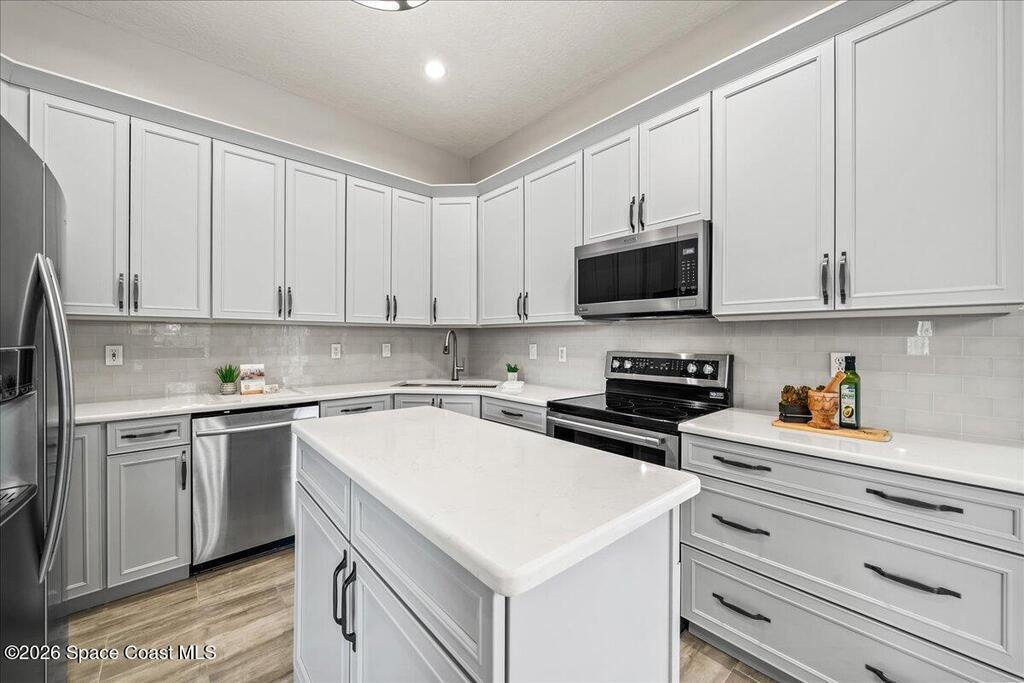 - Interior FeaturesEat-in Kitchen, Entrance Foyer, Kitchen Island, Primary Bathroom -Tub with Separate Shower, Vaulted Ceiling(s) and Walk-In Closet(s)