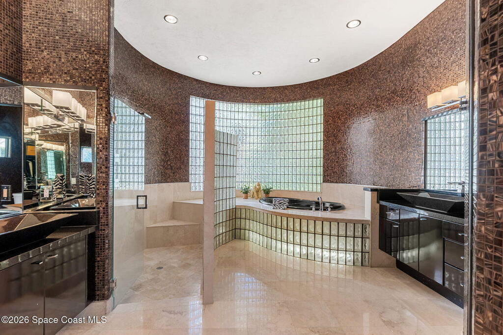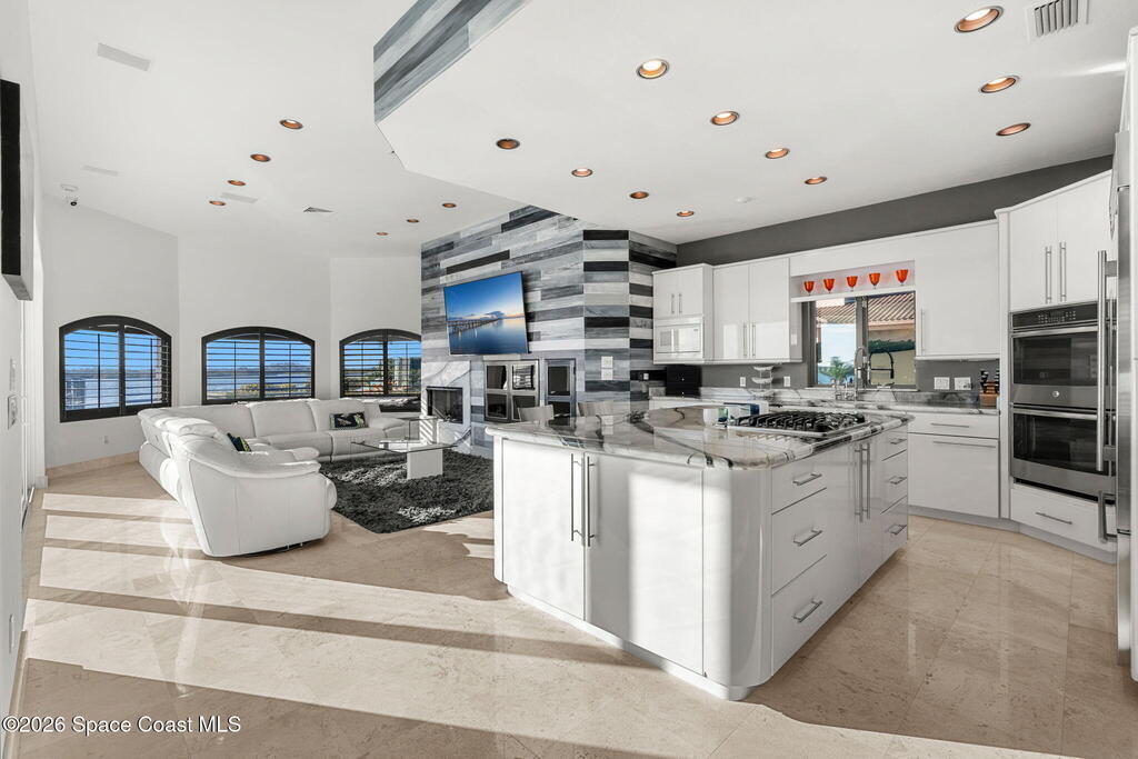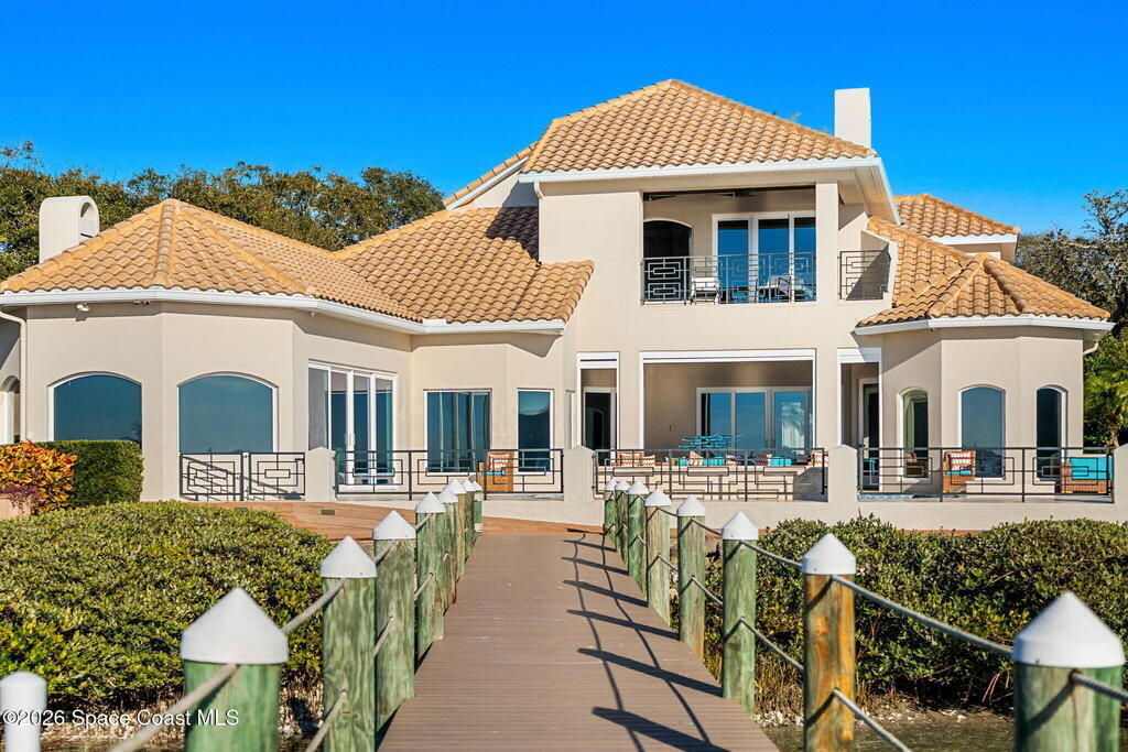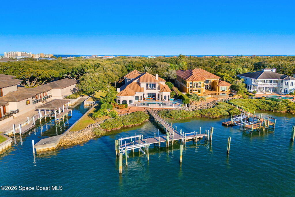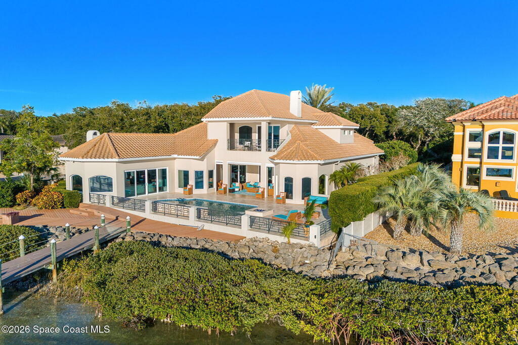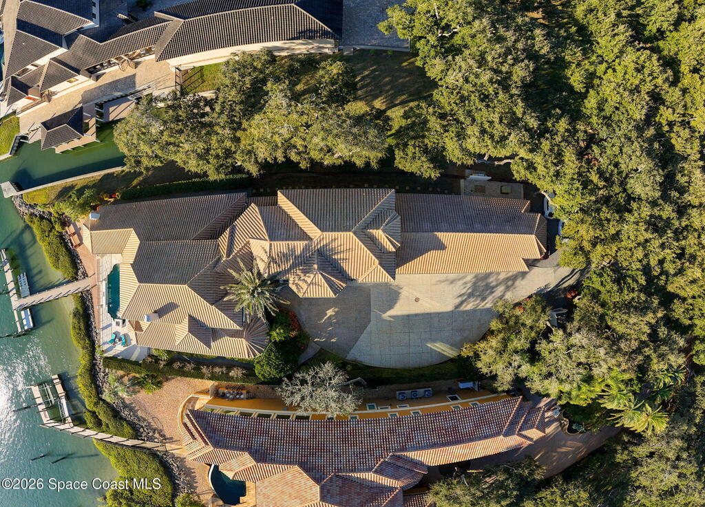 Discover waterfront living at it's finest in this absolutely exquisite, direct riverfront estate w/new gated entrance sitting on almost 1.5 acre of pristine landscape plus 130 ft of frontage on deep waterway. Brand NEW TILE ROOF 2022. Nearly 8,000 sq ft w/ 7 BRs/9 BAs + a gym, office & theatre room. Primary suite boasts sitting area, big walk through closet to elegant bath w/jetted tub + walk-in shower. Gourmet kitchen has huge island w/gas range, supersized pantry and new sub zero refrigerator and opens to family room w/ new double pocket, impact sliders to pool. 2nd level has giant game room w/balcony over river. Another primary suite in the east wing on top floor has living area and bar. Ext painted 2025 w/ Rhino Shield 25 year warranty. Outside enjoy stunning, salt pool w/ new pool heater, waterfall, summer kitchen and firepit over expansive deep water dock w/ boat lift and new floating dock for jet skis. 7 car garage has second level cooled office. SEE FOR LIST OF UPGRADES.