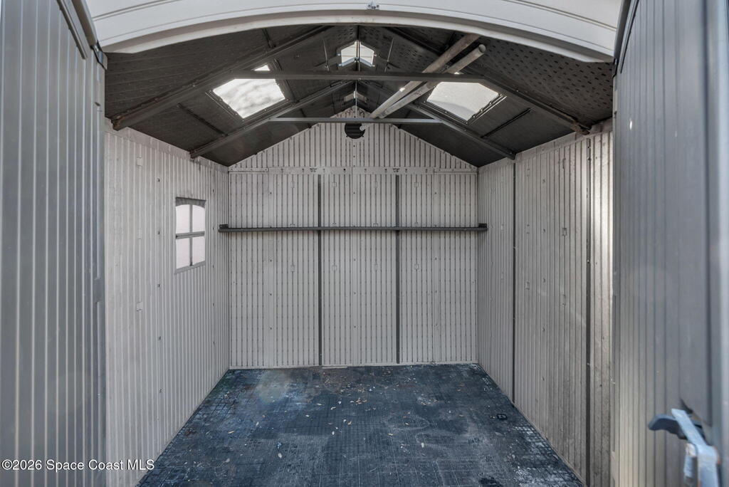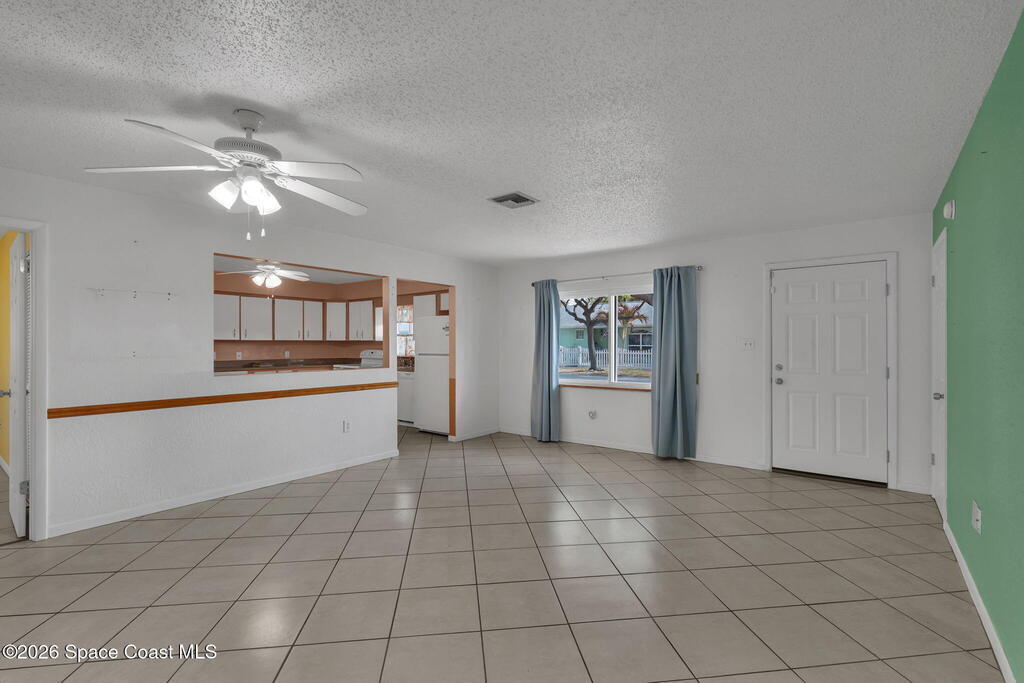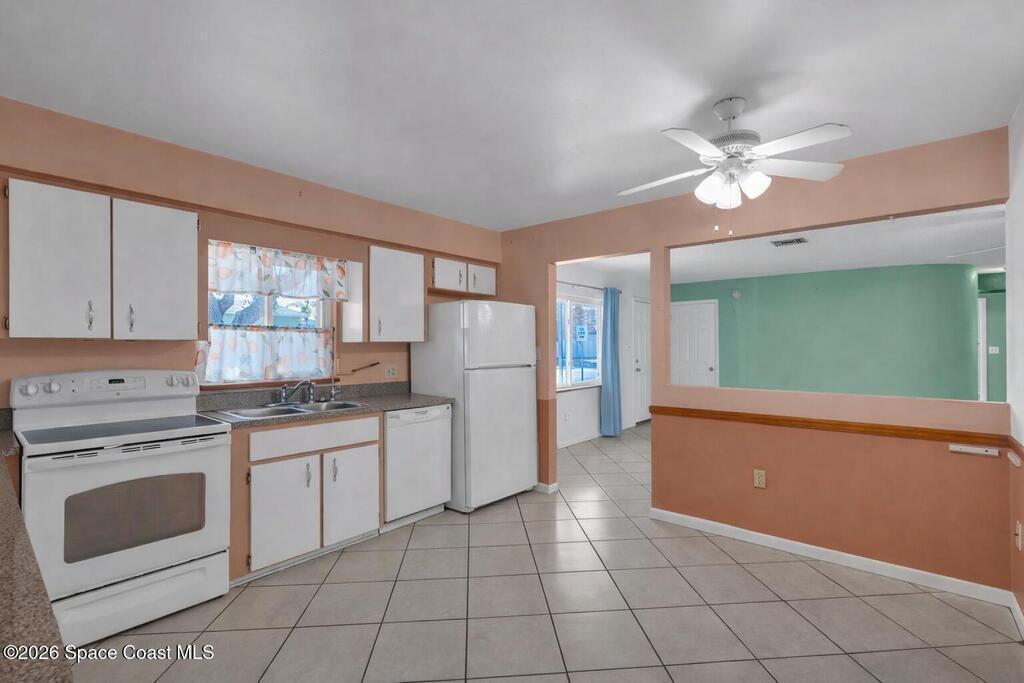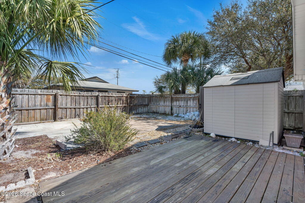 Just two blocks from the beach! This 3 bedroom, 2 bath, 2 car garage home offers the kind of coastal lifestyle people move to Cape Canaveral for. With a split floor plan and semi open layout, there's a comfortable flow between living spaces while still offering privacy.The primary suite features direct access to the garage, and one of the guest bedrooms functions as an ensuite with private access to the bathroom, which also connects to the hallway for added convenience.Windows were replaced in 2017. The home is fully fenced and includes gutters, a storage shed, and a water softener system. You can enjoy rocket launches from both the front and back yard, and the neighborhood is known for its roaming peacocks that add to the unique beachside charm.This is a well maintained home with room to update and personalize over time. Sold as is. Transferable termite bond and home warranty in place.Plumbing in the home is PVC!