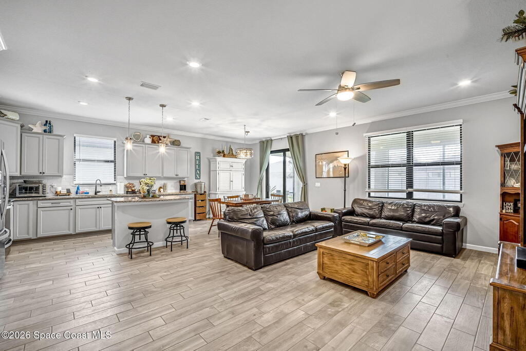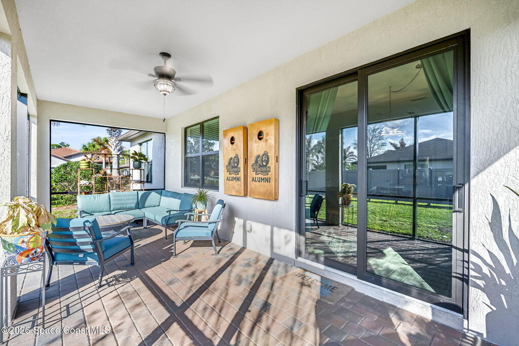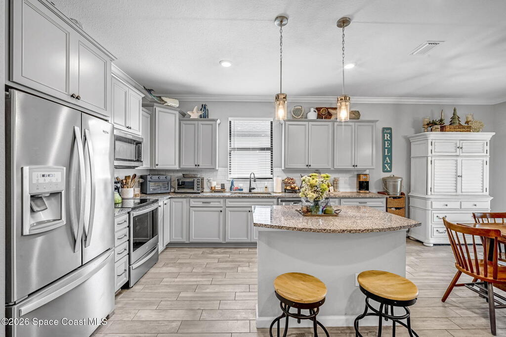 Built in 2021, this beautifully maintained 3-bedroom, 2-bath home in Magnolia Court offers 1,691 sq ft of bright, open living space on a desirable corner lot in one of Vero Beach's most sought-after communities. The stylish kitchen features gray cabinetry, granite countertops, a center island, and stainless steel appliances including range, microwave, and dishwasher, flowing seamlessly into the spacious living and dining areas. Hand-picked wood-look tile flooring adds warmth and durability throughout. The generous primary suite and versatile guest bedrooms provide comfort and flexibility for family or a home office. Enjoy Florida living year-round on the screened-in back porch. Complete with impact glass, a two-car garage, and pavered driveway parking. The HOA covers landscaping, irrigation, pest control, and access to pickleball and bocce ball courts, offering true low-maintenance living. Competitively priced for a quick sale--don't miss it!