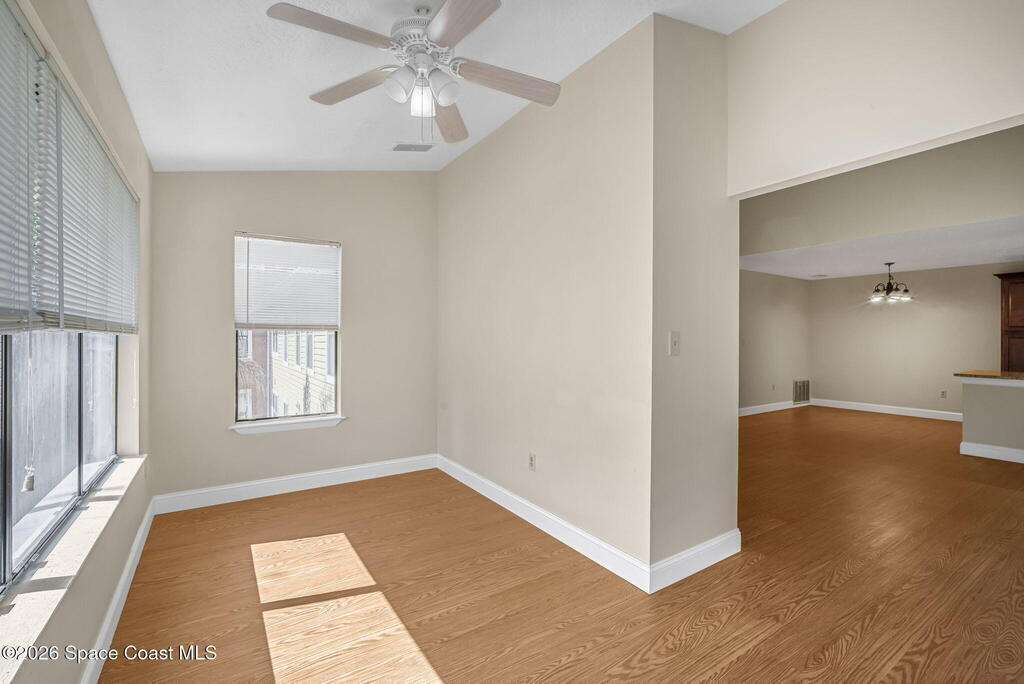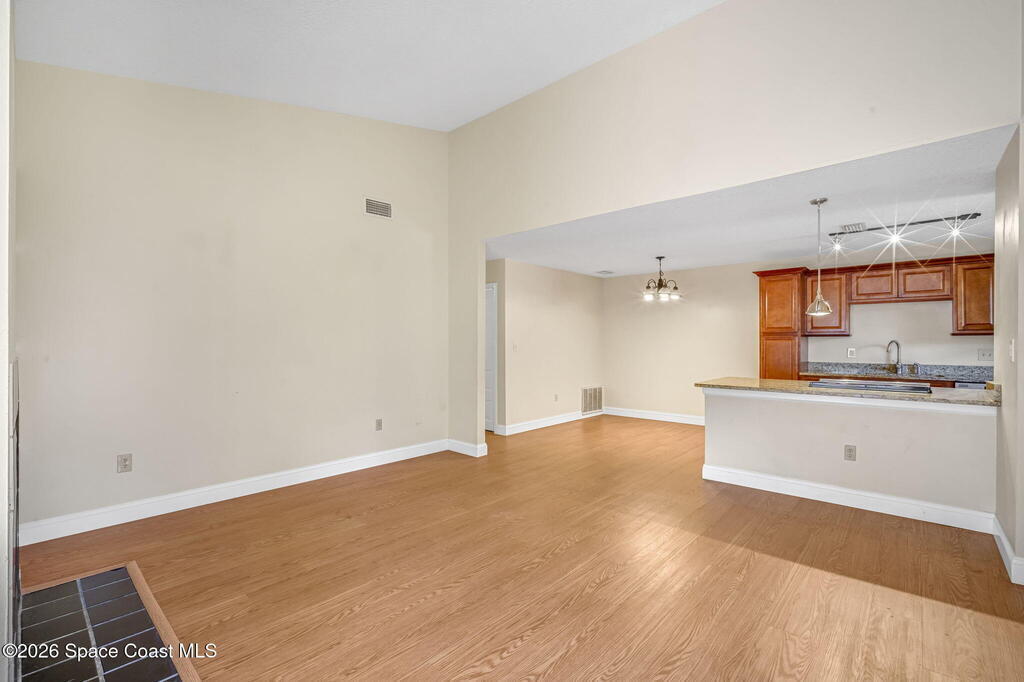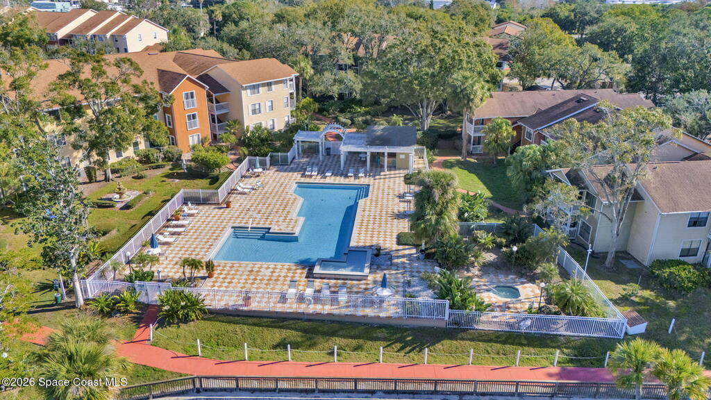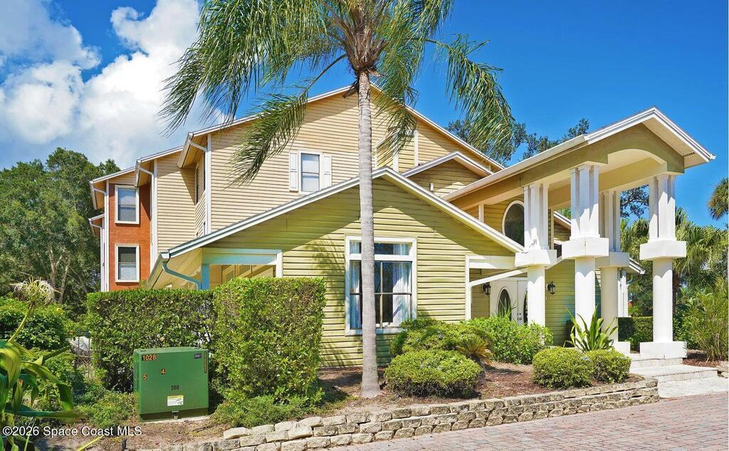 Live the riverfront lifestyle along the Indian River (chatgpt://generic-entity?number=0) in sought-after Merritt Island (chatgpt://generic-entity?number=1). This top-floor condo is located in a secure, gated community offering a clubhouse, pool, spa, Riverwalk, and stunning sunset deck. Inside, vaulted ceilings and an open floor plan create a bright, airy feel. A wood-burning fireplace anchors the living space, while a spacious flex room is perfect for a home office or den. The updated kitchen features solid wood cabinets, granite countertops, and matching stainless appliances. The primary suite is filled with natural light and includes an updated bath, modern vanity, and walk-in closet. A generous guest bedroom and in-unit laundry complete this move-in-ready home!