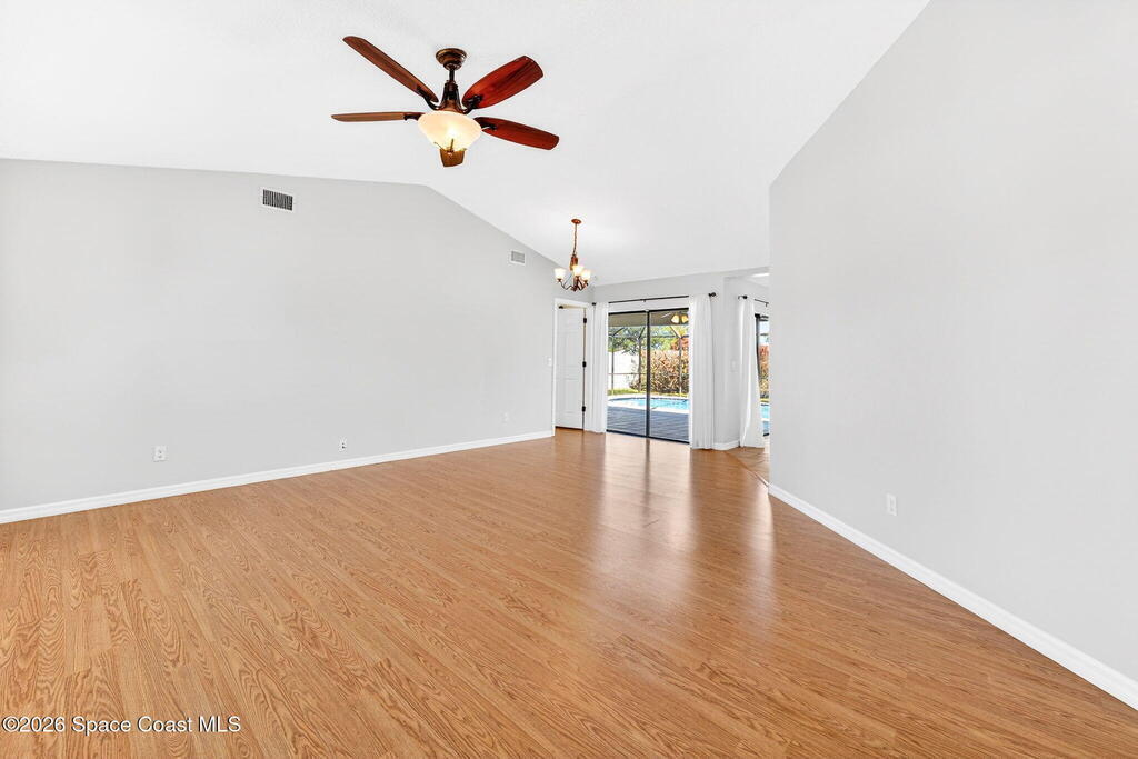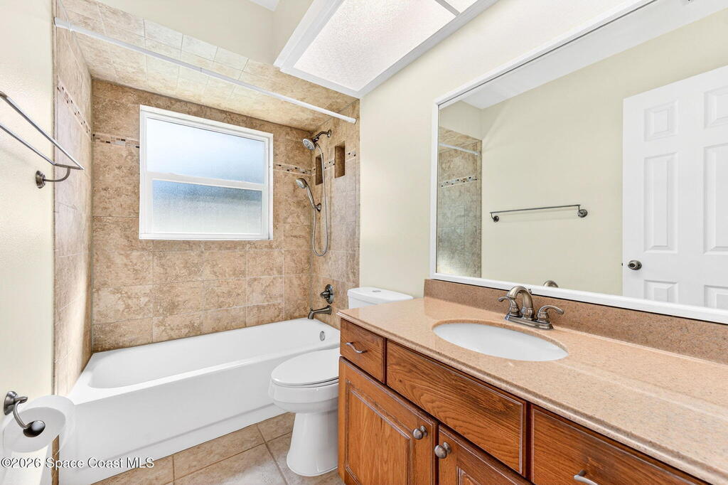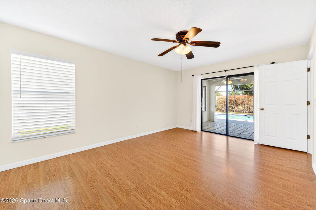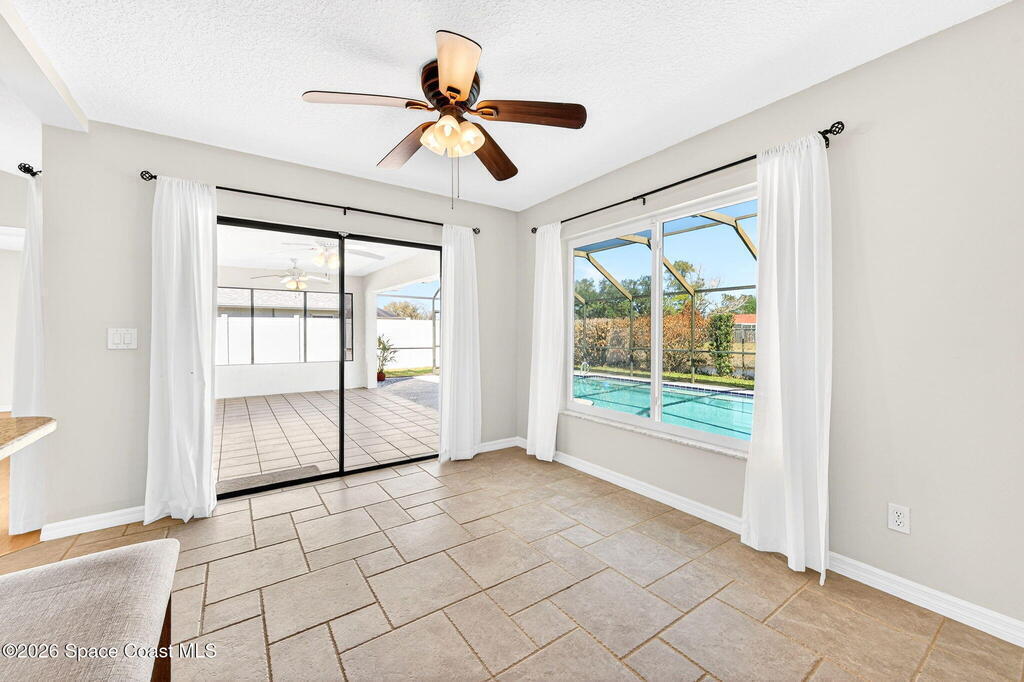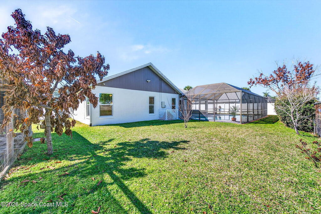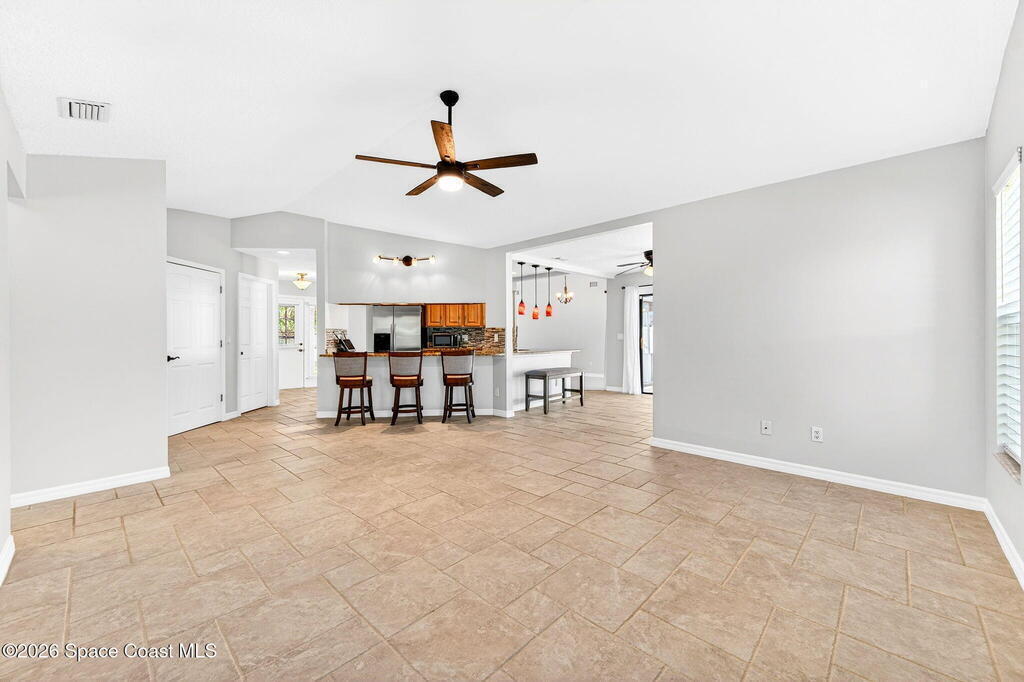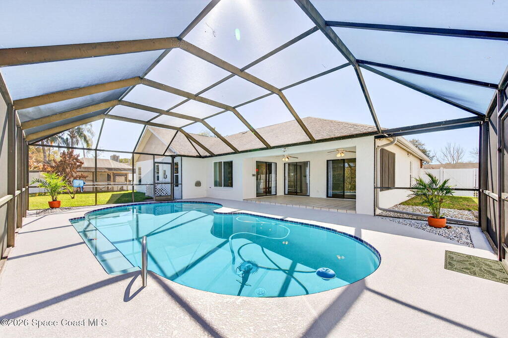 Recent upgrades include a brand-new roof (2026), new gas water heater (2026), new A/C (2024), storm shutters, and newer windows for comfort. This meticulously maintained home in the sought-after Kingsmill subdivision in Melbourne offers style, space, and true peace of mind. The kitchen features a functional layout filled with natural light, perfect for daily living and entertaining. Inside, knockdown ceilings (2022) and fresh paint throughout, including the garage, enhance move-in readiness. Outside, the pool area features a new screen (2024), updated pool pump, skimmer, and valves (2025), and a freshly painted pool deck (2026). A screened-in lanai provides year-round relaxation and wildlife viewing. The fully fenced property also features an expanded driveway with two oversized 12-foot double gates and a paved area behind the fence, ideal for boat or trailer storage. This pool home offers a private, tranquil setting and is ready to be enjoyed from day one.