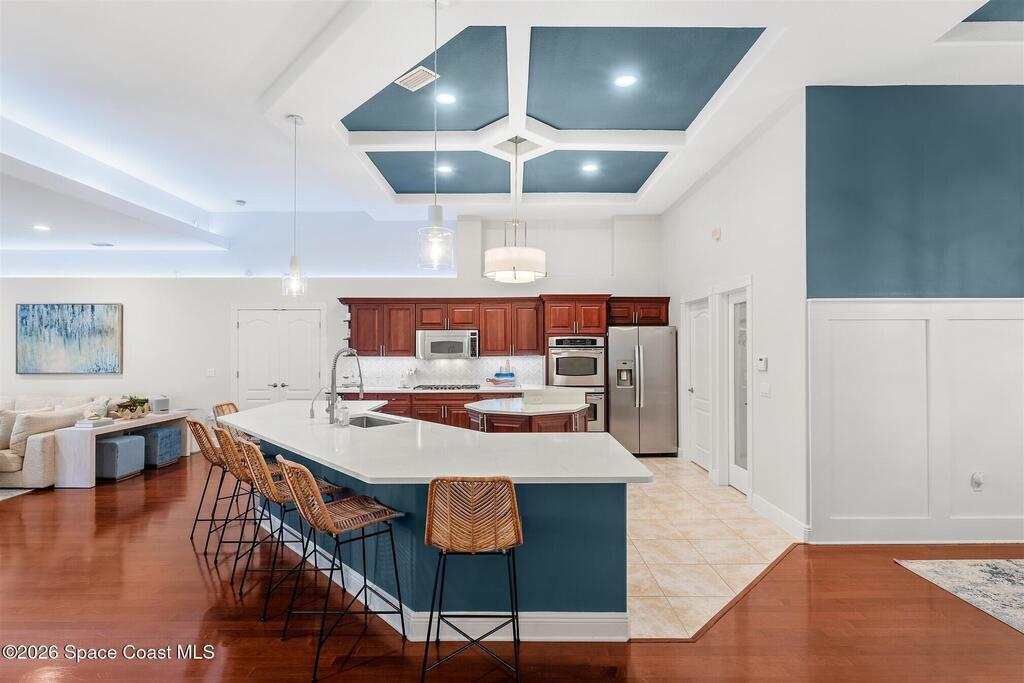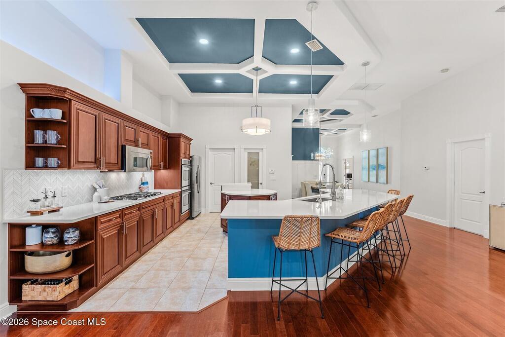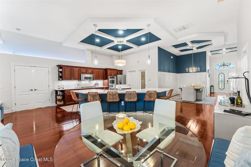 Beautifully updated 4 bedroom, 3 bath, plus an office/den, pool home situated on a lot that provides privacy and location. Step inside this open and bright floorplan to discover the many upgrades this home offers, new light fixtures, tile backsplash quartz countertops, sink and faucet in the kitchen, Wainscoting wall in Dining Room, stunning floor to ceiling tiled fireplace in family room, complete renovation of Primary Bathroom and more. This home also has a 3 car garage, one of which will accommodate a boat or RV. Centrally located in Viera with A rated schools, shopping, dining, beaches and Patrick Space Force Base nearby. Roof 2019, HVAC 2020, Refrigerator 2022.