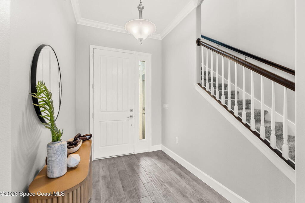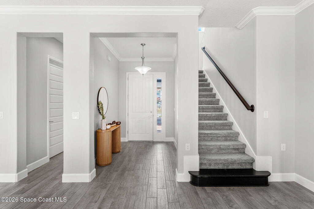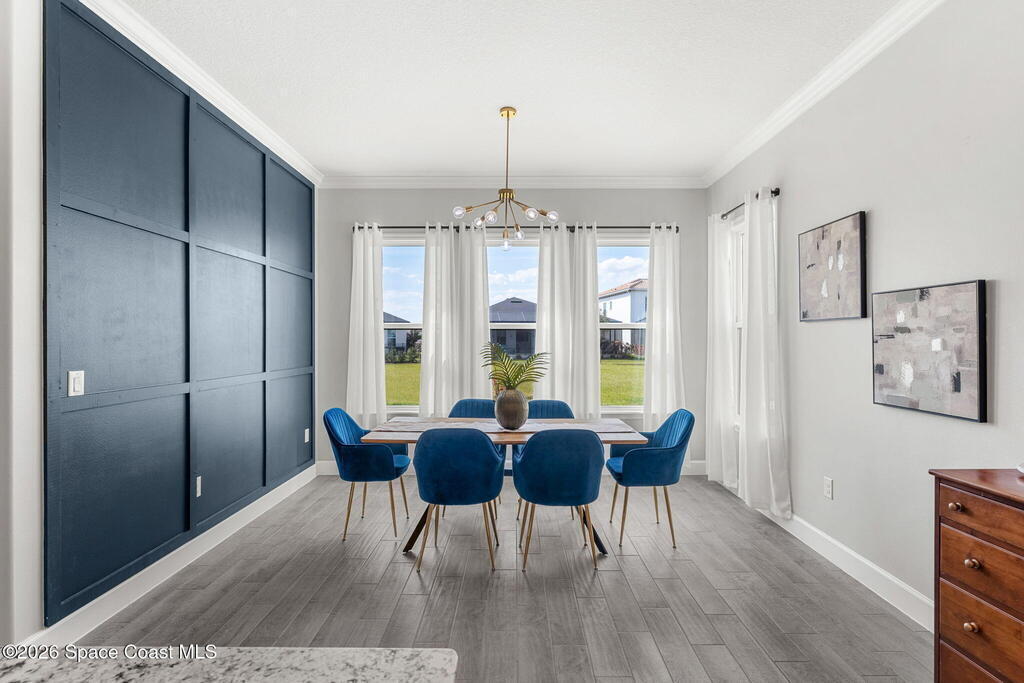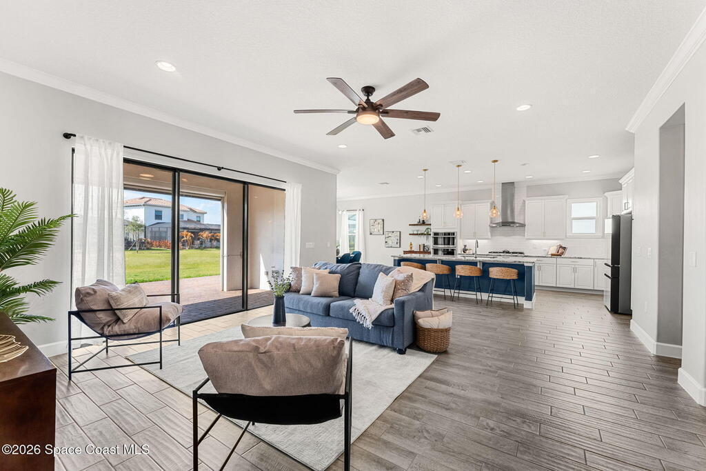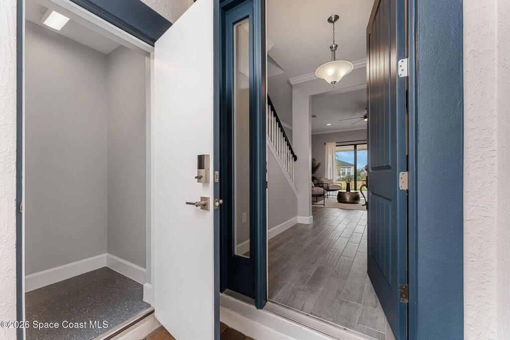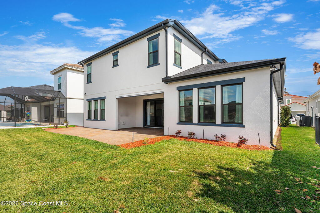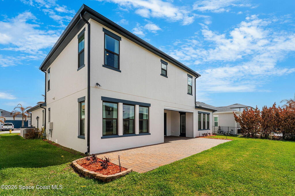 Experience the Pinnacle of Viera Living~Skip the wait for new construction with this impeccably maintained, 3 year old executive estate. Nestled in the heart of West Viera this two-story masterpiece blends sophisticated design with ultimate peace of mind featuring two living spaces, 4 bedrooms, 3.5 baths and spacious split garages. The chef's kitchen is a showstopper, boasting rich navy and white cabinetry, stunning granite countertops, and upgraded appliances. Retreat to an oversized primary suite featuring a ''to-die-for'' custom walk-in closet and spa-like bath w/glass-enclosed shower and dual sinks. Highlights include: Impact glass windows, 8-foot doors, neutral tones, wood-look tile, and custom closets in all bedrooms. Enjoy Outdoor living? An extended paver back patio, added green space distancing nearby homes & an additional side fenced courtyard all offer the perfect space for play, privacy or entertaining with ample room to add your dream pool. Prime Location...(see more..)