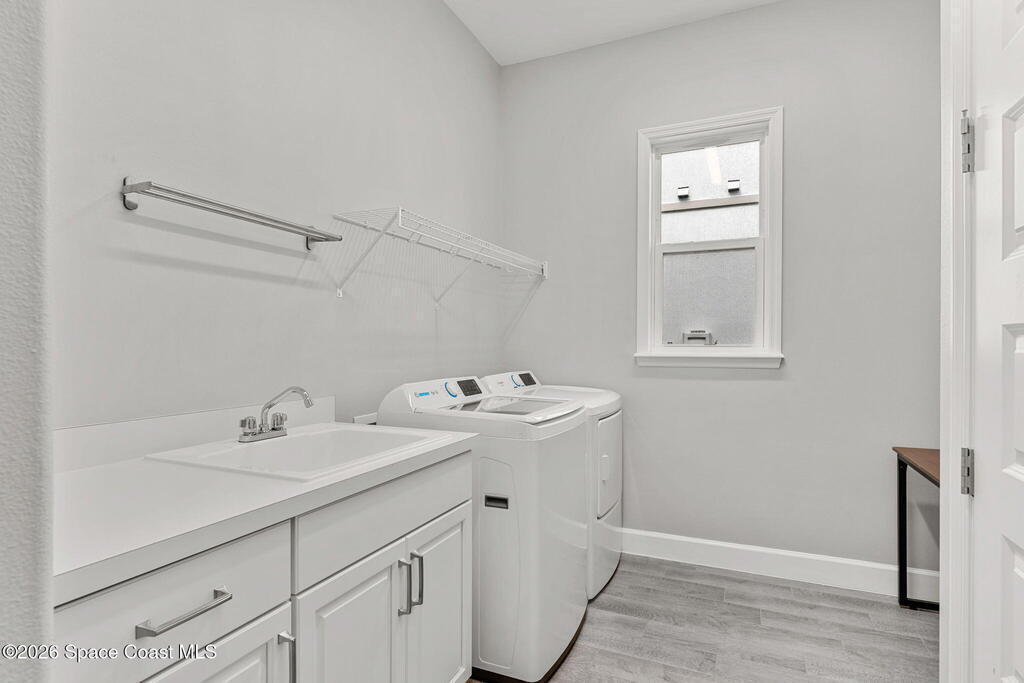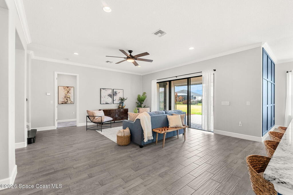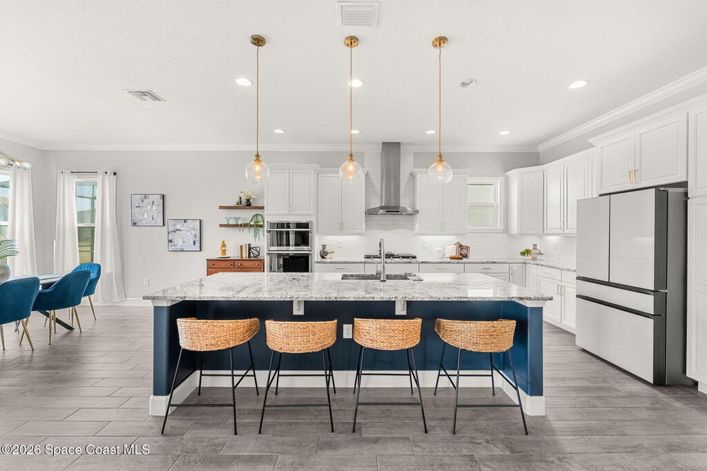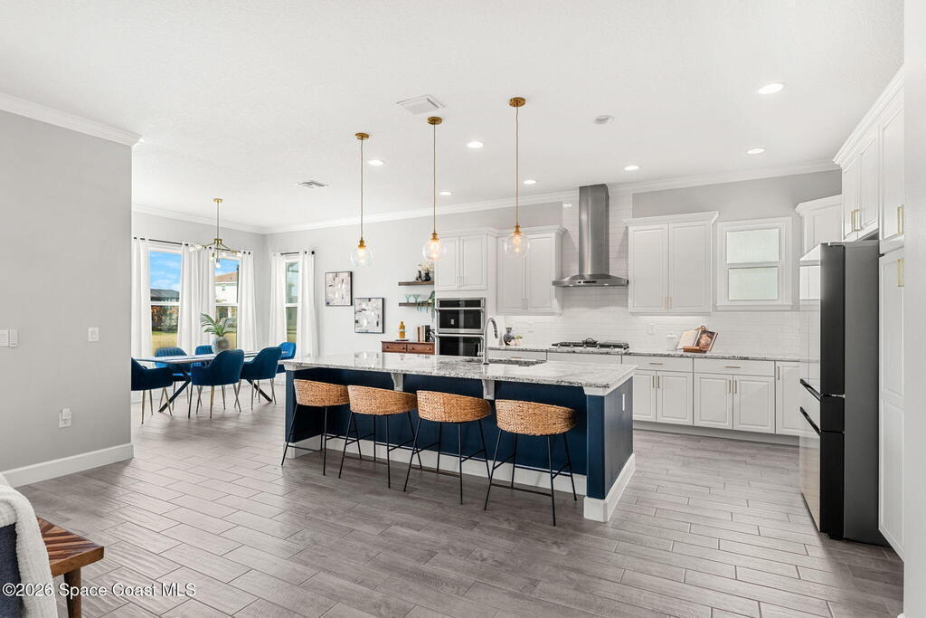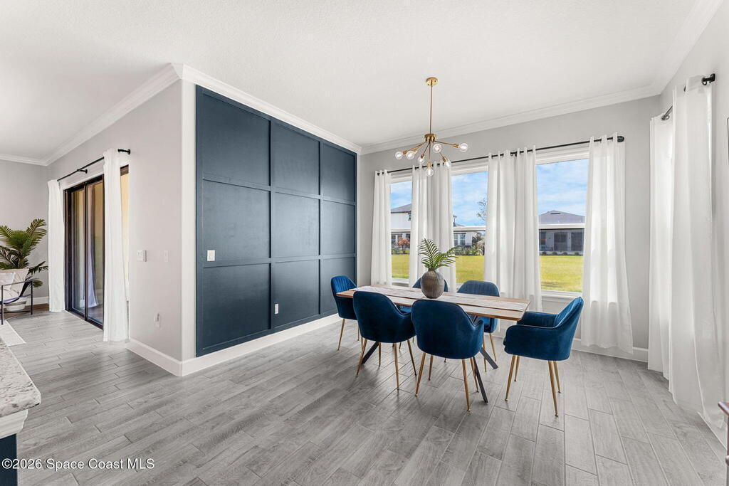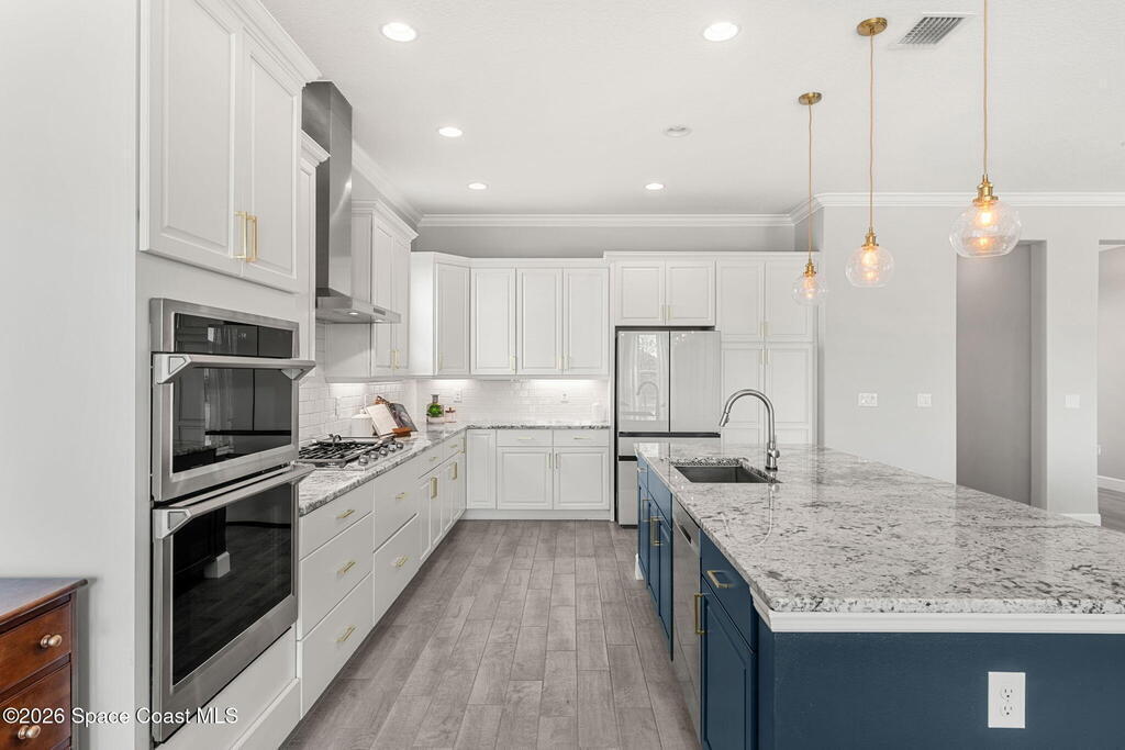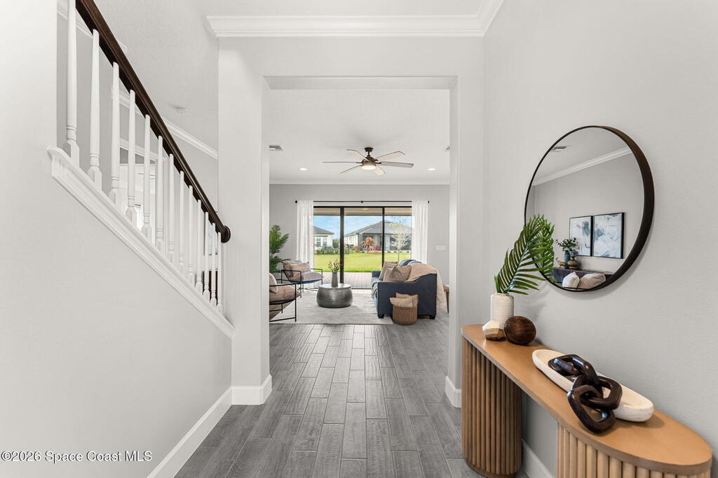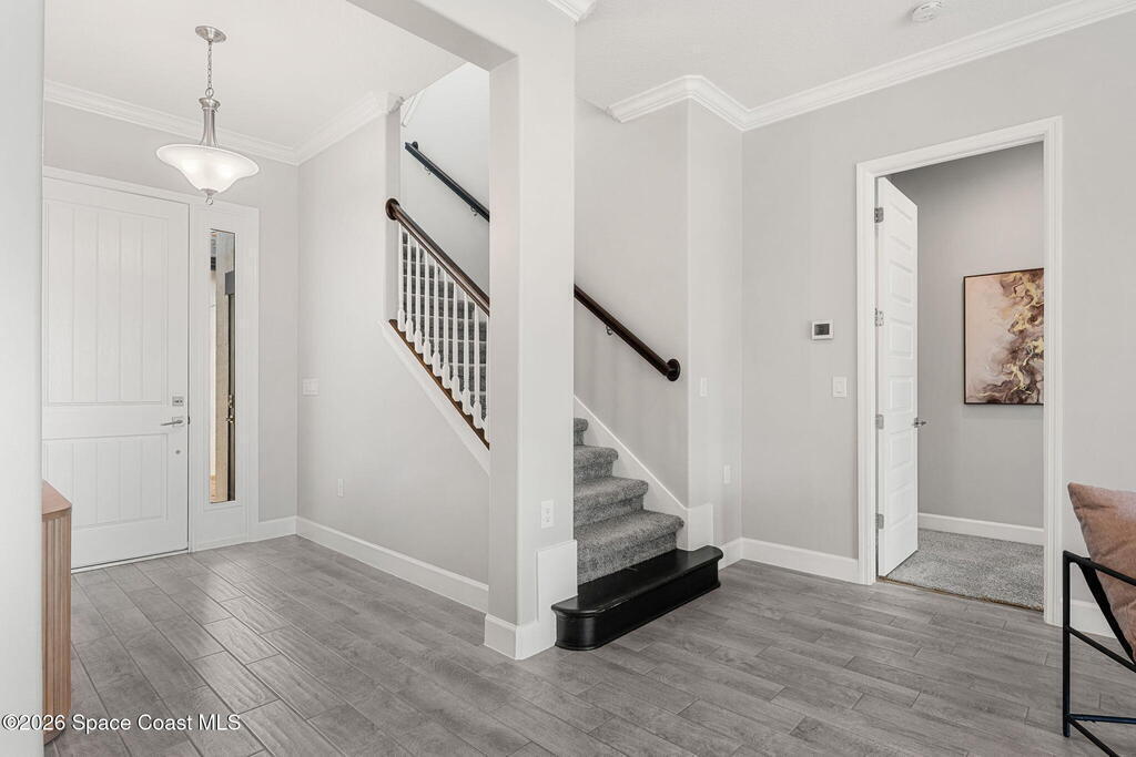 Experience the Pinnacle of Viera Living~Skip the wait for new construction with this impeccably maintained, 3 year old executive estate. Nestled in the heart of West Viera this two-story masterpiece blends sophisticated design with ultimate peace of mind featuring two living spaces, 4 bedrooms, 3.5 baths and spacious split garages. The chef's kitchen is a showstopper, boasting rich navy and white cabinetry, stunning granite countertops, and upgraded appliances. Retreat to an oversized primary suite featuring a ''to-die-for'' custom walk-in closet and spa-like bath w/glass-enclosed shower and dual sinks. Highlights include: Impact glass windows, 8-foot doors, neutral tones, wood-look tile, and custom closets in all bedrooms. Enjoy Outdoor living? An extended paver back patio, added green space distancing nearby homes & an additional side fenced courtyard all offer the perfect space for play, privacy or entertaining with ample room to add your dream pool. Prime Location...(see more..)