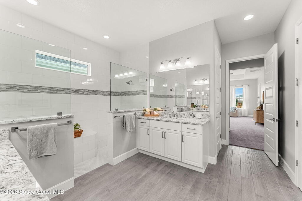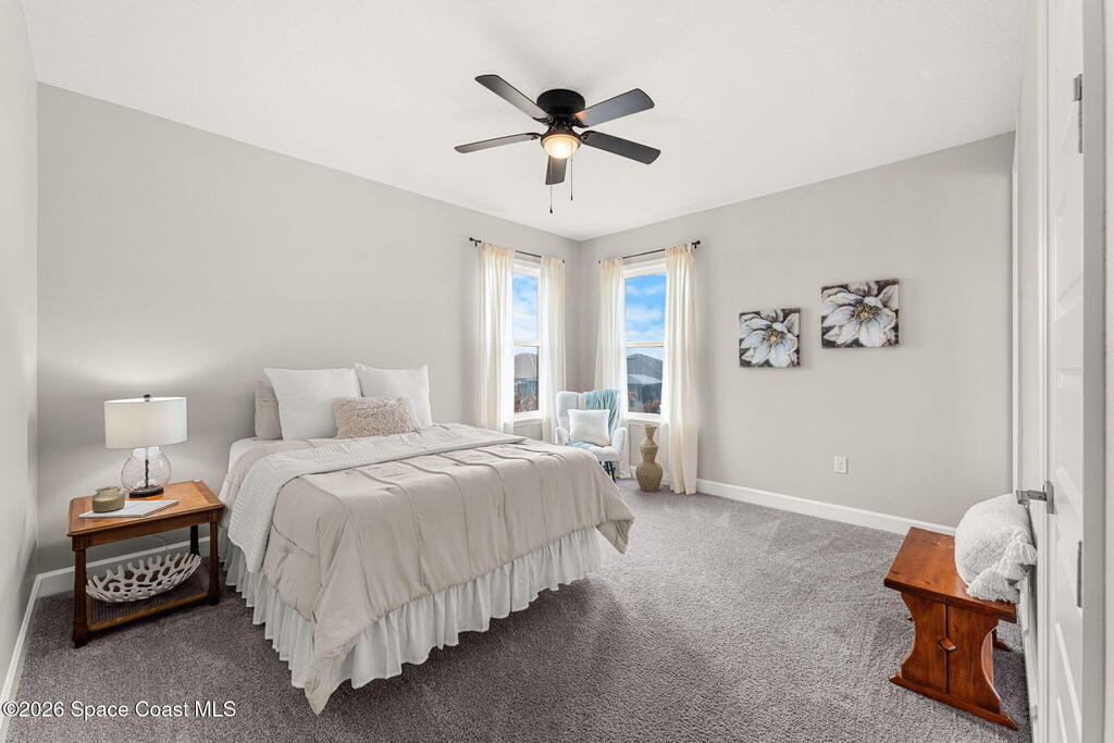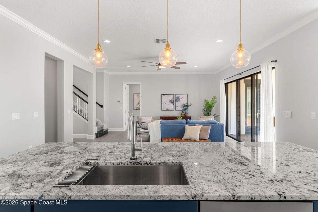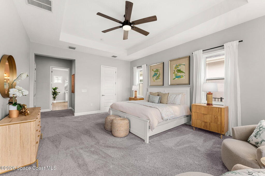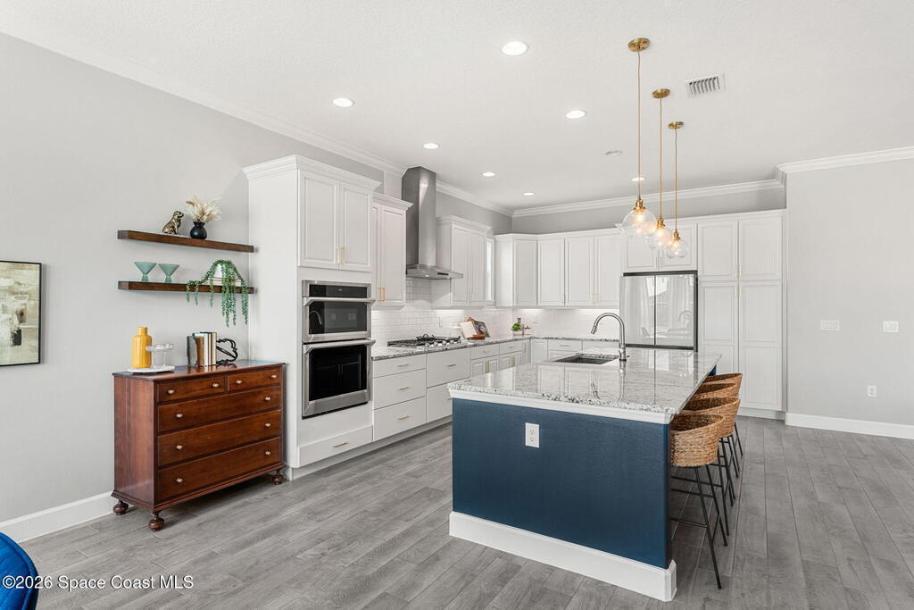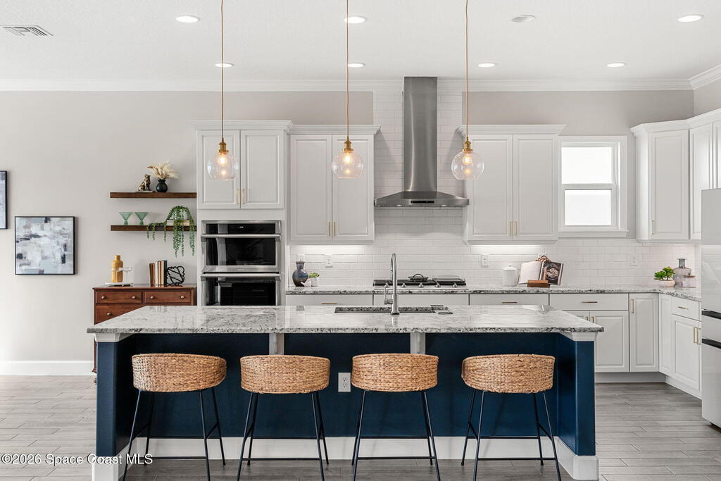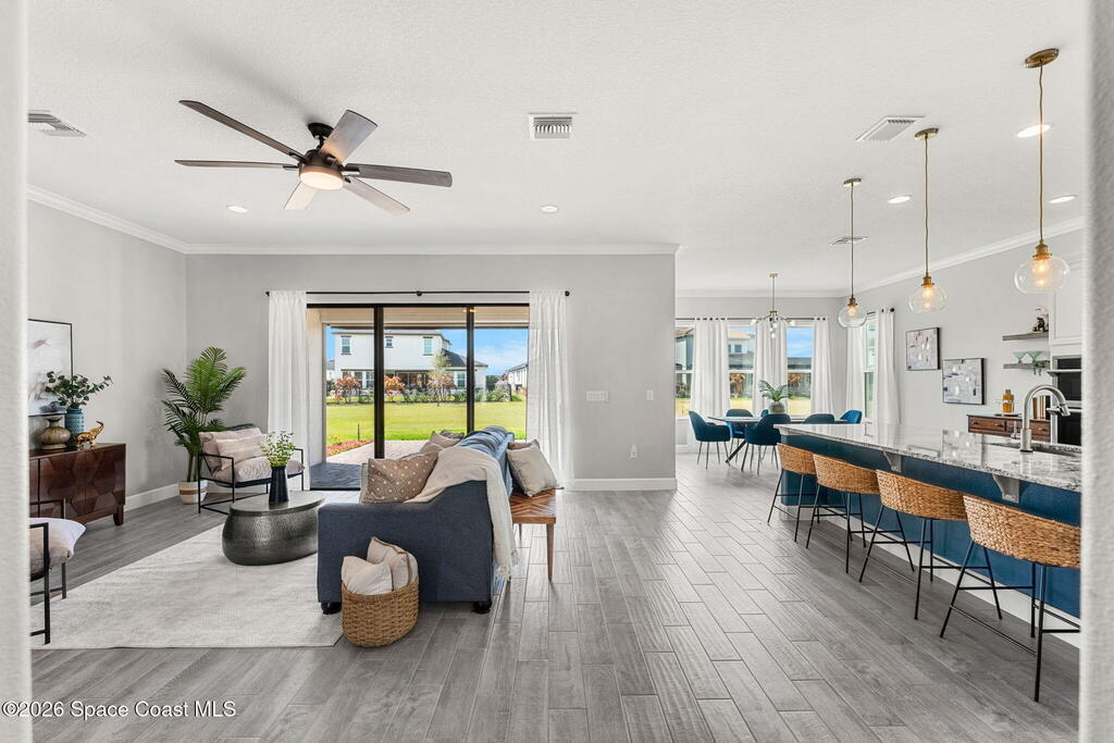 Experience the Pinnacle of Viera Living~Skip the wait for new construction with this impeccably maintained, 3 year old executive estate. Nestled in the heart of West Viera this two-story masterpiece blends sophisticated design with ultimate peace of mind featuring two living spaces, 4 bedrooms, 3.5 baths and spacious split garages. The chef's kitchen is a showstopper, boasting rich navy and white cabinetry, stunning granite countertops, and upgraded appliances. Retreat to an oversized primary suite featuring a ''to-die-for'' custom walk-in closet and spa-like bath w/glass-enclosed shower and dual sinks. Highlights include: Impact glass windows, 8-foot doors, neutral tones, wood-look tile, and custom closets in all bedrooms. Enjoy Outdoor living? An extended paver back patio, added green space distancing nearby homes & an additional side fenced courtyard all offer the perfect space for play, privacy or entertaining with ample room to add your dream pool. Prime Location...(see more..)