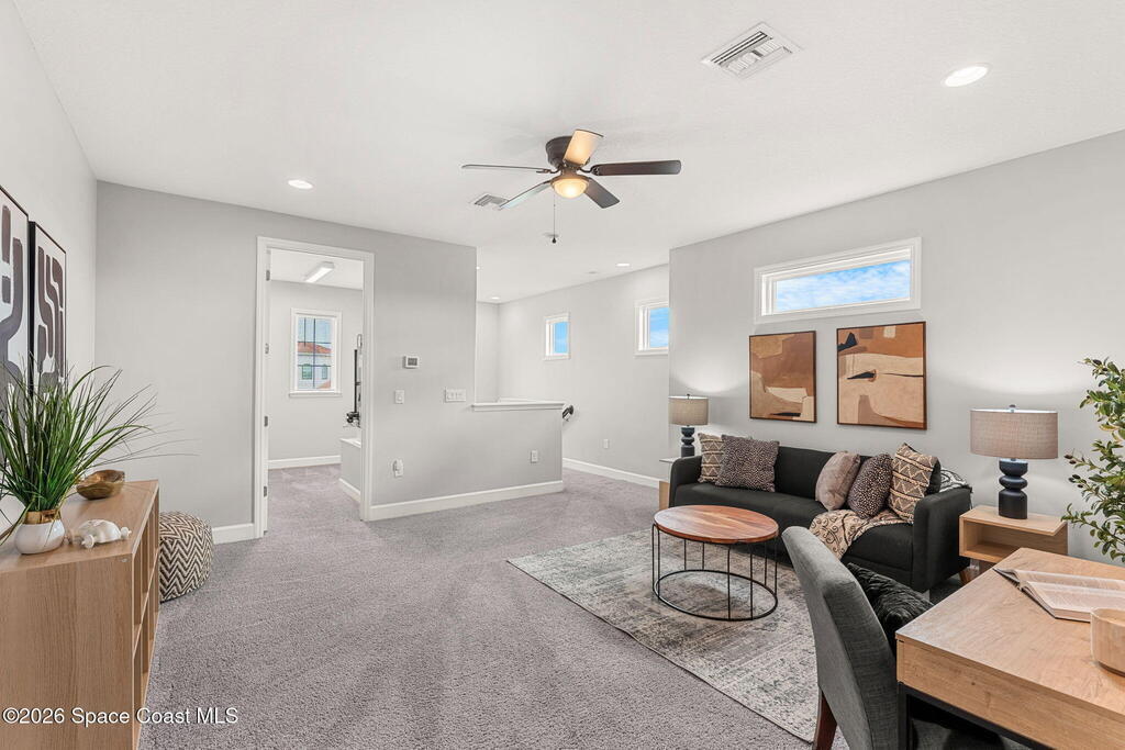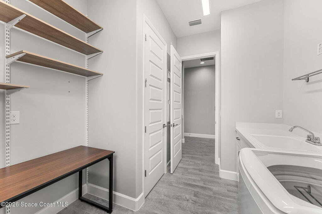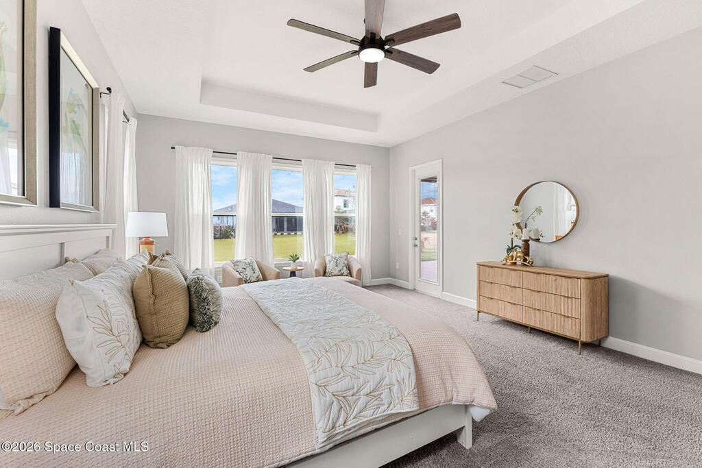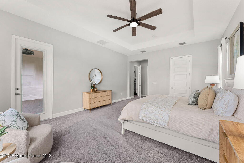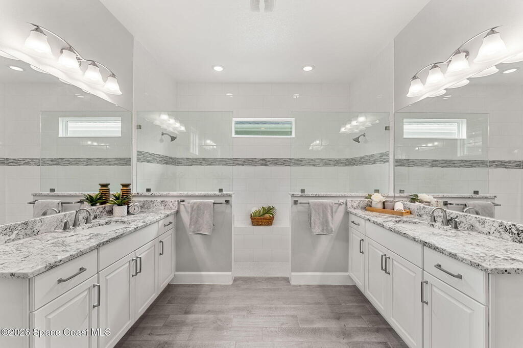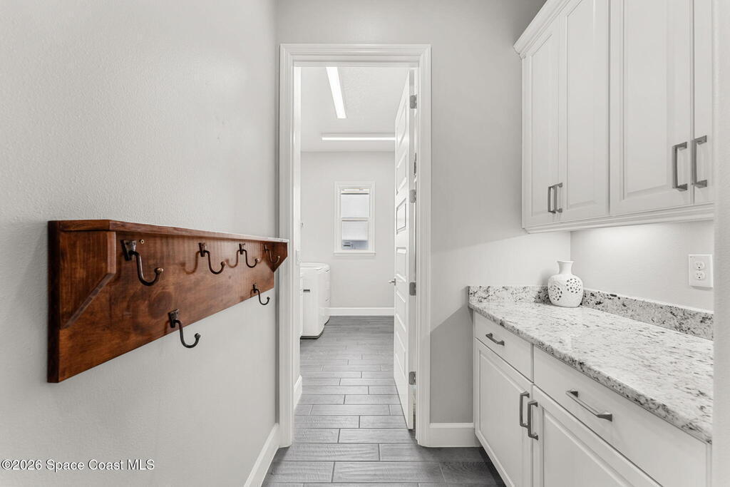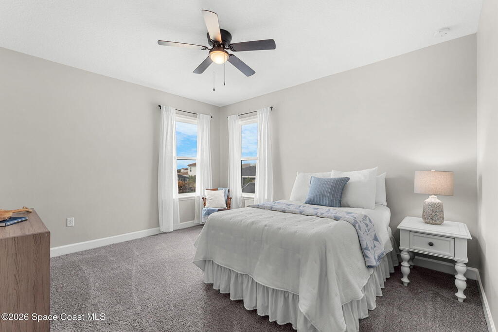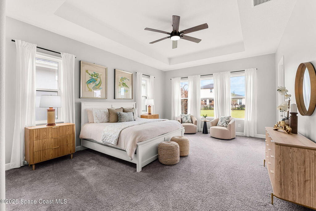 Experience the Pinnacle of Viera Living~Skip the wait for new construction with this impeccably maintained, 3 year old executive estate. Nestled in the heart of West Viera this two-story masterpiece blends sophisticated design with ultimate peace of mind featuring two living spaces, 4 bedrooms, 3.5 baths and spacious split garages. The chef's kitchen is a showstopper, boasting rich navy and white cabinetry, stunning granite countertops, and upgraded appliances. Retreat to an oversized primary suite featuring a ''to-die-for'' custom walk-in closet and spa-like bath w/glass-enclosed shower and dual sinks. Highlights include: Impact glass windows, 8-foot doors, neutral tones, wood-look tile, and custom closets in all bedrooms. Enjoy Outdoor living? An extended paver back patio, added green space distancing nearby homes & an additional side fenced courtyard all offer the perfect space for play, privacy or entertaining with ample room to add your dream pool. Prime Location...(see more..)