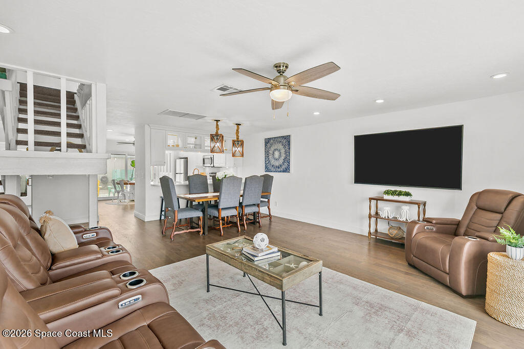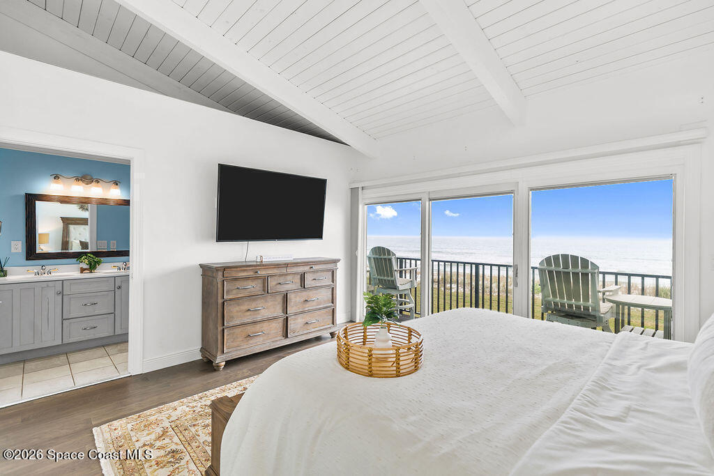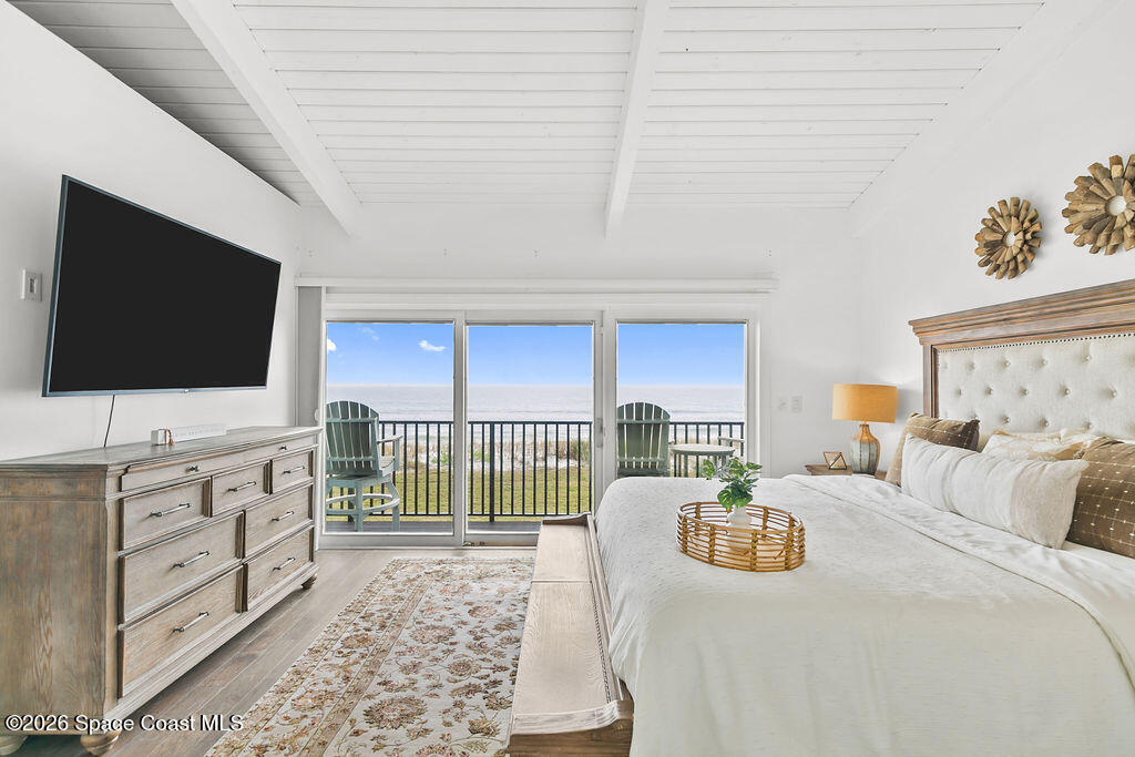 Experience true beachfront living in this three-story direct oceanfront townhouse in Satellite Beach. With panoramic Atlantic views, private beach access, and flexible living space, this home offers the perfect blend of comfort and coastal lifestyle.The first floor features an open floor plan with a large kitchen and expansive living and dining areas. Triple sliding glass doors flood the home with natural light and open directly to a patio and grassy lawn overlooking the ocean. The second floor includes three bedrooms and two bathrooms. The primary suite offers its own private oceanfront balcony with triple sliders, creating a peaceful retreat with breathtaking sunrise views and soothing sea breezes. On the third level, a bright loft with multiple ocean-facing windows showcases elevated water views. Complete with a small closet, this versatile space can easily function as a fourth bedroom, home office, media room, or rec room.