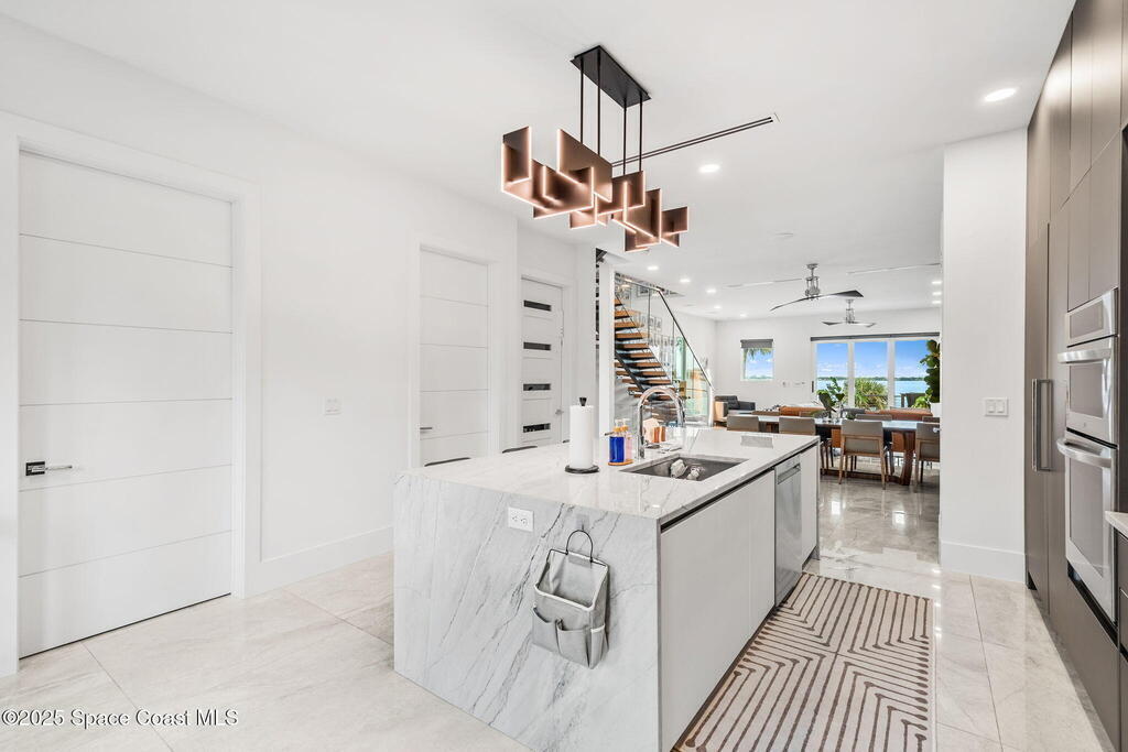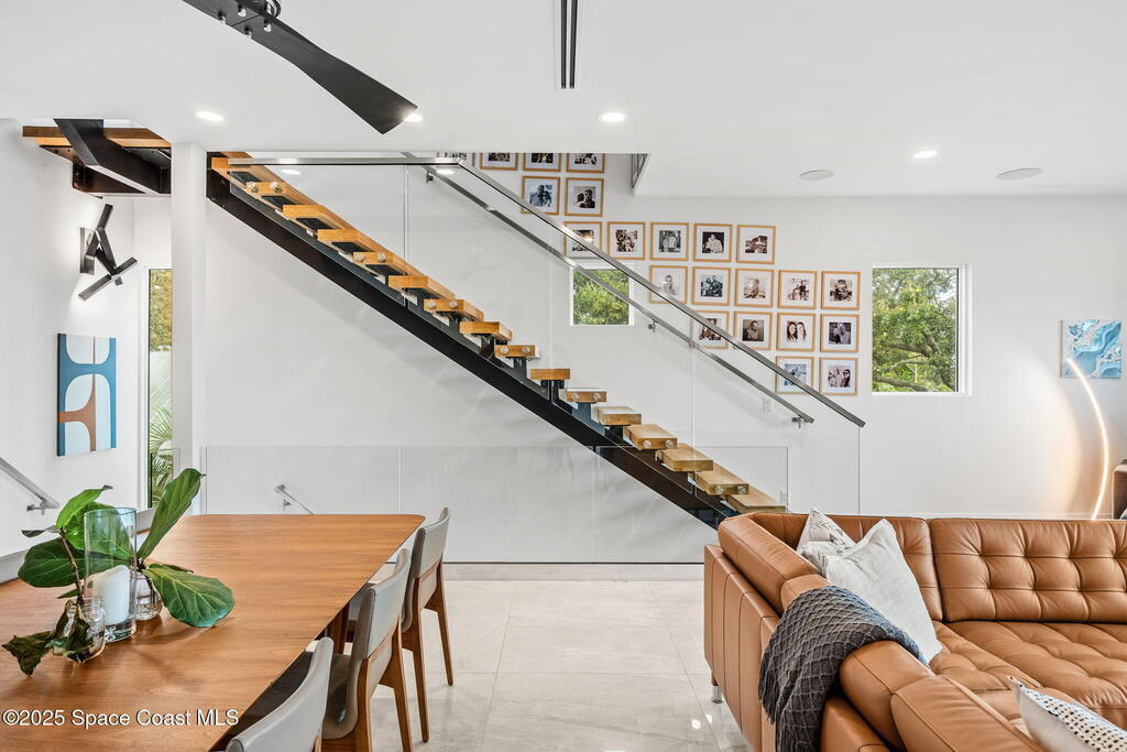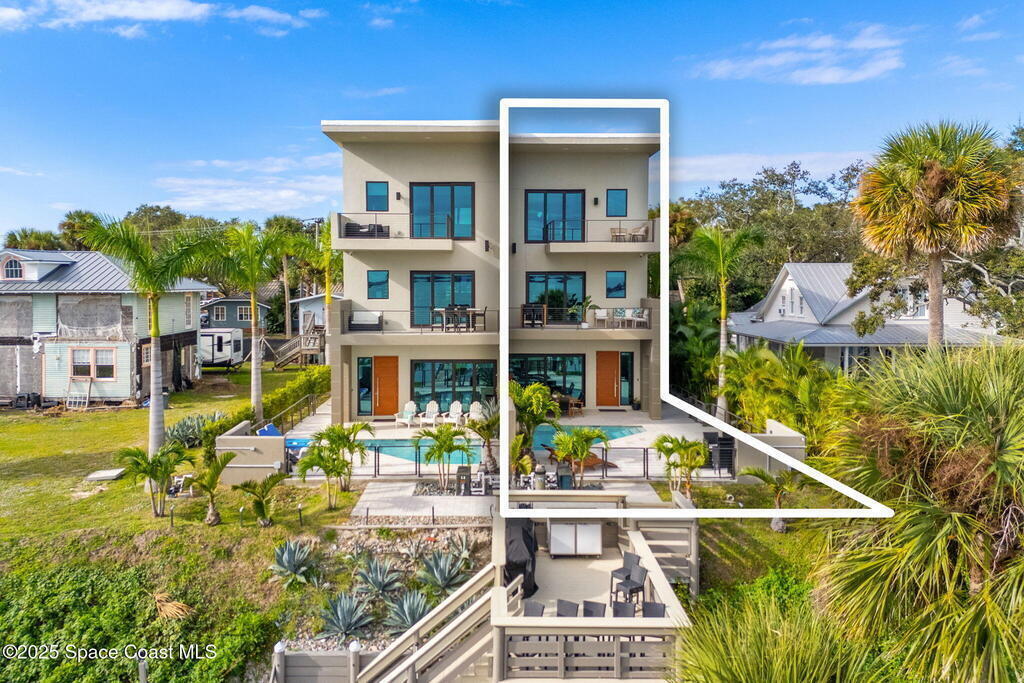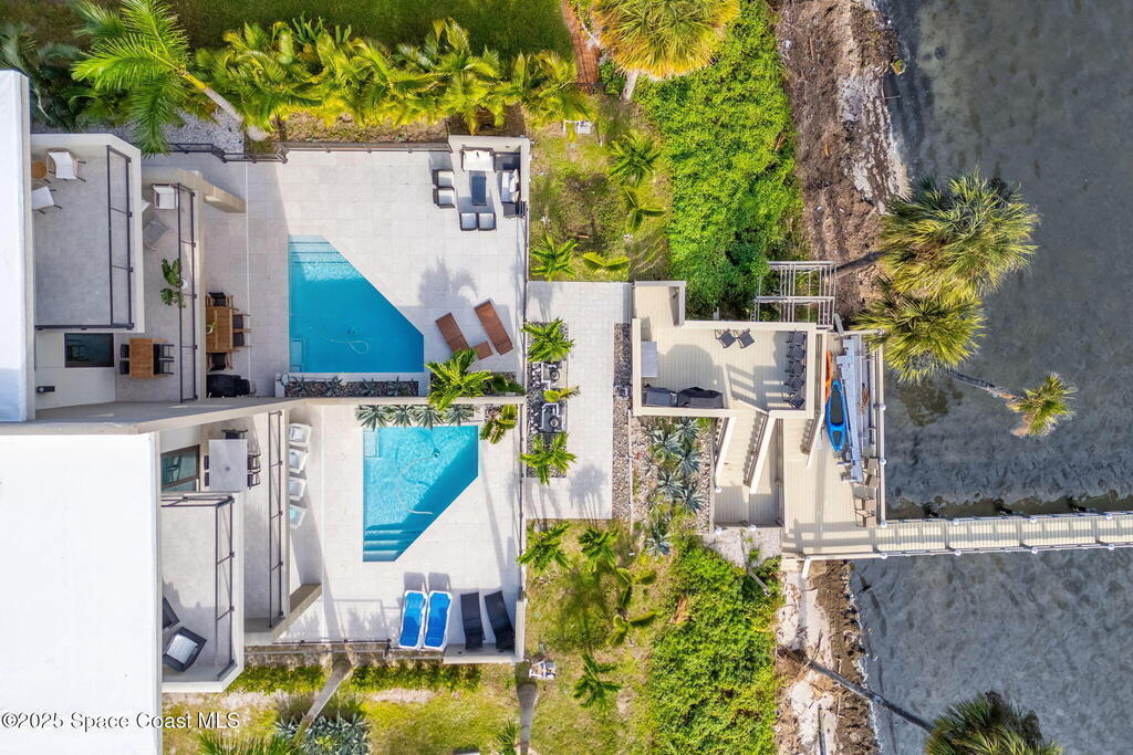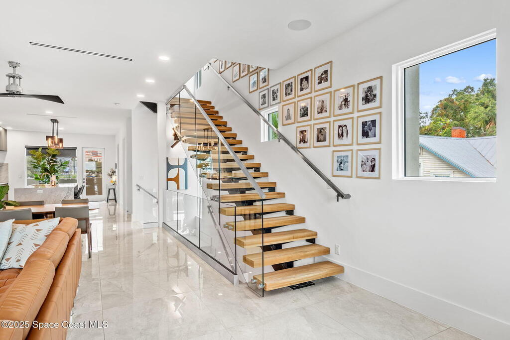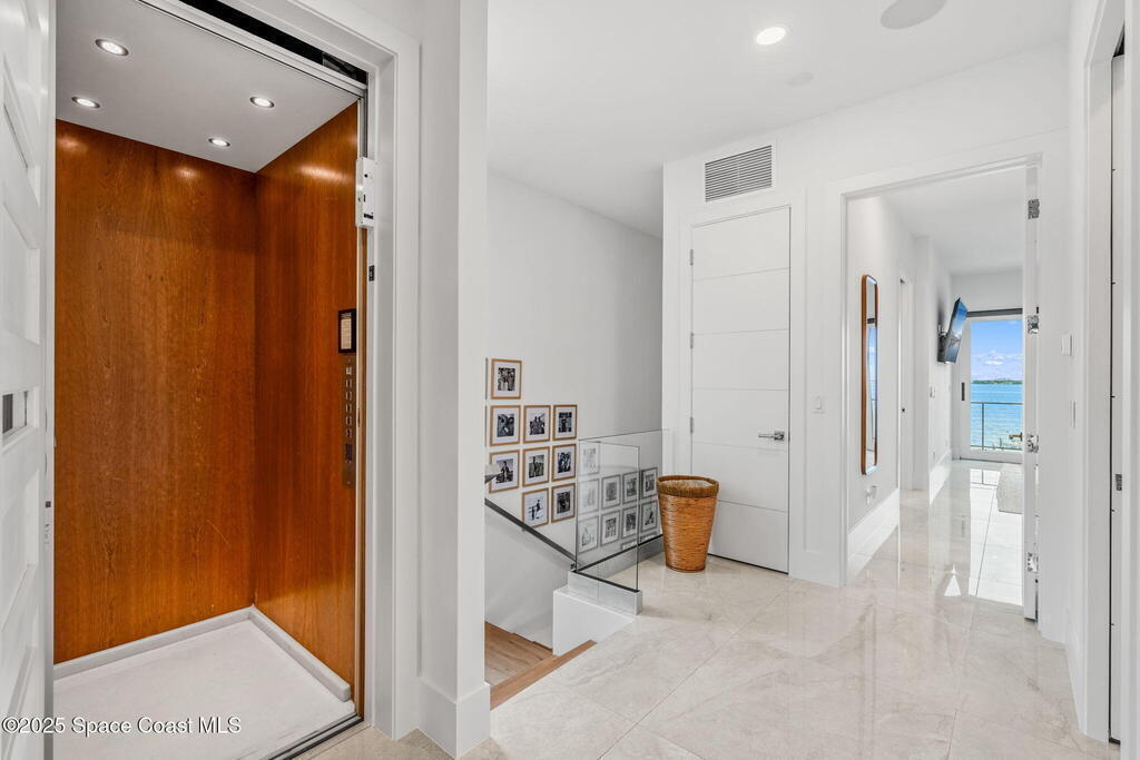 Experience a level of craftsmanship rarely seen on the market. Not a single expense has been spared by this international developer--every inch of this home reflects precision, intention, and luxury. Perched 20 feet above sea level and built like a fortress, this 2023 direct-riverfront residence delivers panoramic Indian River views and European-inspired elegance across 2,936 sq. ft., seamlessly connected by a private elevator to all three levels.Every design element is a statement piece: a sculptural marble-and-oak floating staircase, glass railings, sleek porcelain flooring, and meticulously curated finishes that redefine modern sophistication. The Euro-style kitchen features premium appliances and custom cabinetry designed not just for functionality, but for elevated living and entertaining.Set on a private 0.12-acre riverfront parcel, the estate includes a resort-style pool with waterfall and a 366-ft private dock outfitted with both boat and jet ski lifts.